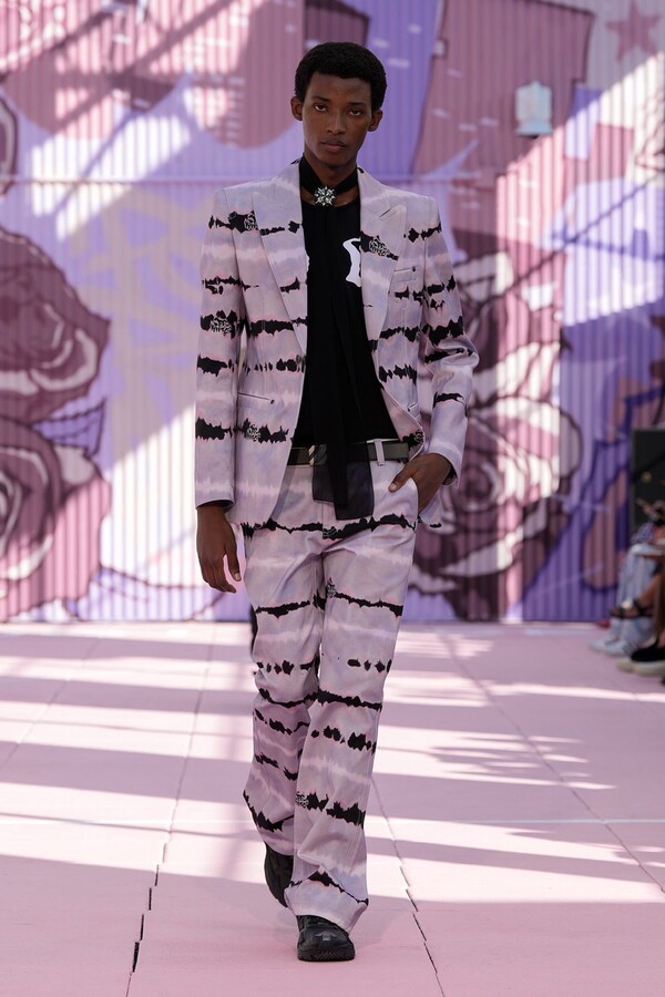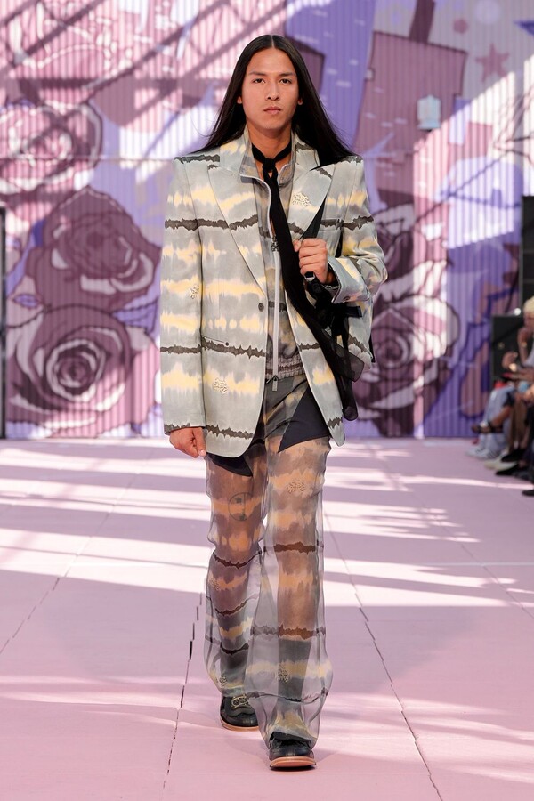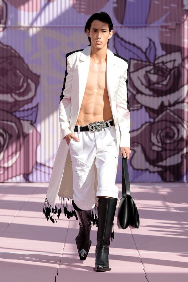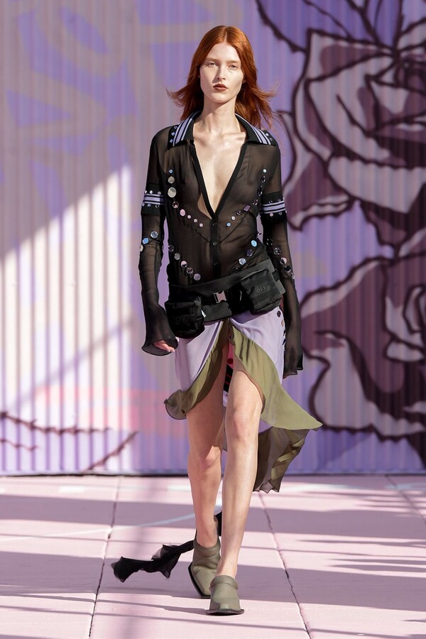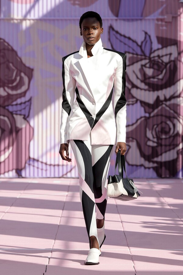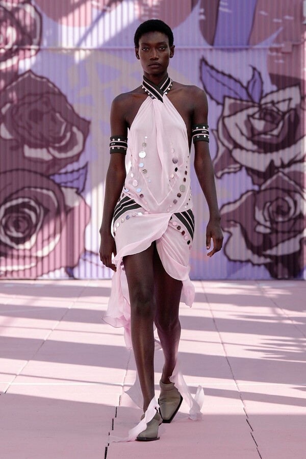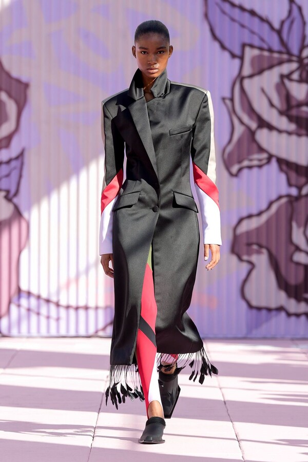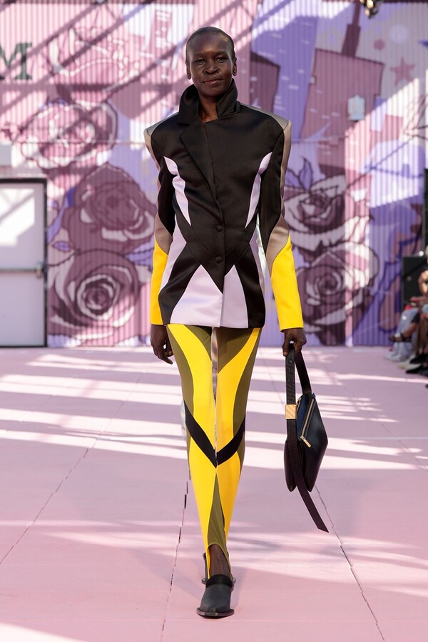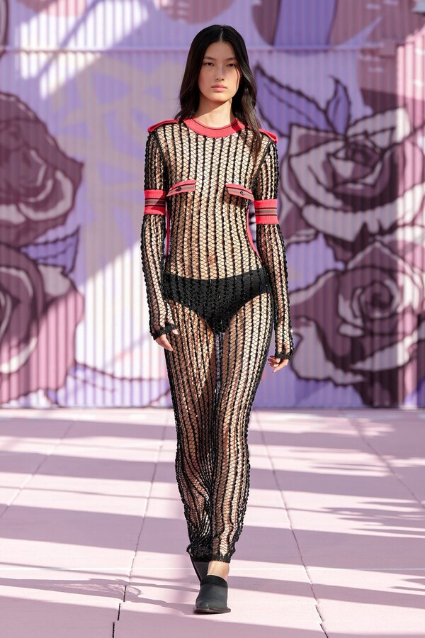 本季的廓形偏向纤细修长,穿插着结构感元素,例如贴合身体曲线的缝线、加固的接缝以及如同内置支撑的拼接。印花和表面处理巧妙地融合了都市意象与高级定制工艺。连帽衫和牛仔裤上点缀着天际线图案,大胆的撞色在层叠造型中营造出动感对比。轻薄面料层叠于不透明的底层,巧妙的镂空、网眼嵌饰则将硬朗的街头风格变得更轻盈和运动感。