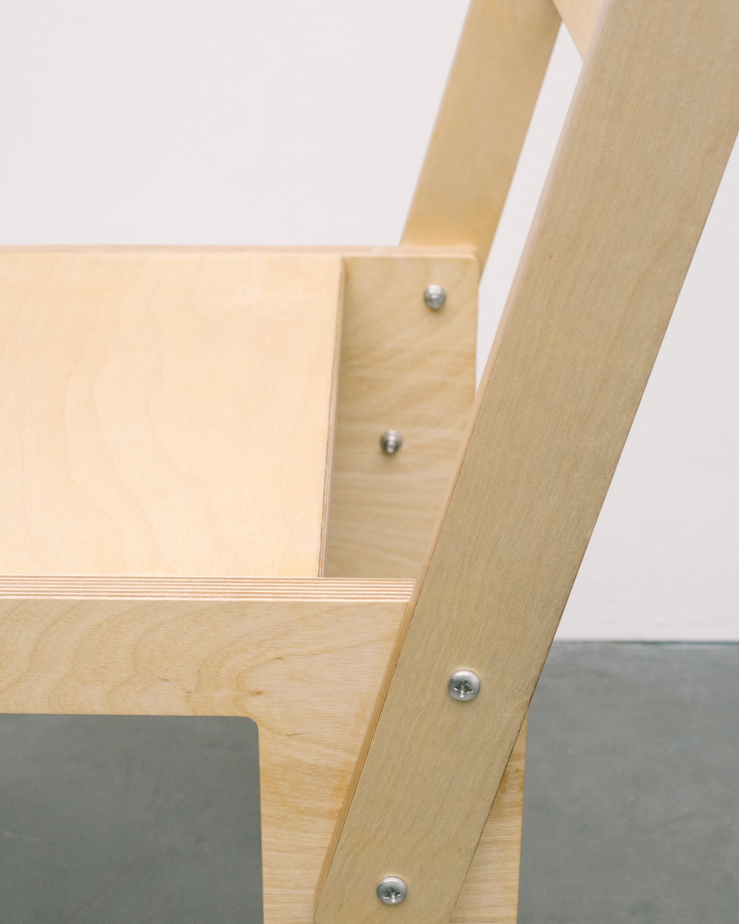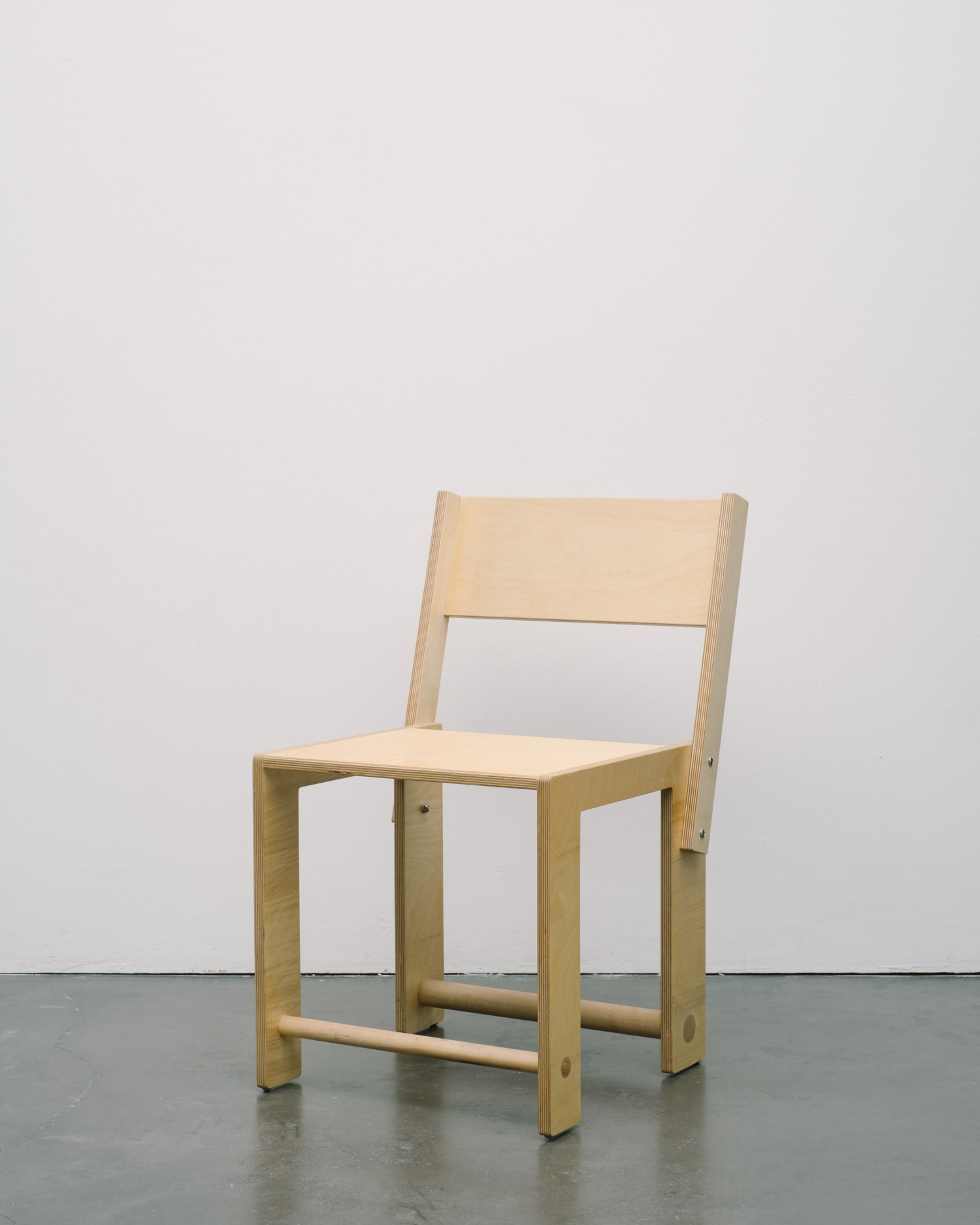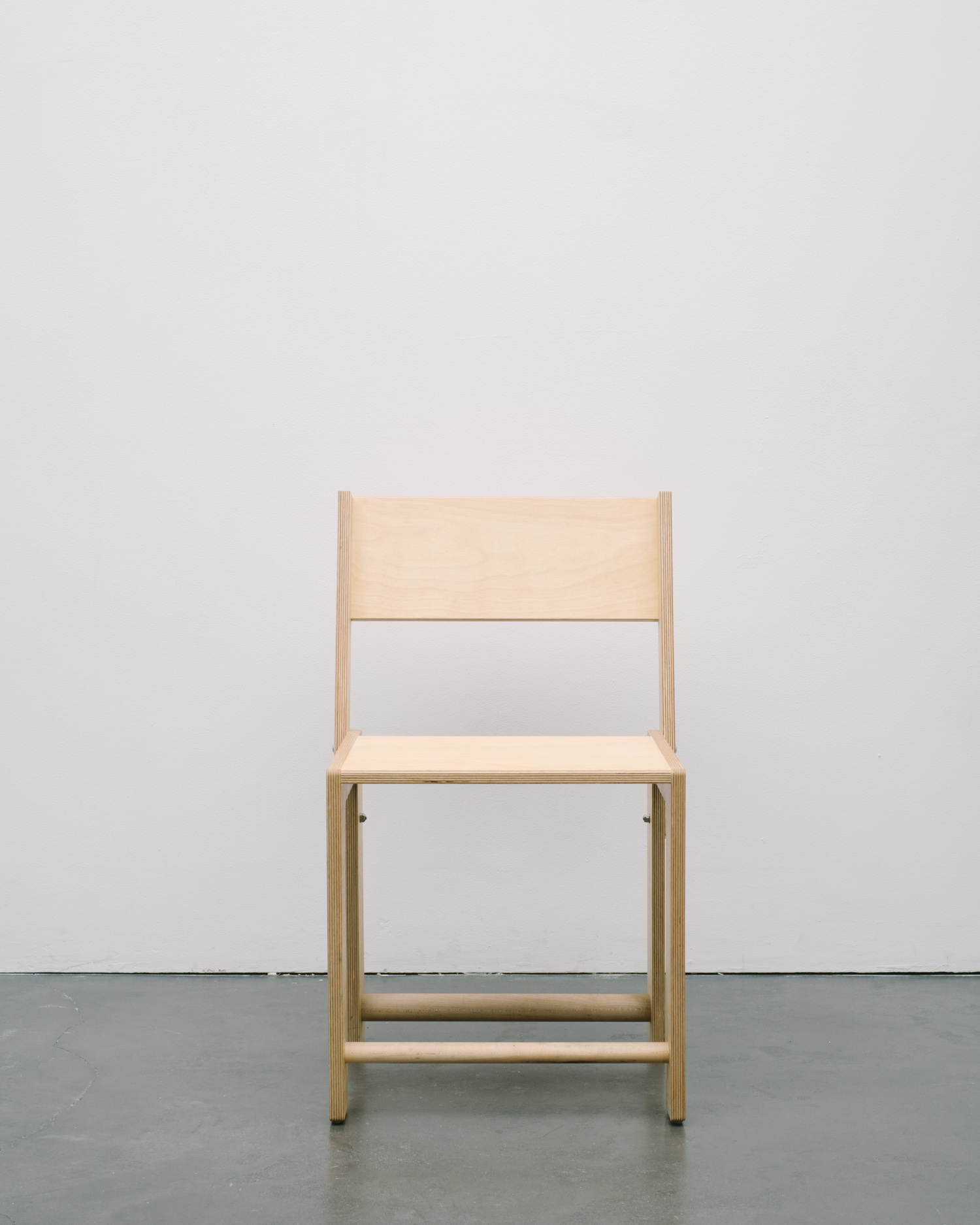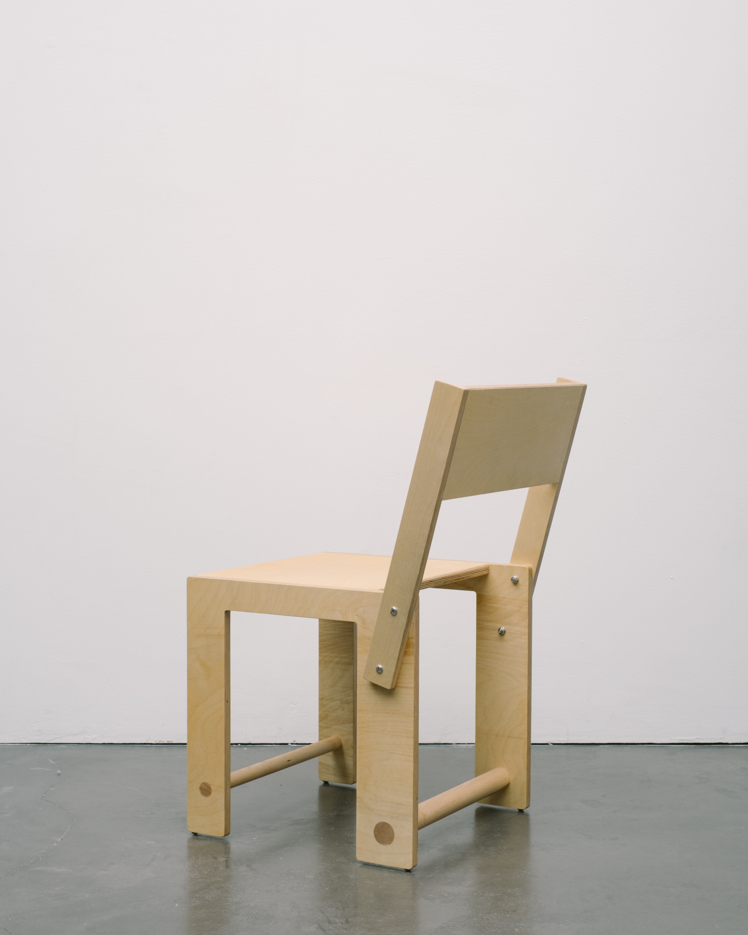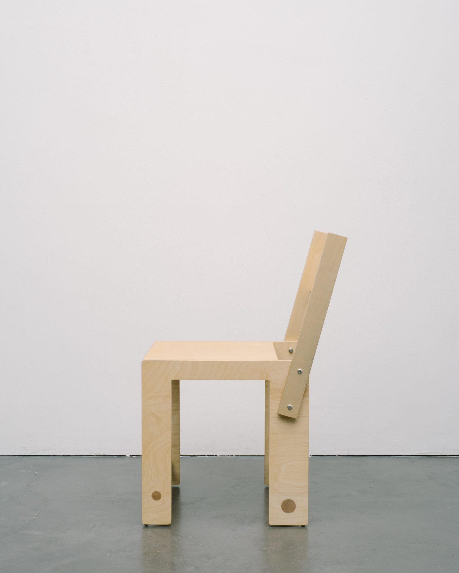 合作系列包括一款由波罗的海桦木胶合板打造的椅子,以钢制螺栓固定矩形座面与倾斜靠背,直径 1 英寸与 1.5 英寸的枫木圆木杆在椅腿间形成结构与美学的双重连接;另一款同材质凳子亦以桦木夹板打造,座面与两侧均为双层板结构;上层板面开有直径 3 英寸与 4.5 英寸的圆孔,形成层次感并露出贯穿两侧的桦木圆柱,呼应椅子设计语言,营造两件作品间的对话感。