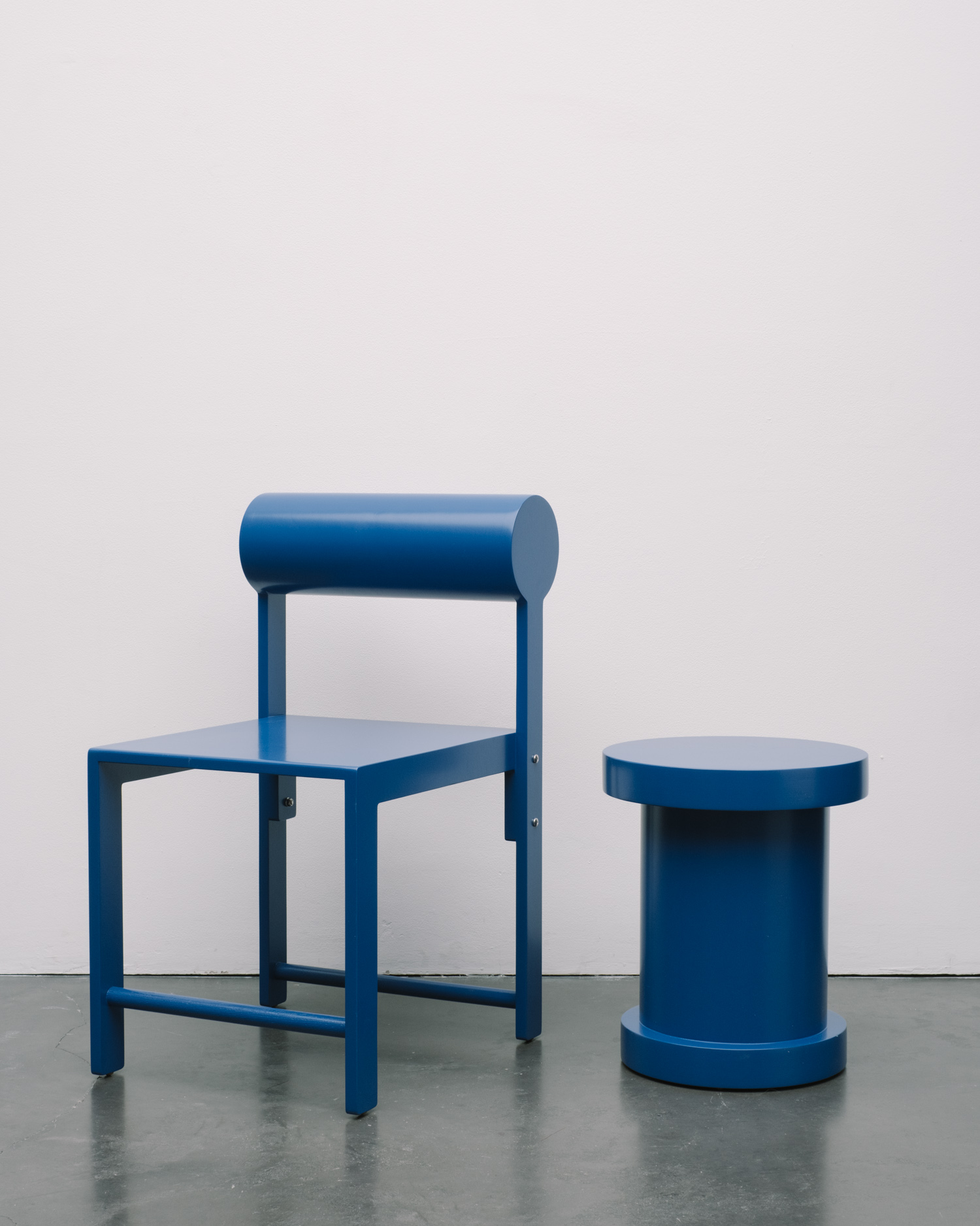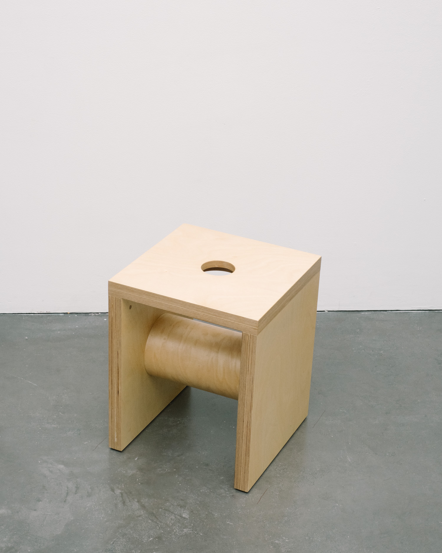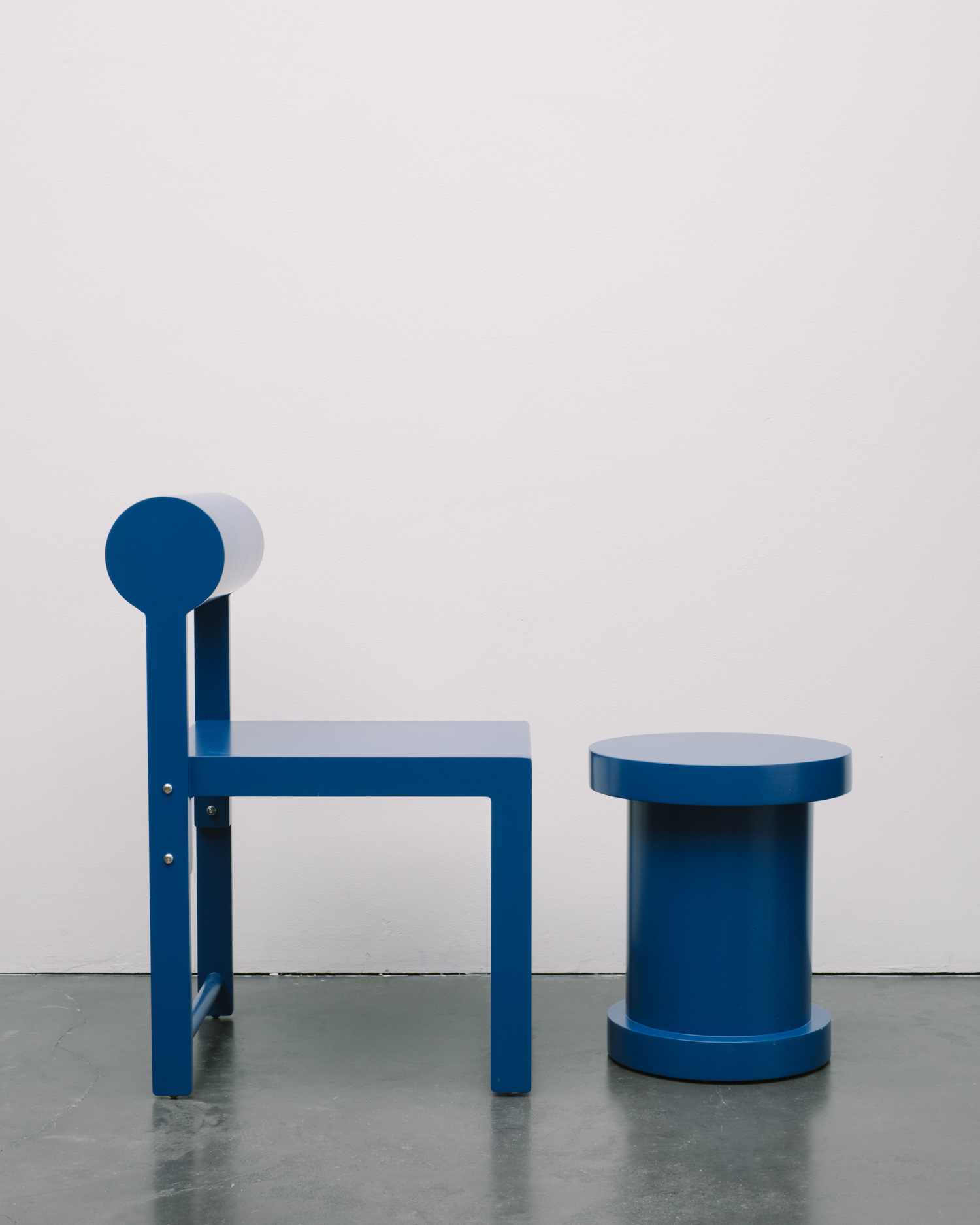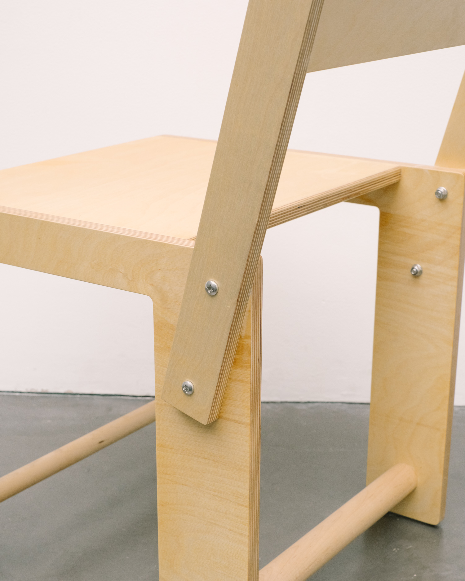 合作系列包括一款由波罗的海桦木胶合板打造的椅子,以钢制螺栓固定矩形座面与倾斜靠背,直径 1 英寸与 1.5 英寸的枫木圆木杆在椅腿间形成结构与美学的双重连接;另一款同材质凳子亦以桦木夹板打造,座面与两侧均为双层板结构;上层板面开有直径 3 英寸与 4.5 英寸的圆孔,形成层次感并露出贯穿两侧的桦木圆柱,呼应椅子设计语言,营造两件作品间的对话感。