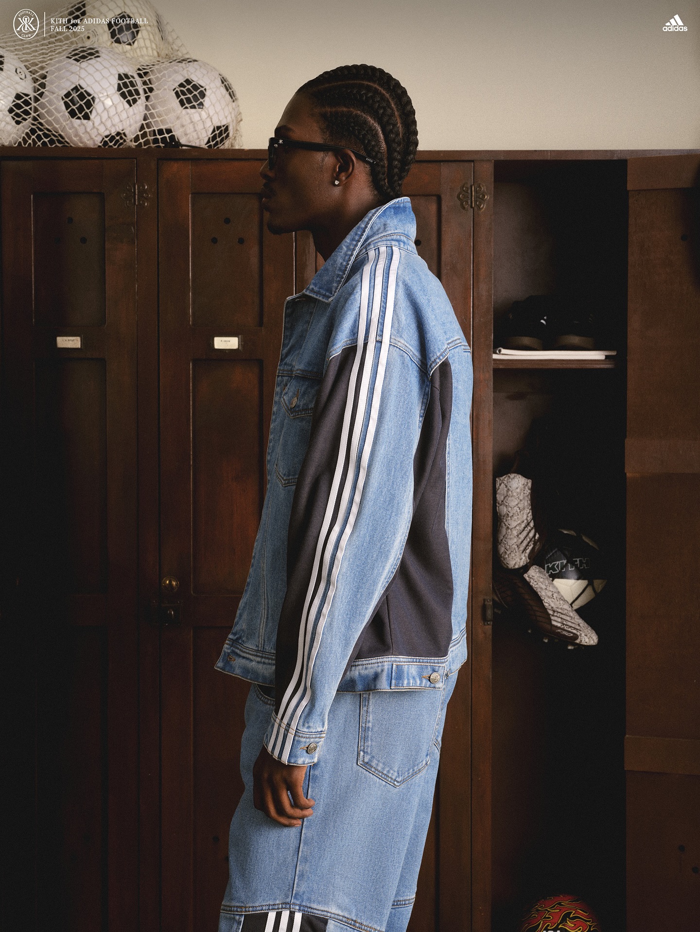 KITH 再度携手 adidas Football 推出 2025 秋季系列,这是双方今年的第二个合作篇章。本次系列以运动与生活方式的融合为核心,将经典足球元素与街头时装语境重新解读。新系列单品涵盖服饰、配件与鞋履。服饰部分以 1998 年世界杯球衣为灵感,加入火焰图案与条纹刺绣细节,并引入拼接牛仔设计,这是该合作首次将丹宁融入运动风格。除经典球衣与短裤外,系列还包括运动外套、针织夹克、缎面飞行夹克以及拉链球衣上衣,结合 Adi-break 裤装与功能性面料拼接,兼具实穿性与造型感。配件方面,则推出联名卡车帽、棒球帽、印花托特包以及三款印花足球,完整延伸系列主题。