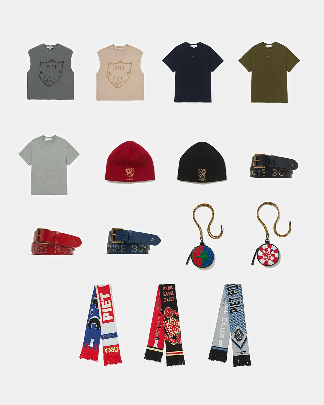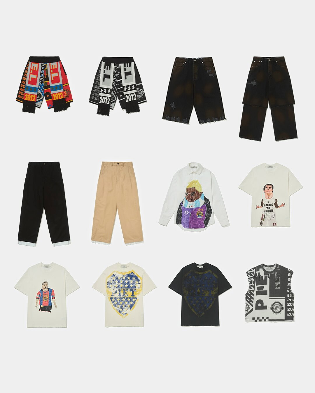 全新系列延续了球迷文化的核心元素,包括教练风格的夹克、围巾,以及与艺术家 Apostolis Dimitropoulos 合作打造的插画 T 恤,这些设计均以足球偶像与看台视觉为灵感,展现了有组织的球迷文化如何被转化为时尚表达。PIET 通过这一系列作品,强调了球迷群体将激情转化为独特文化语言的过程,并使其在街头风格中得以延续。