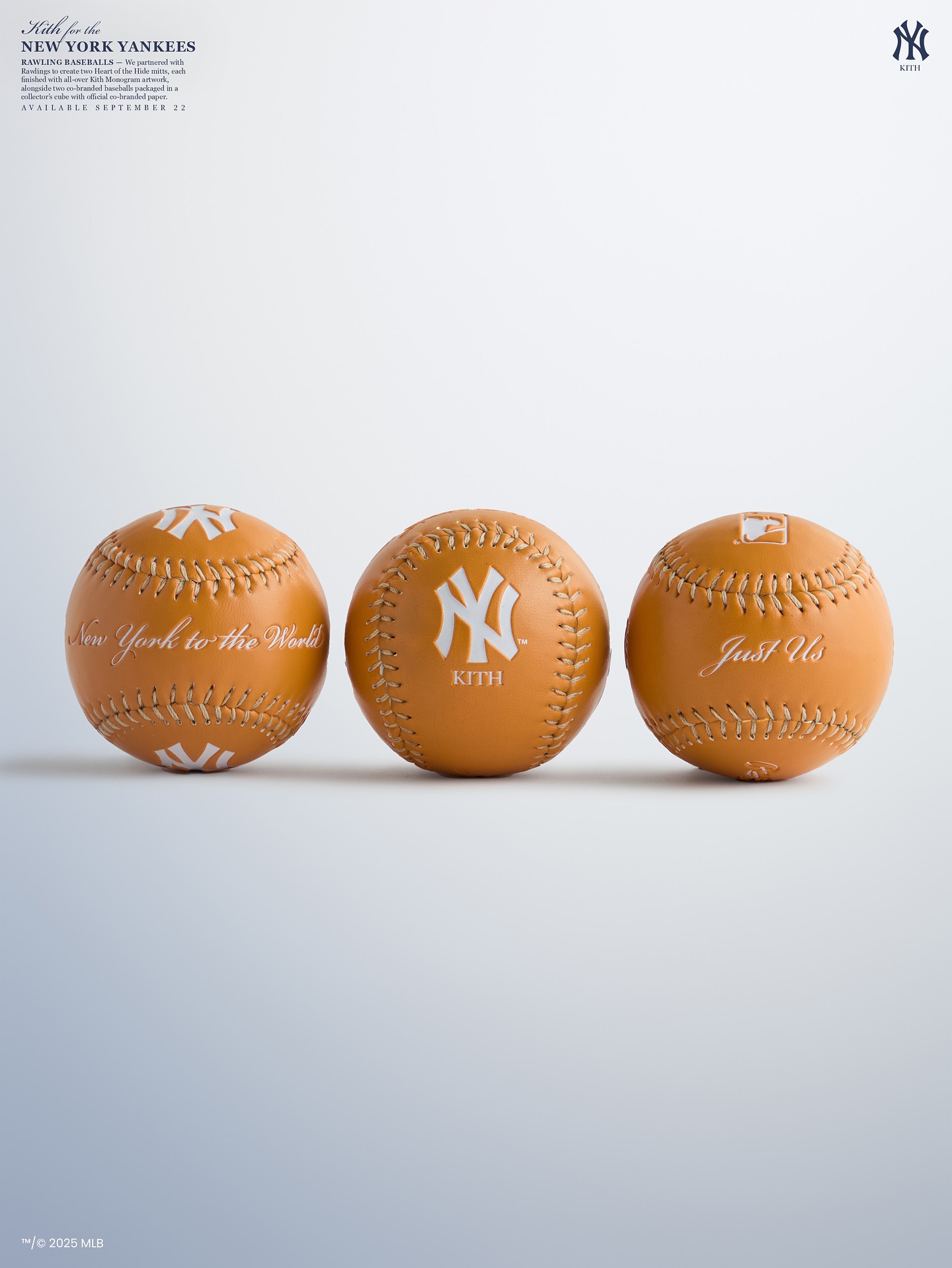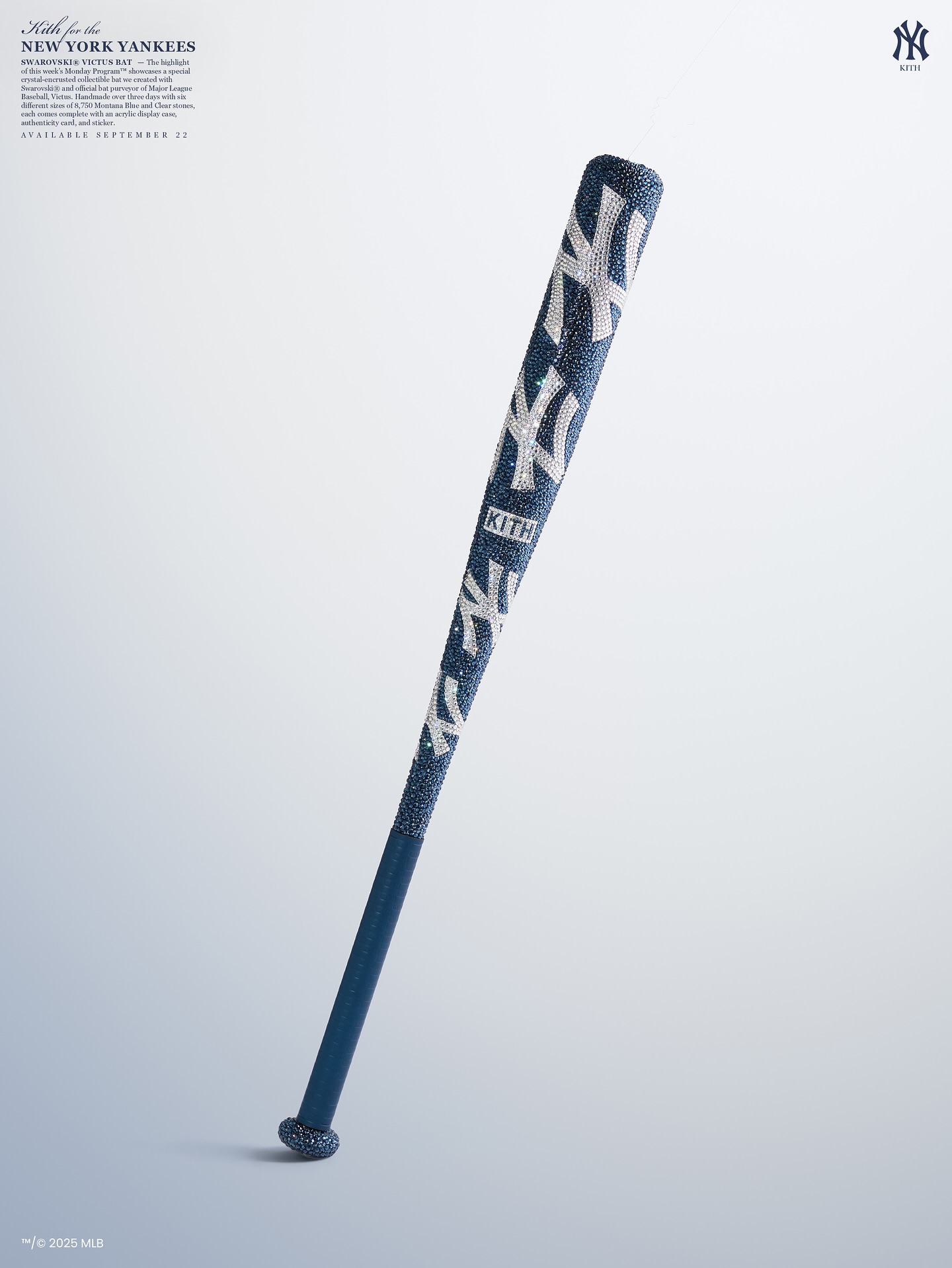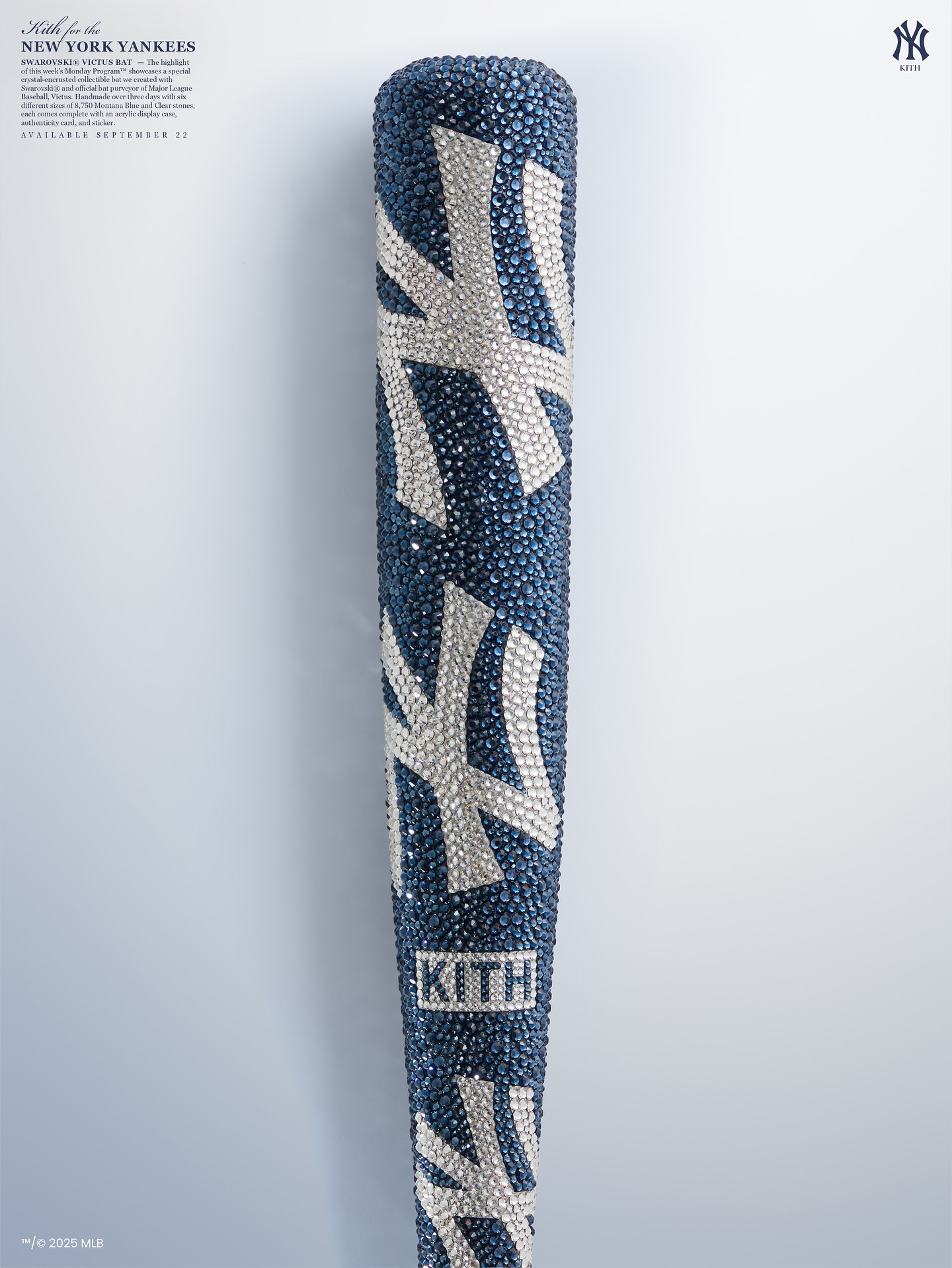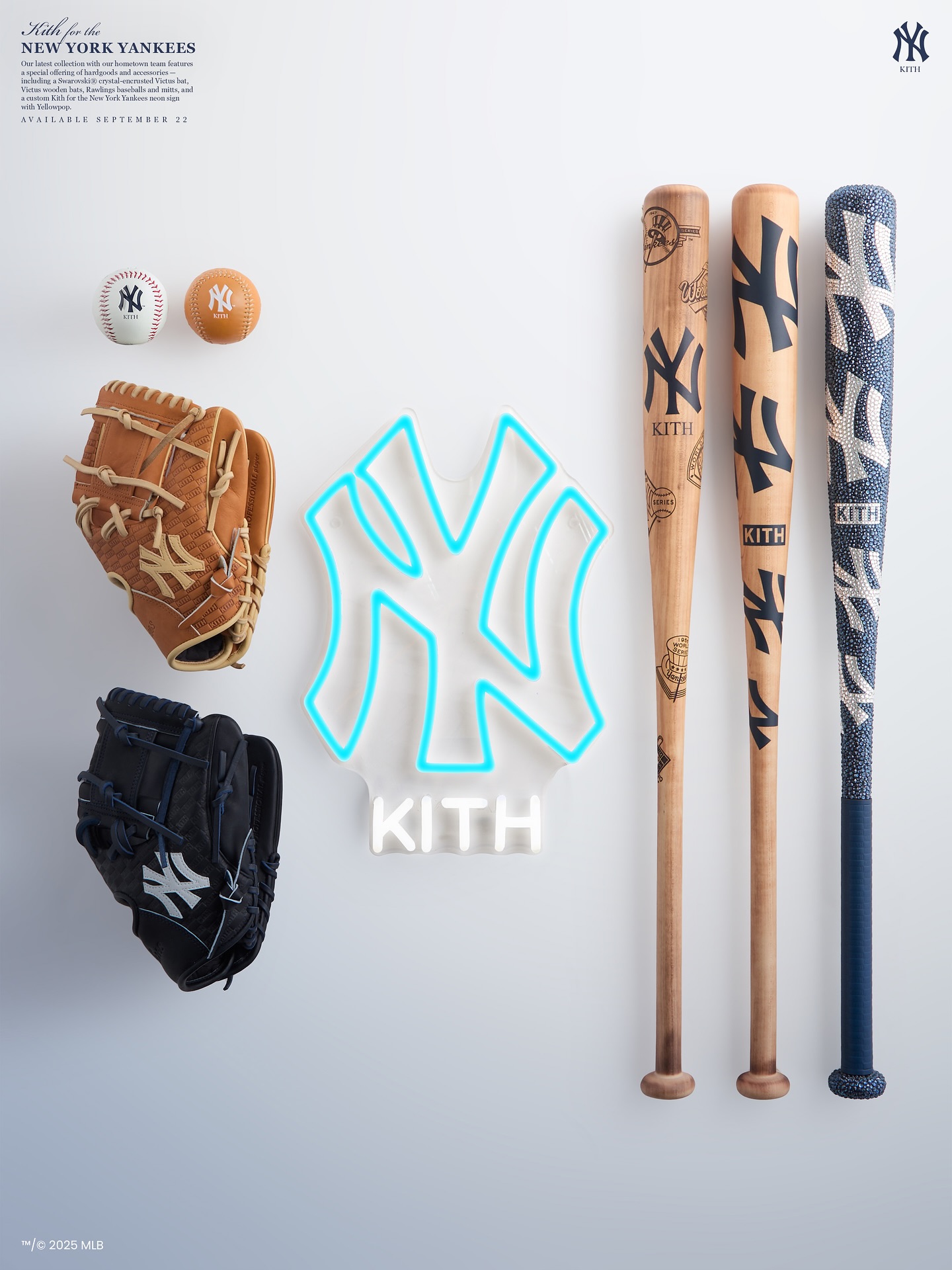 近日,KITH 携手 New York Yankees 推出限量收藏系列,该系列以奢华材质重塑经典棒球装备,诠释街头潮流与职业体育的跨界融合。系列核心为与施华洛世奇及职业棒球供应商 Victus 联名的水晶镶嵌收藏级球棒,全球限量生产并需 8-12 周定制交付。同时推出与 Rawlings 合作的 Heart of the Hide 专业手套及棒球、Victus 木质球棒,以及 Yellowpop 设计的纽约洋基队联名标志周边。据悉该合作系列将于美东时间 2025 年 9 月 22 日通过 Monday Program 正式发售。