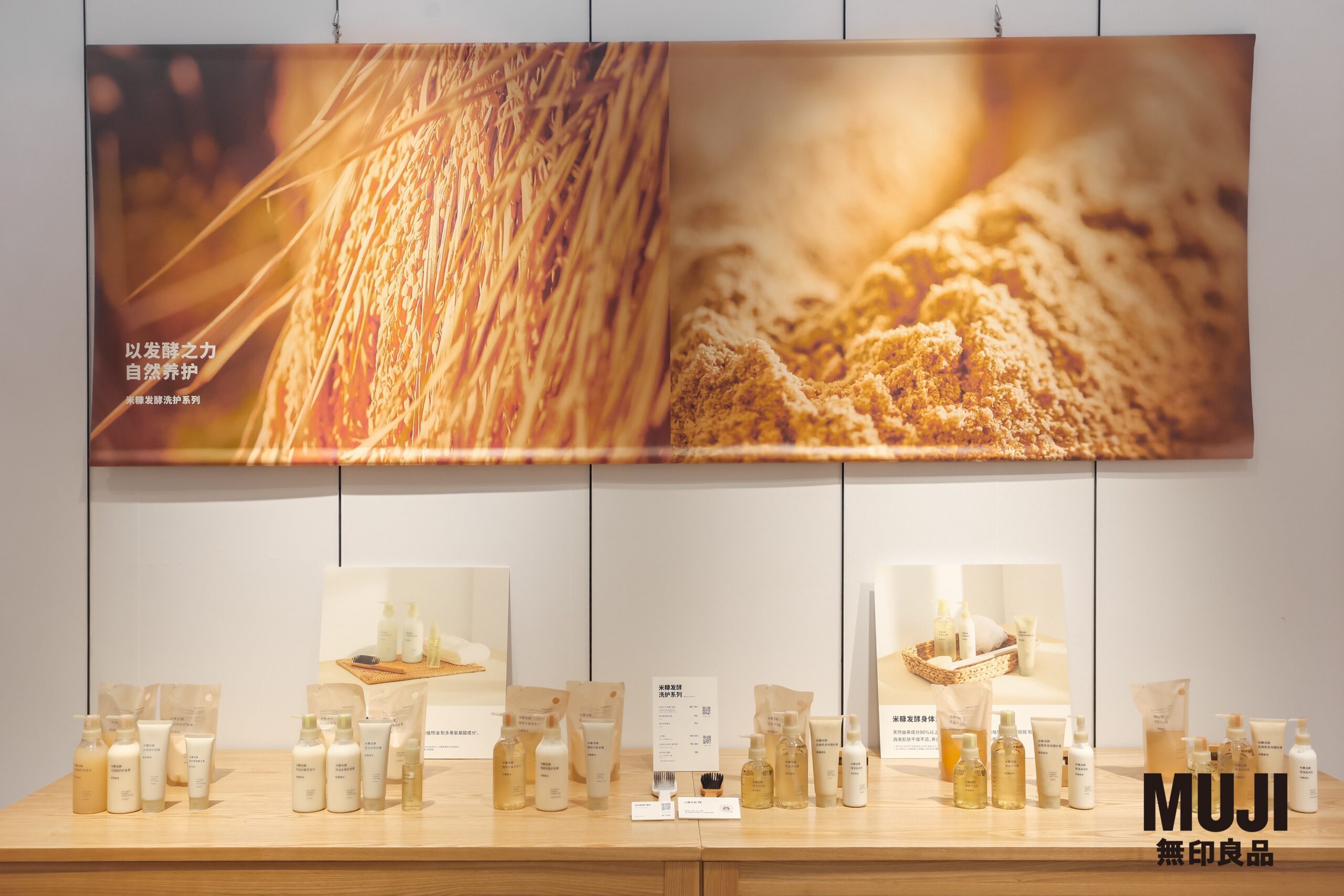 生活杂货方面,MUJI 重磅推出米糠发酵精华系列,充分挖掘米糠发酵液成分的功效、价值,现地开发并运用于洗护、彩妆多个产品线中。此外,MUJI 全新推出暖柔系列床品、家居家具、食品等新品,为消费者带来生活细微处的呵护,呈现温暖惬意的居家生活提案。