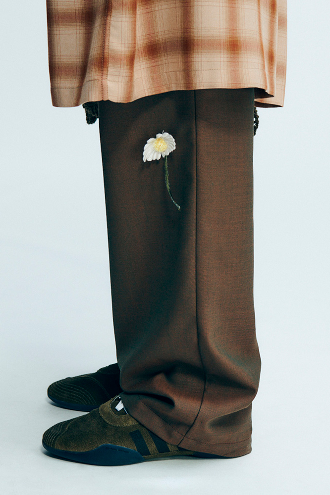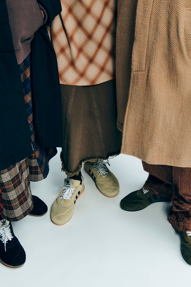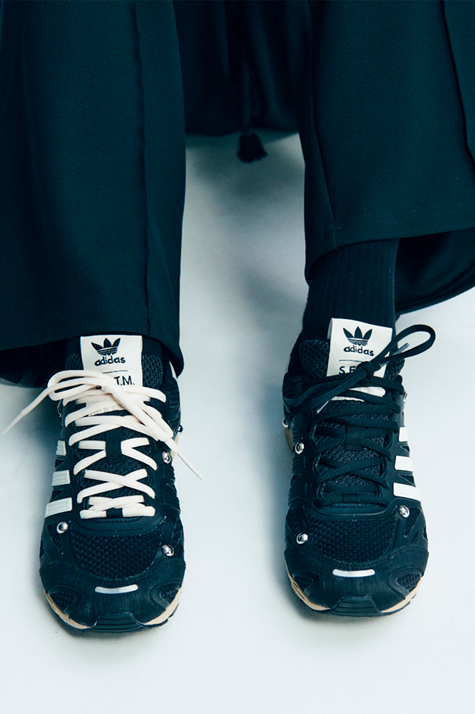 将熟悉的事物作为探索的起点,Song for the Mute 携手 adidas Originals 推出第六次合作。其亮点鞋款 Taekwondo Mei 的外形依然易于辨认,但结构却有所变化:弹性鞋口和系带扣一改最初的设计,不对称拼接鞋头经过精心设计,却又不失自然感。拉绒绒面革鞋面带来柔和的做旧质感。经典跑鞋 Adizero 则保留了轻盈的网眼和 TPU 材质,复古的橡胶中底和不对称鞋带赋予了它全新质感。银色覆层和金属铆钉则起到了保护作用。