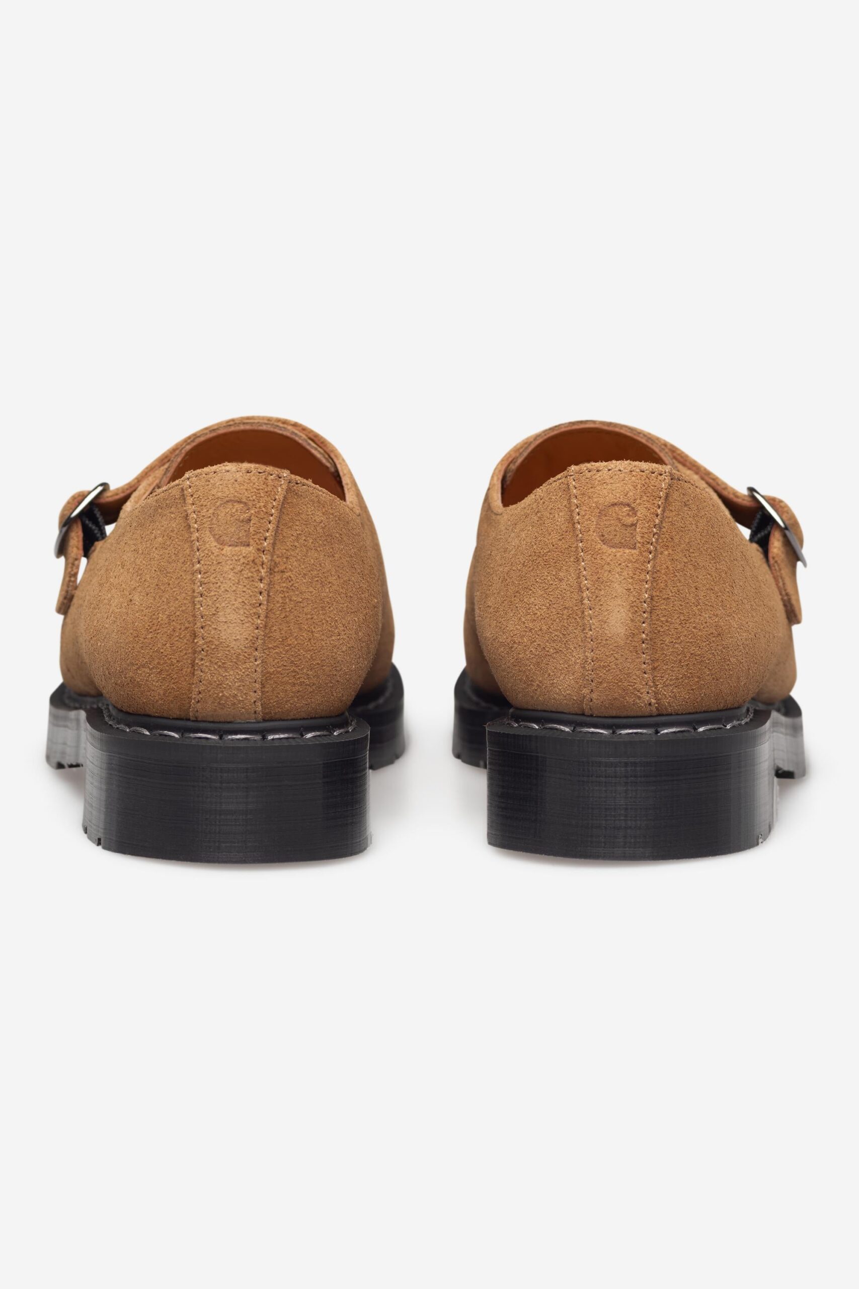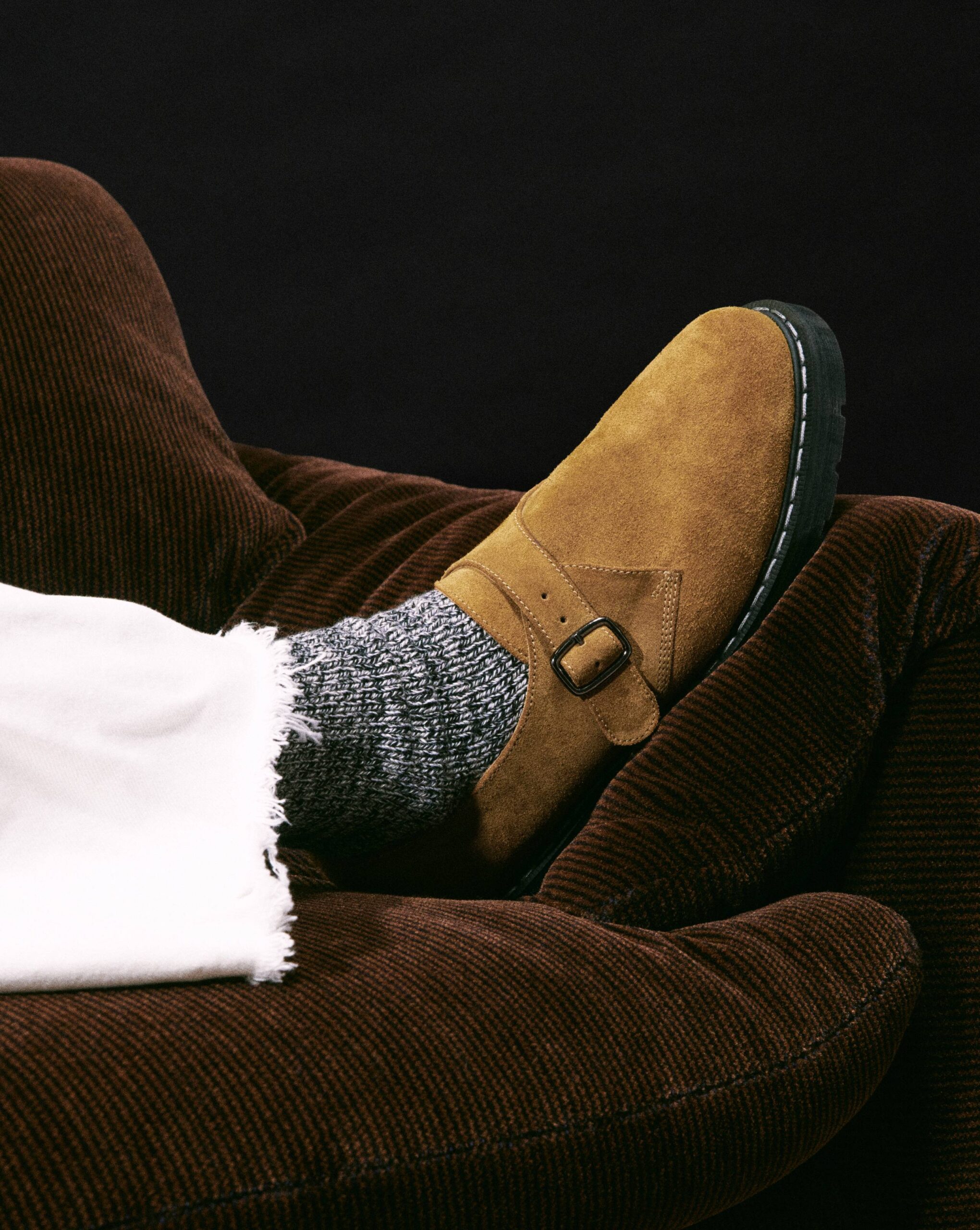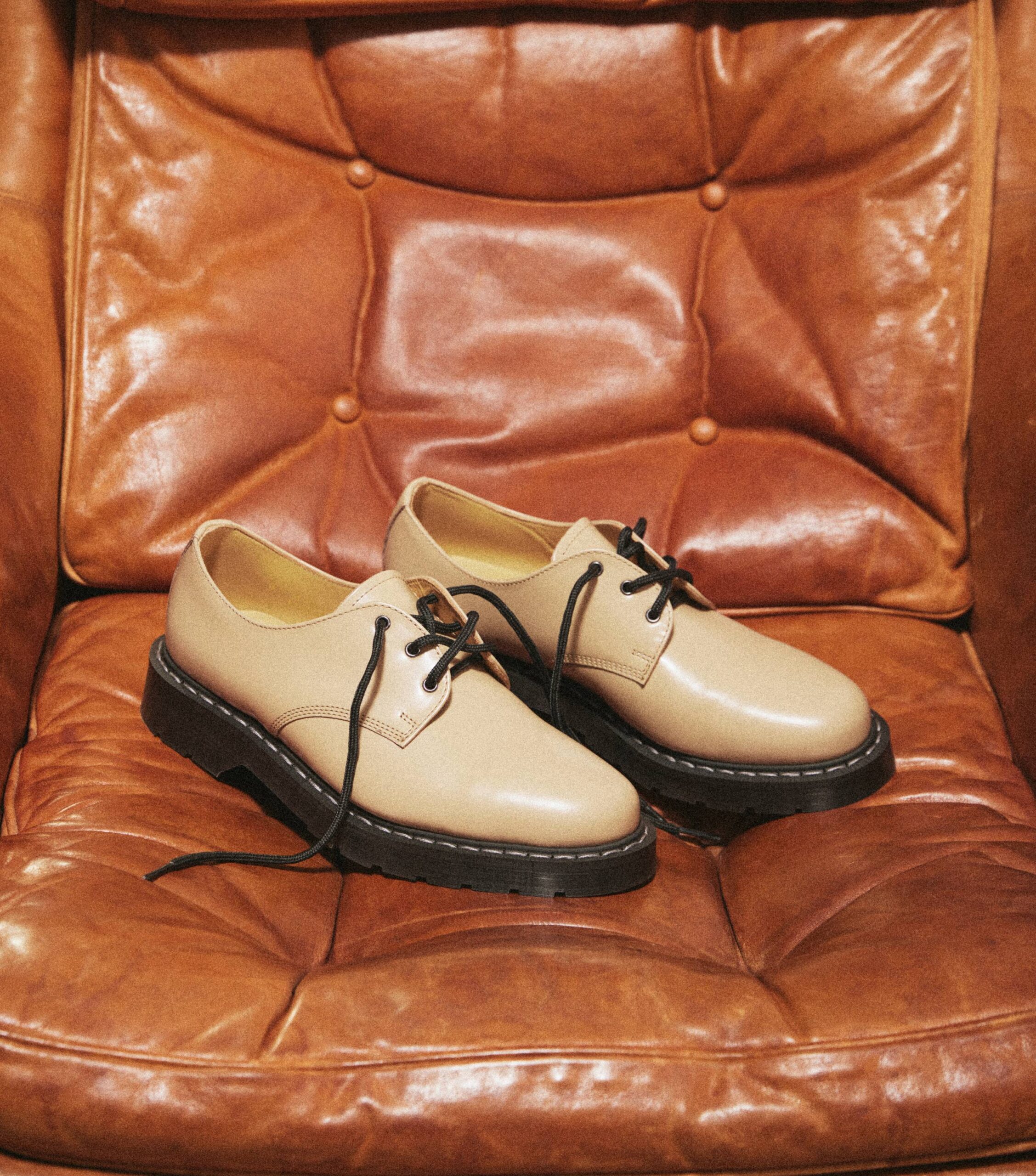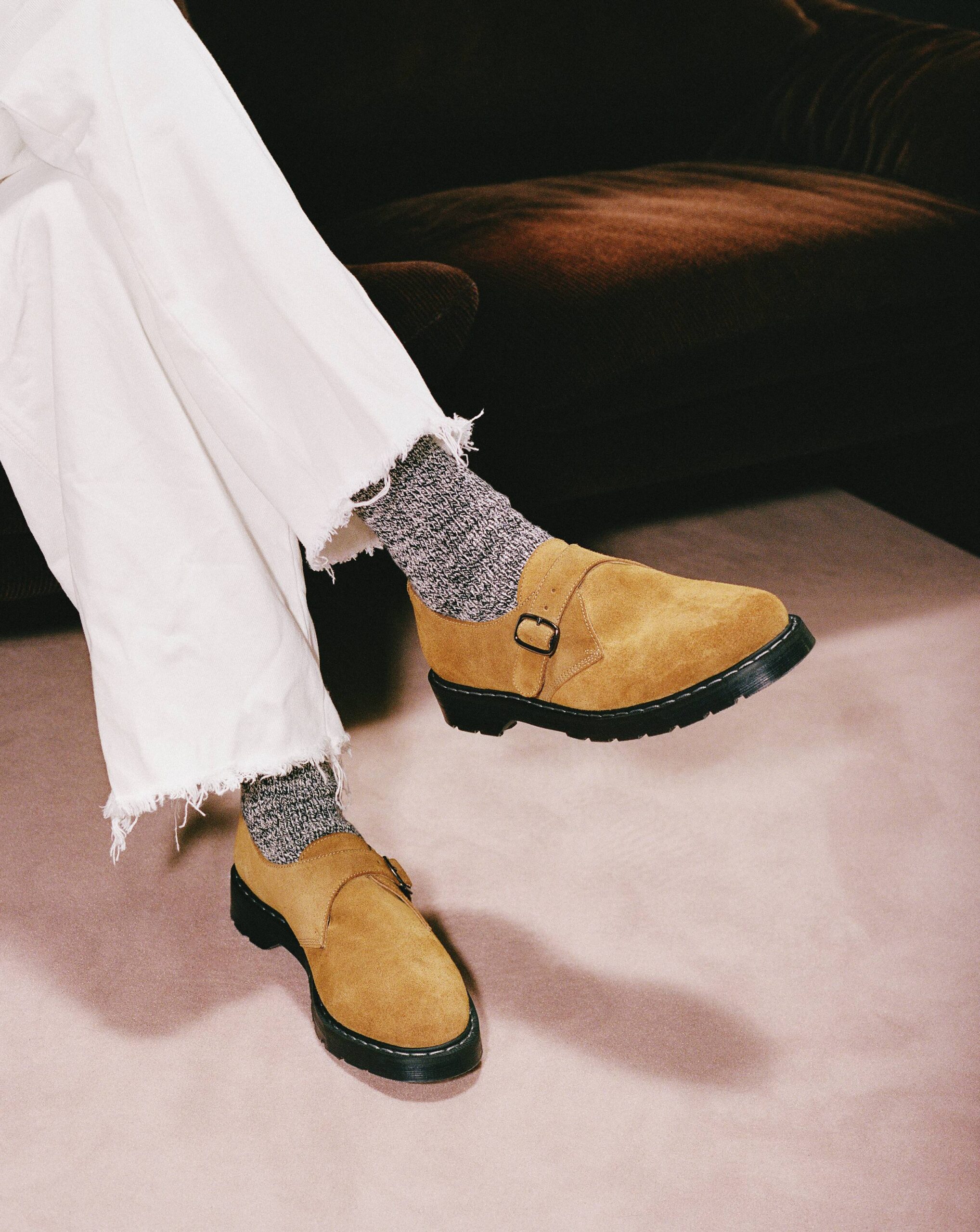 此次合作共带来三款鞋型:经典的三孔 Gibson 鞋以黑色亮面皮革演绎,同时推出 Dusty Hamilton Brown 亮面版本;另一款则采用柔软棕色麂皮打造,配以单扣 Monk Strap 设计。每双鞋附带两套来自系列色系的鞋带,凸显搭配细节。所有 Solovair 鞋履均采用 Goodyear 缝制工艺,鞋面、鞋垫与中底通过缝条牢固相连,保证耐穿性并可更换鞋底。每双鞋需耗时 12 至 16 周手工完成,展现品牌一贯的高水准工艺。