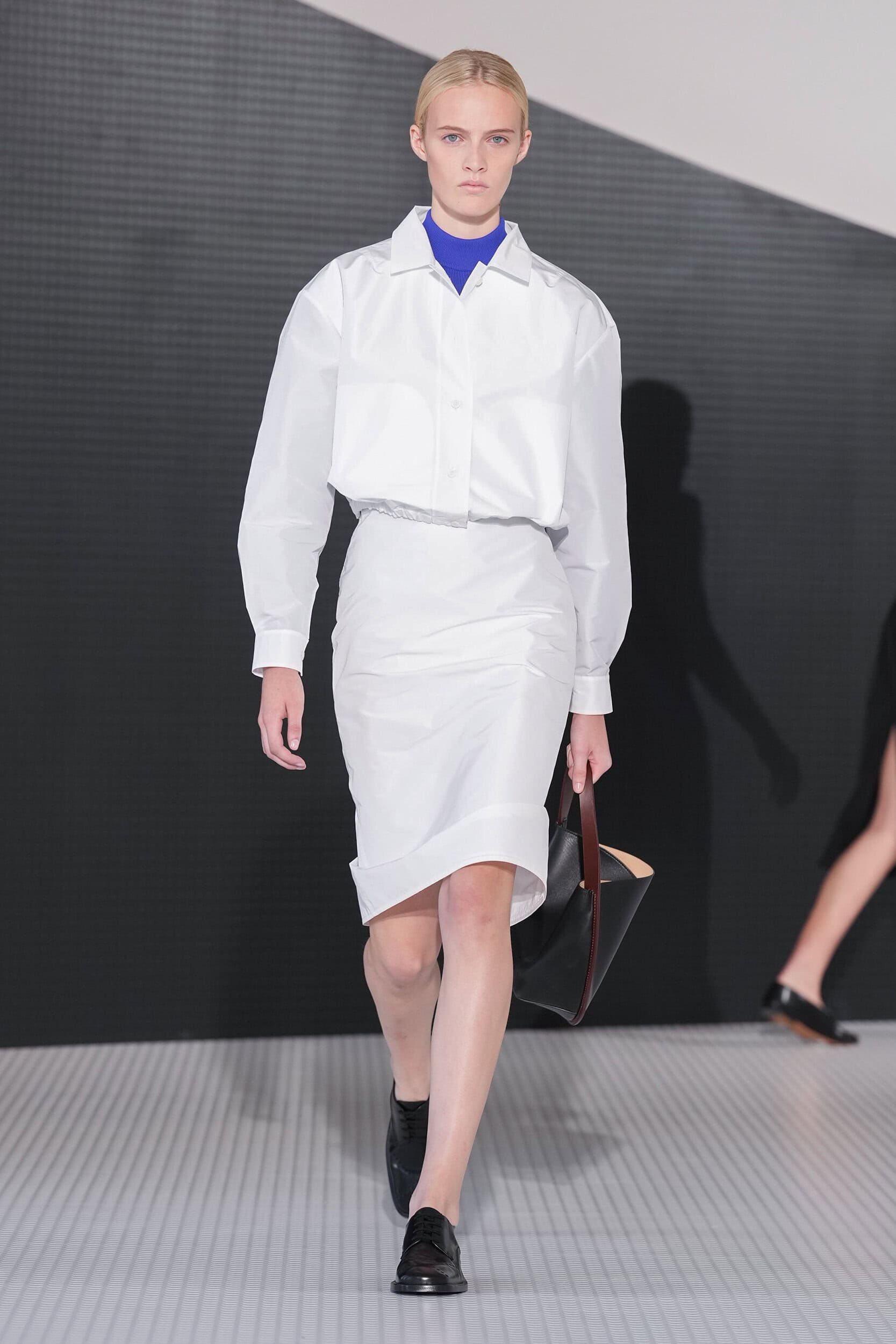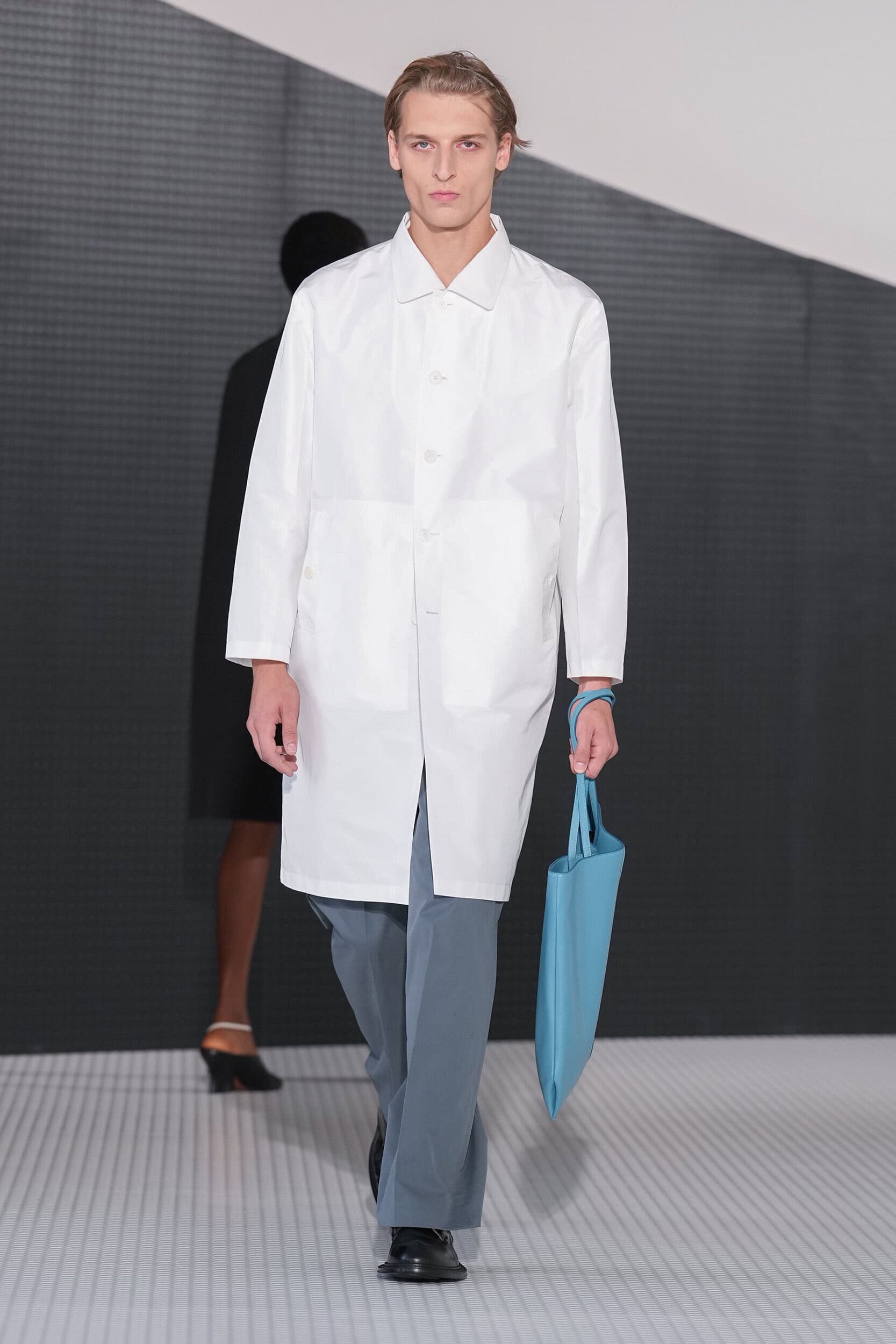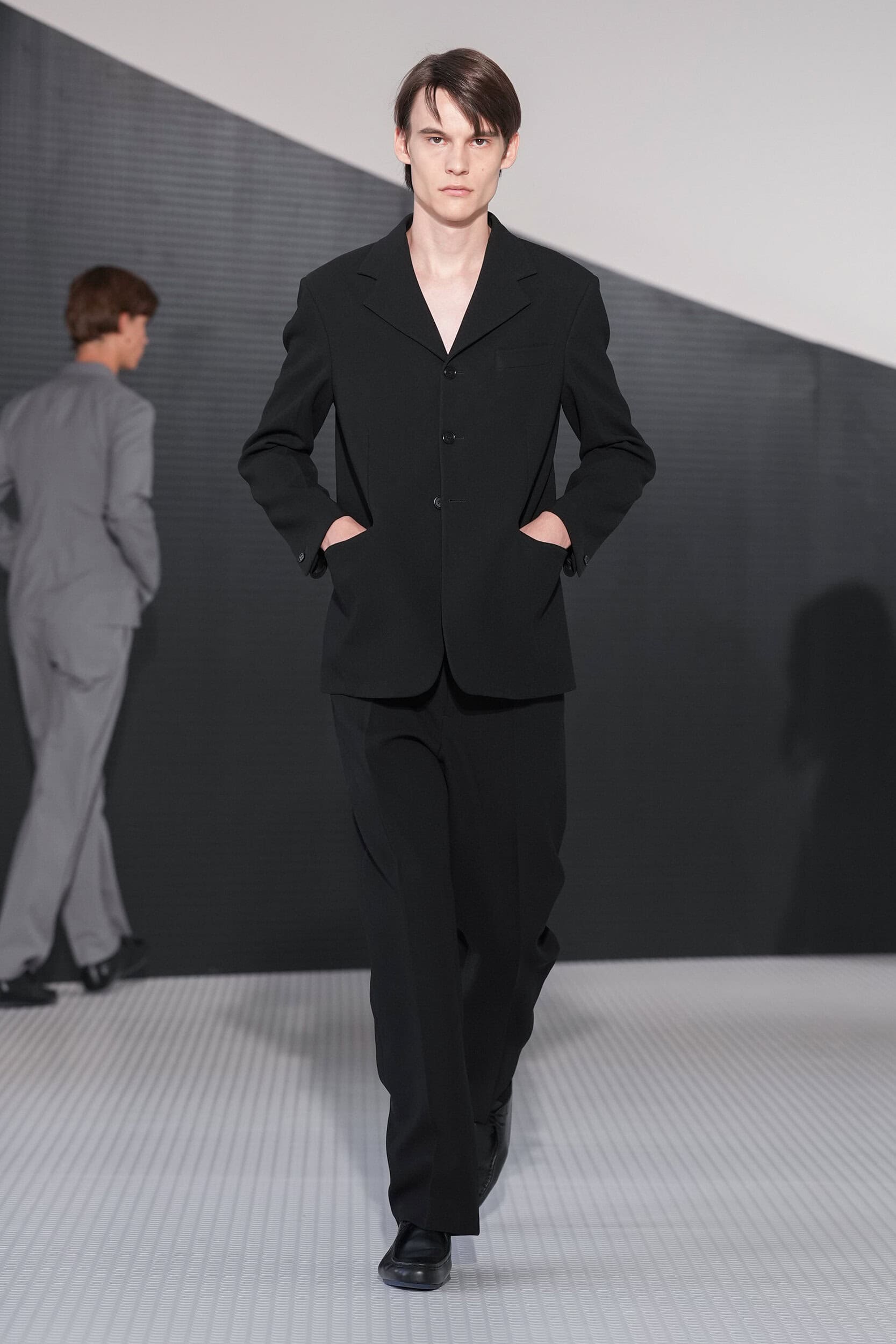 JIL SANDER 稍早前发布由创意总监 Simone Bellotti 操刀的首个系列。大秀的场地选择,正是 40 年前创始人所选择的地方,这为其新的开始提供了一个充满象征意义的背景。品牌一贯代表着极简主义的优雅,历经创始人时期带有柔美女性气质的简洁风格,到 Raf Simons 在掌舵的七年间,他大胆使用鲜明的色彩搭配,使品牌吸引了更多目光。最近的掌门人 Luke 和 Lucie Meier 则通过盒型超大轮廓和精致的质感设计,让品牌的受欢迎程度达到了新高。Simone Bellotti 则开始聚焦结构,探索简单或复杂的应用如何重塑人们对服装的感知。