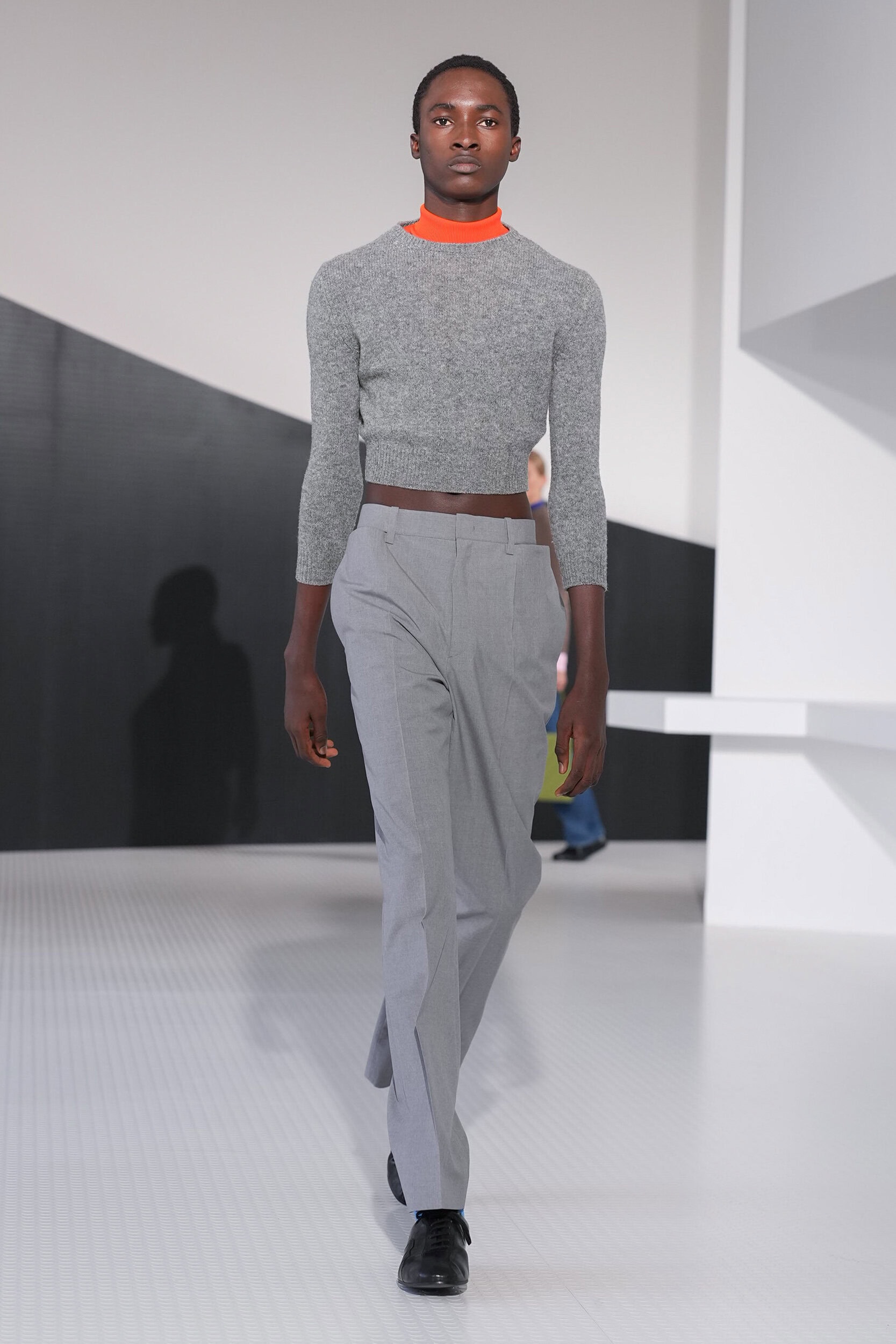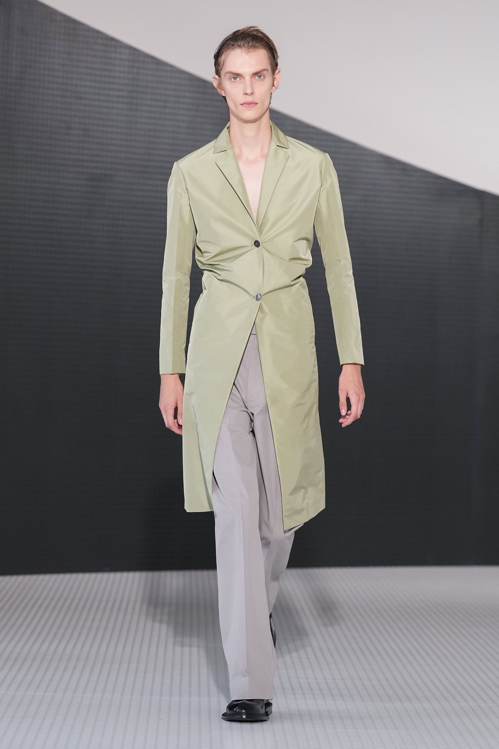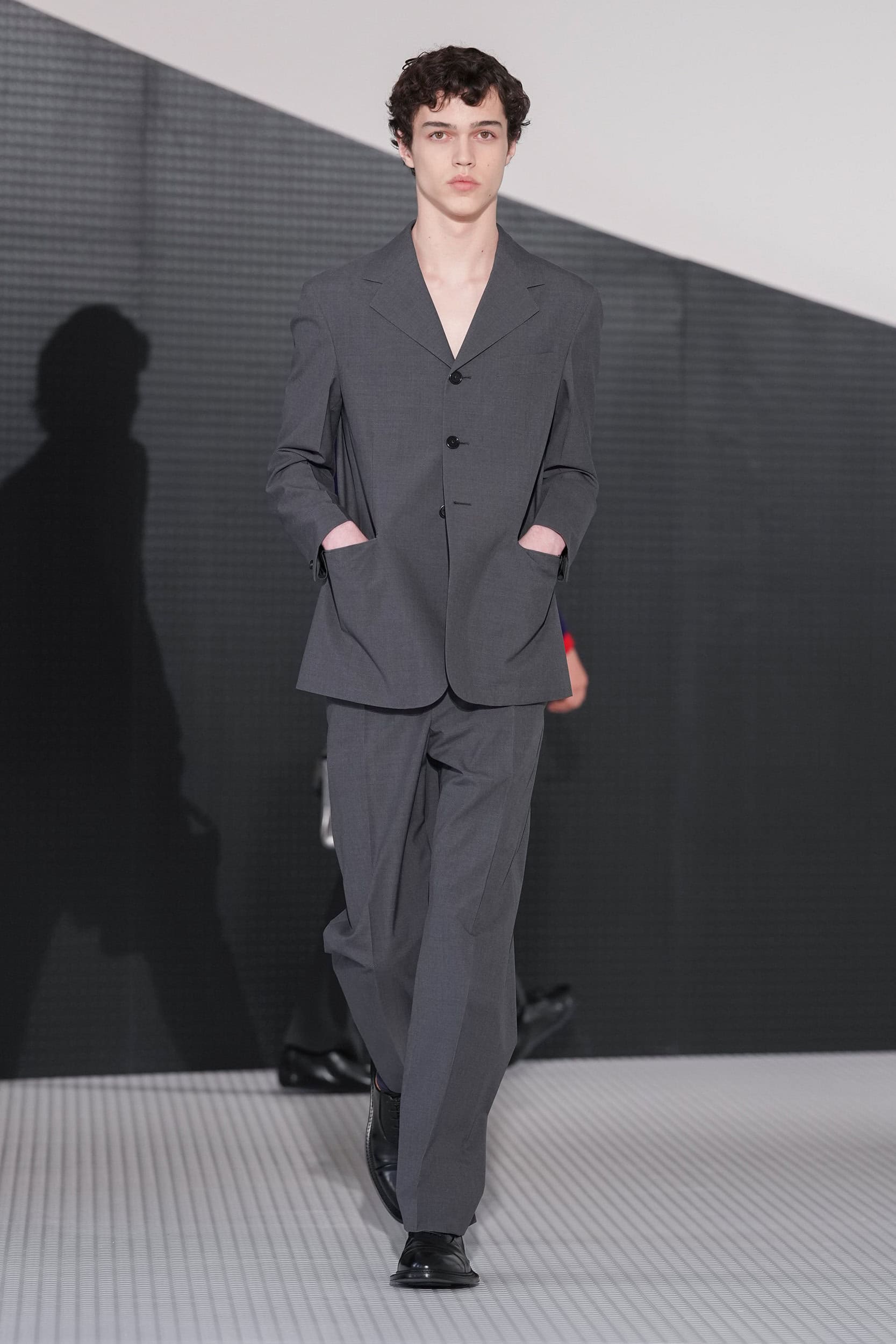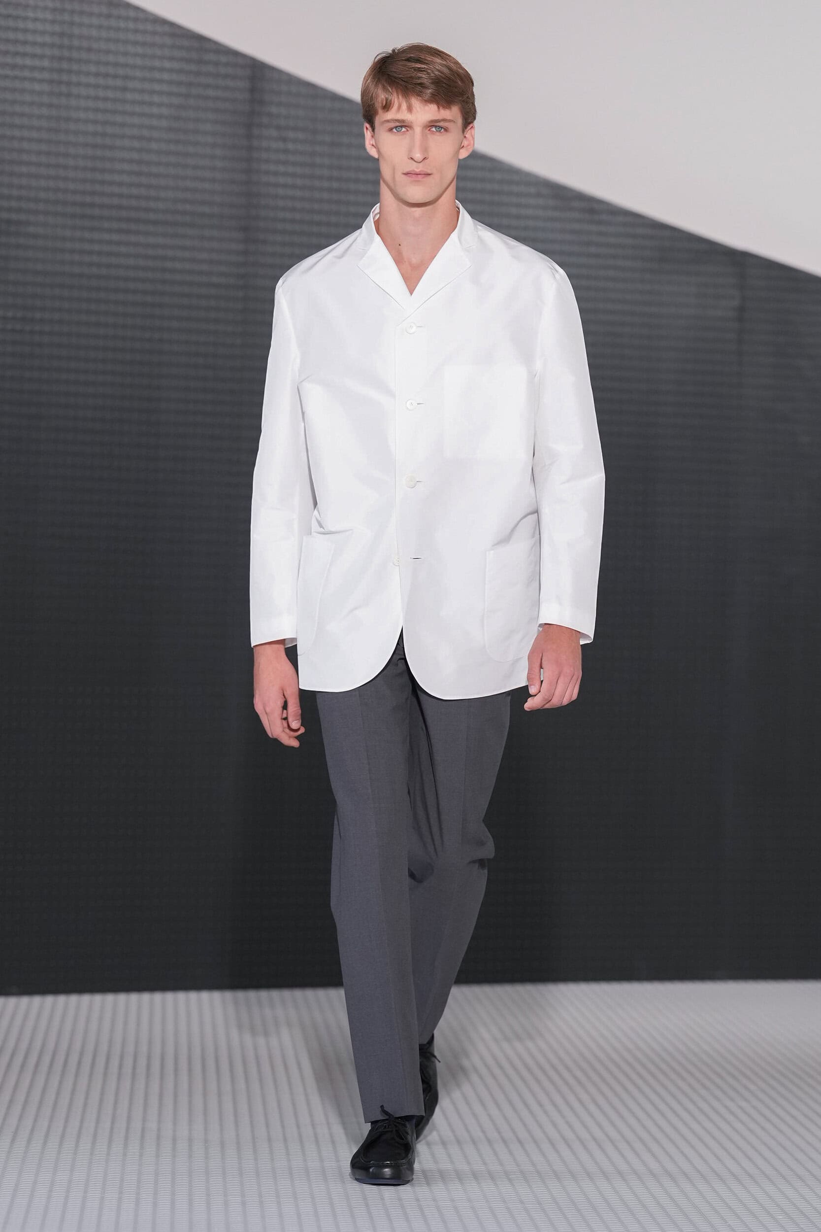 JIL SANDER 稍早前发布由创意总监 Simone Bellotti 操刀的首个系列。大秀的场地选择,正是 40 年前创始人所选择的地方,这为其新的开始提供了一个充满象征意义的背景。品牌一贯代表着极简主义的优雅,历经创始人时期带有柔美女性气质的简洁风格,到 Raf Simons 在掌舵的七年间,他大胆使用鲜明的色彩搭配,使品牌吸引了更多目光。最近的掌门人 Luke 和 Lucie Meier 则通过盒型超大轮廓和精致的质感设计,让品牌的受欢迎程度达到了新高。Simone Bellotti 则开始聚焦结构,探索简单或复杂的应用如何重塑人们对服装的感知。