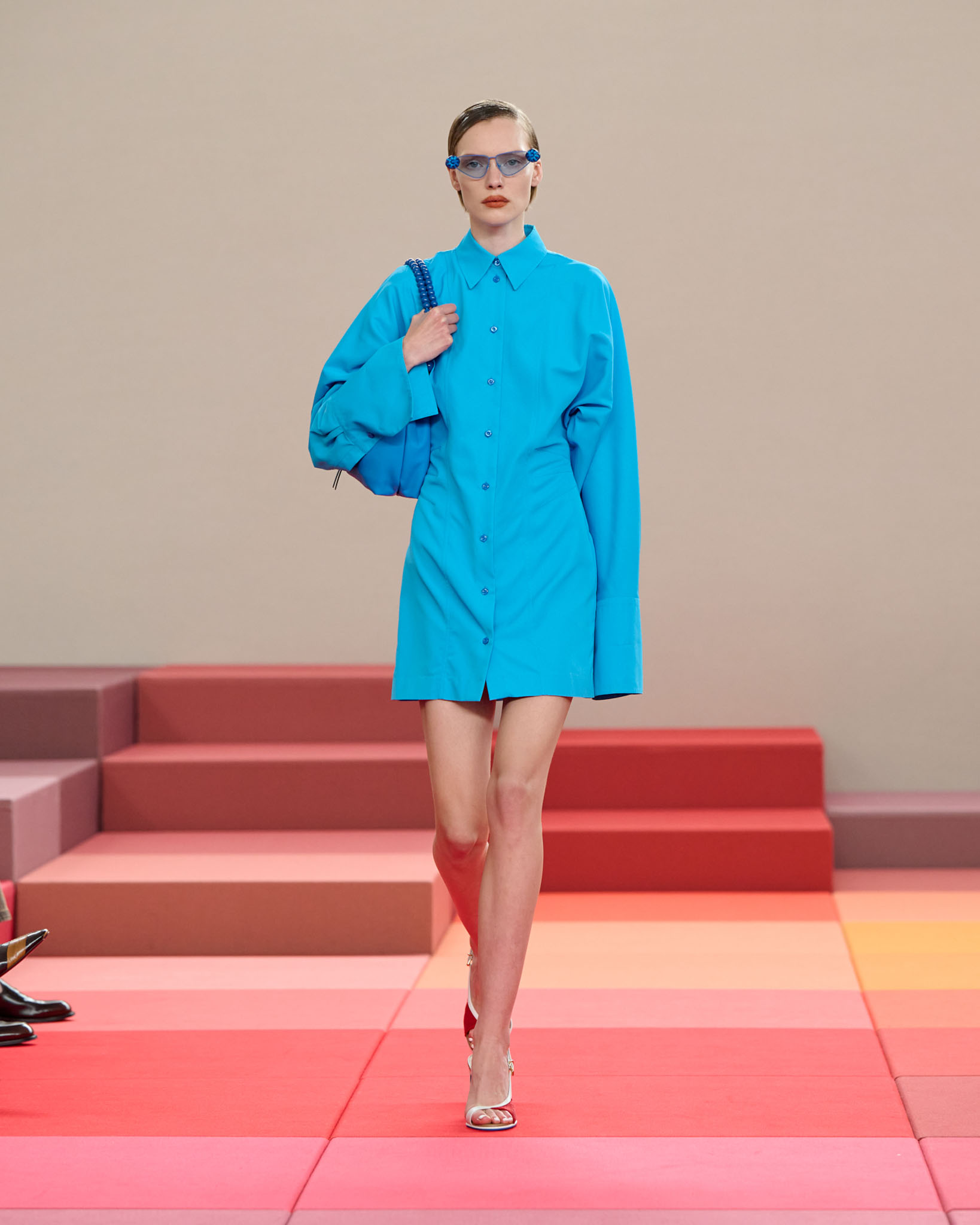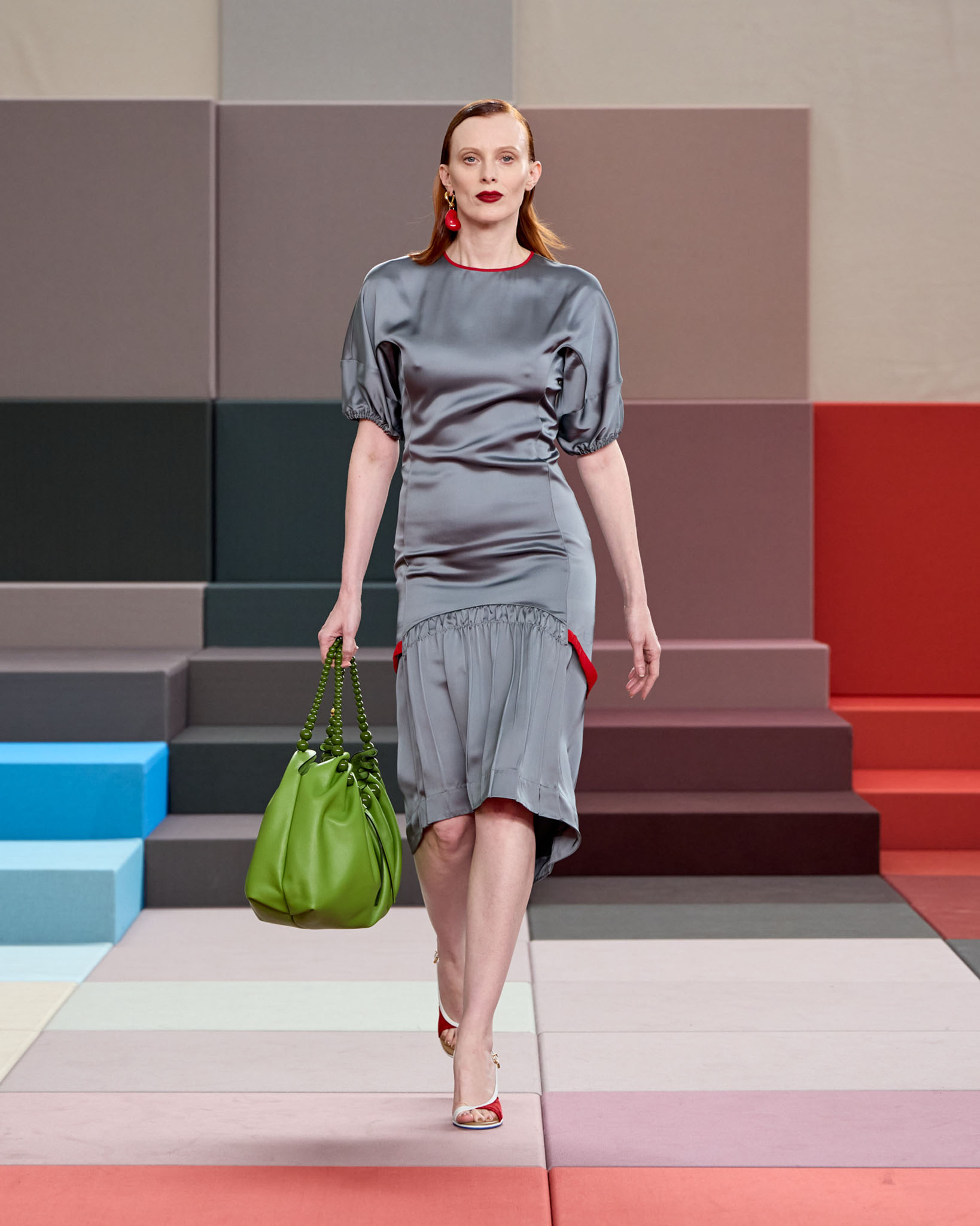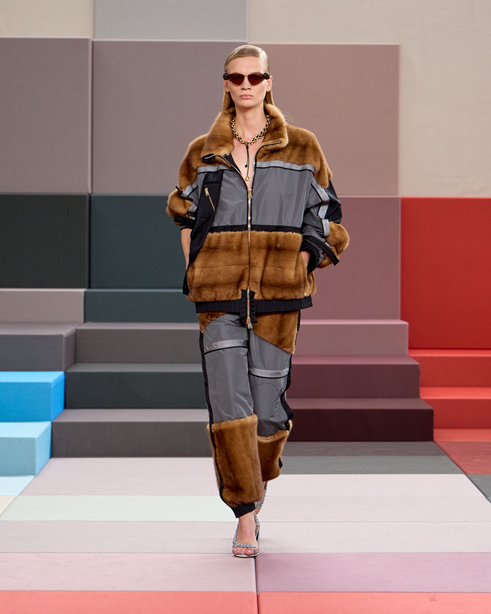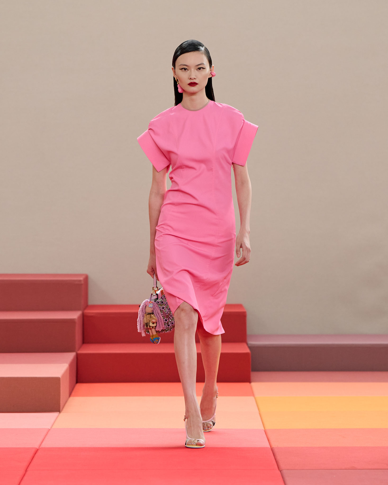 FENDI 今年正值成立 100 周年之际,创意总监 Silvia Venturini Fendi 与工业设计师 Mar Newson 合作,将秀场舞台打造成亮眼的像素化风格,推出了一个融合意式轻松与波普艺术美感的服装系列。
