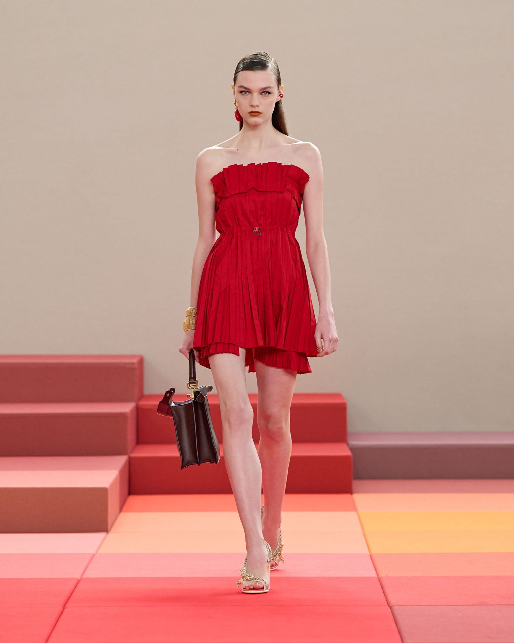 在这一季的发布中,FENDI 不仅以新颖的视觉语言回应了当下时装界的实验精神,也以百年品牌的底蕴证明了其不断进化的创造力。透过对轻盈与厚重、经典与俏皮之间的巧妙拿捏,Silvia Venturini Fendi 再次展现出品牌兼容并蓄的姿态,让 FENDI 的 100 周年不仅是一场回顾,更成为一段通往未来的宣言。