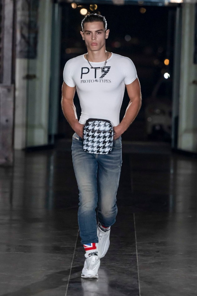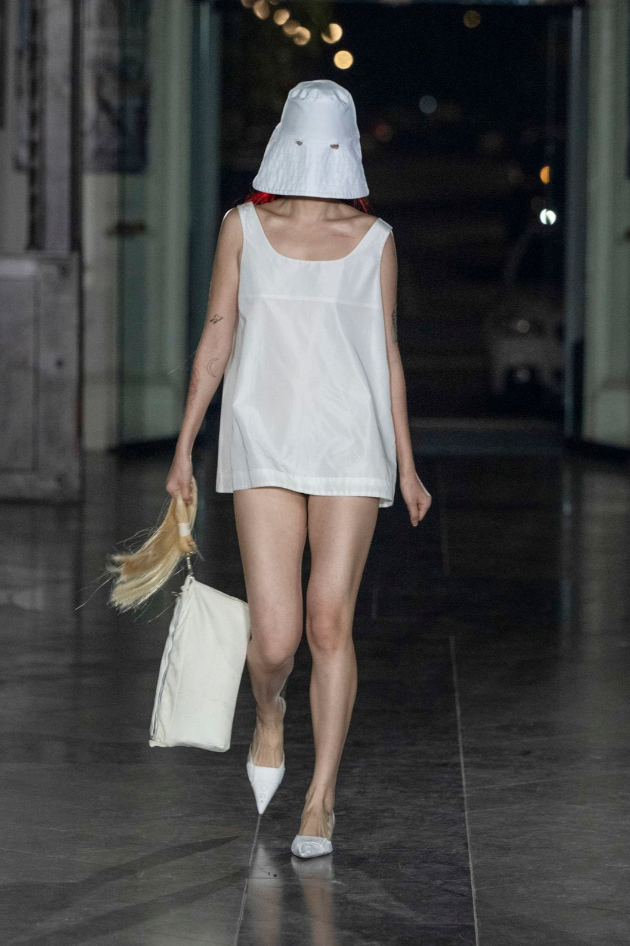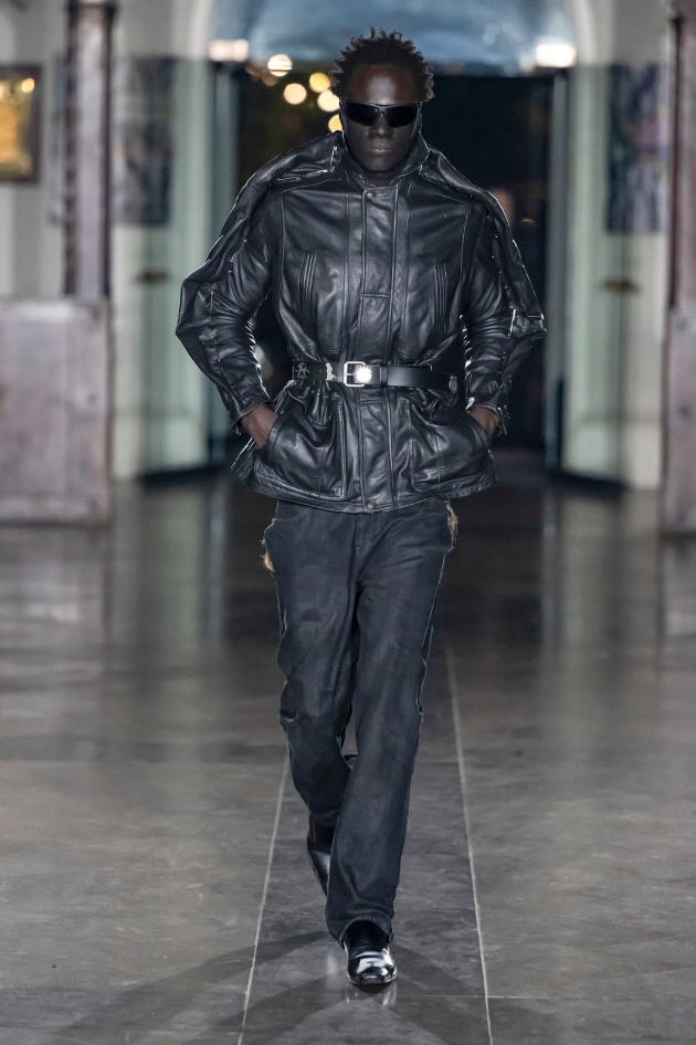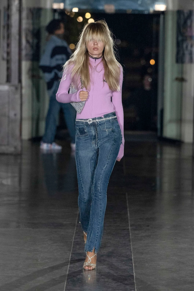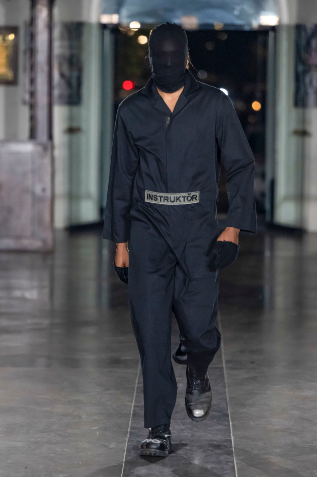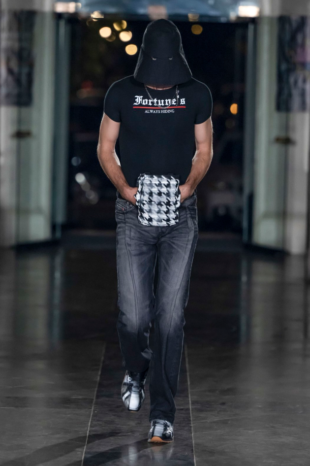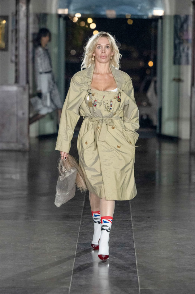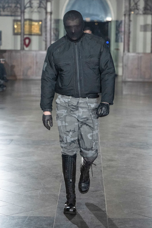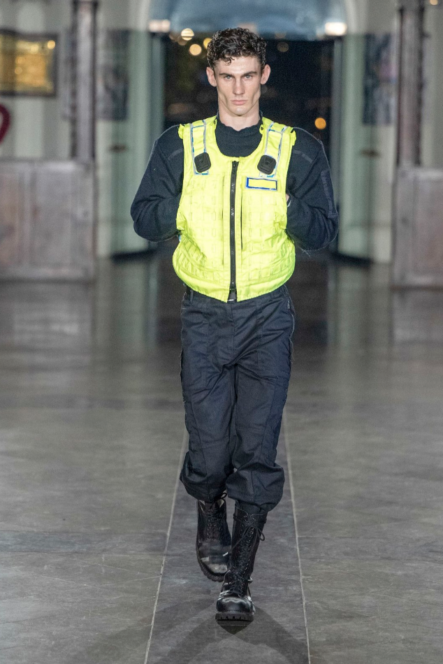 在整个系列中,袜类化身为防暴装备,紧身连衣裙呼应了中世纪的廓形,印花旗帜连衣裙则如同文化团结的旗帜飘扬。格纹、千鸟格、Reebok Classics 和 DMX 元素在致敬英伦根源的同时,也坚持探索着新的可能性。整场秀并非一首挽歌,而更像是一声凝聚的号召——提醒我们在充满不确定性的时代,文化记忆的碎片仍然可以被重塑成共同的身份认同。