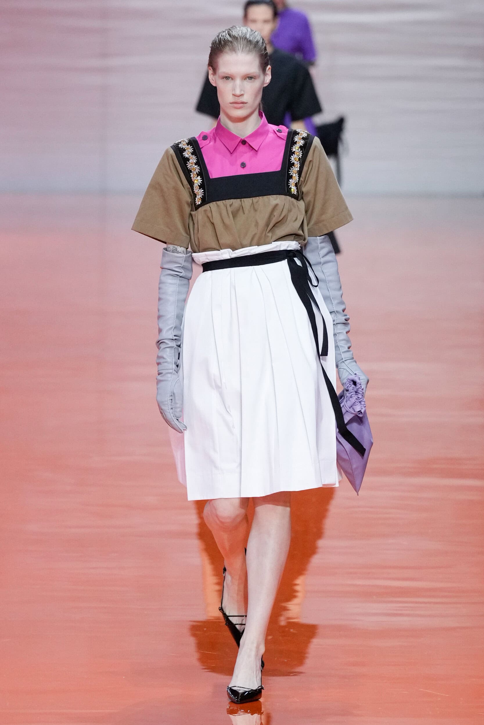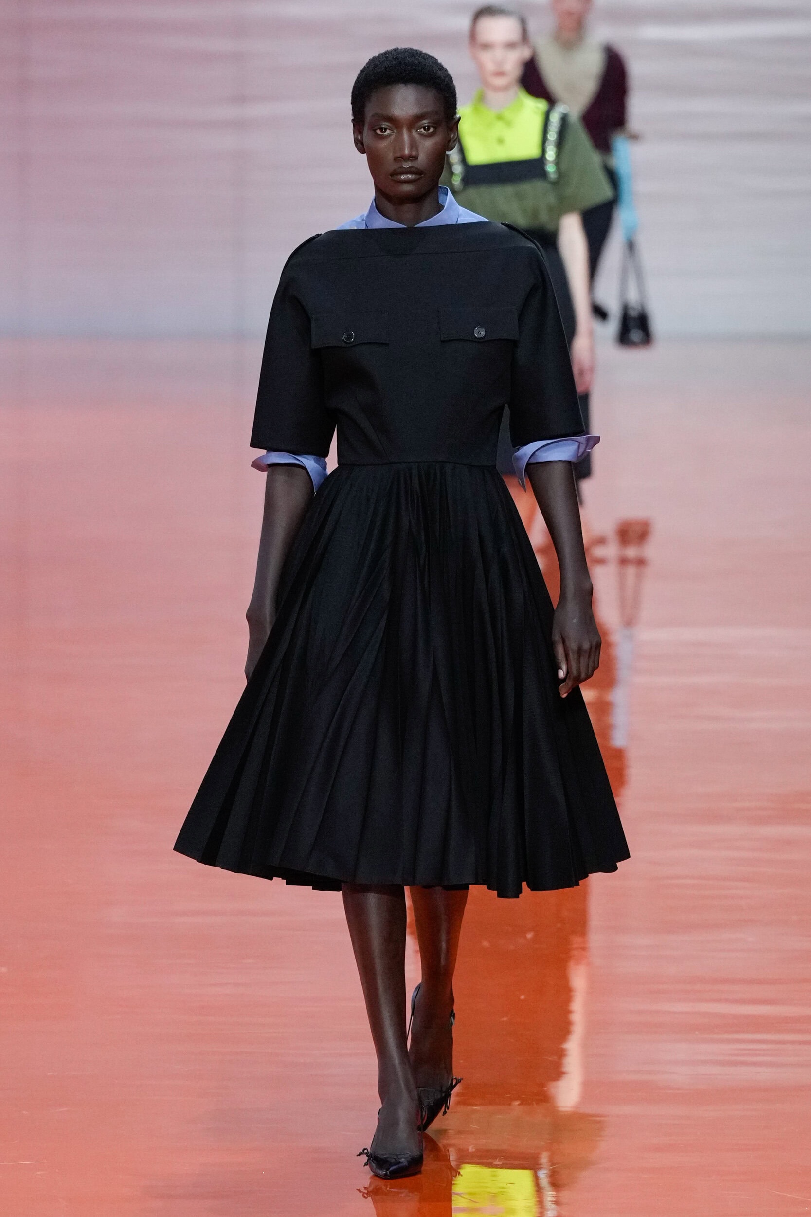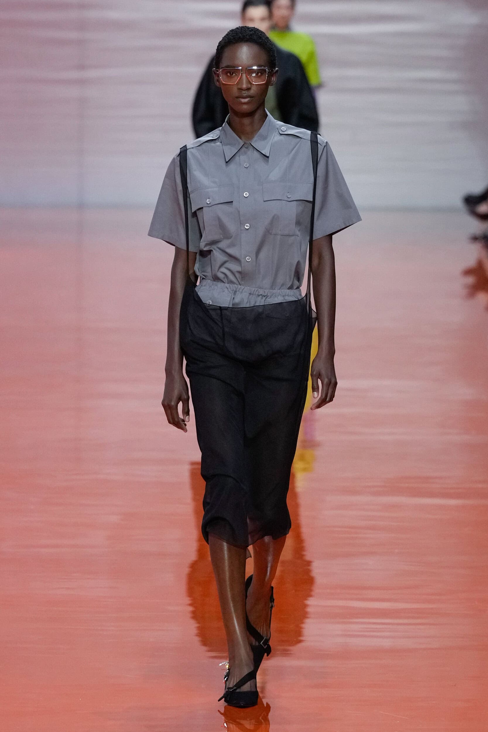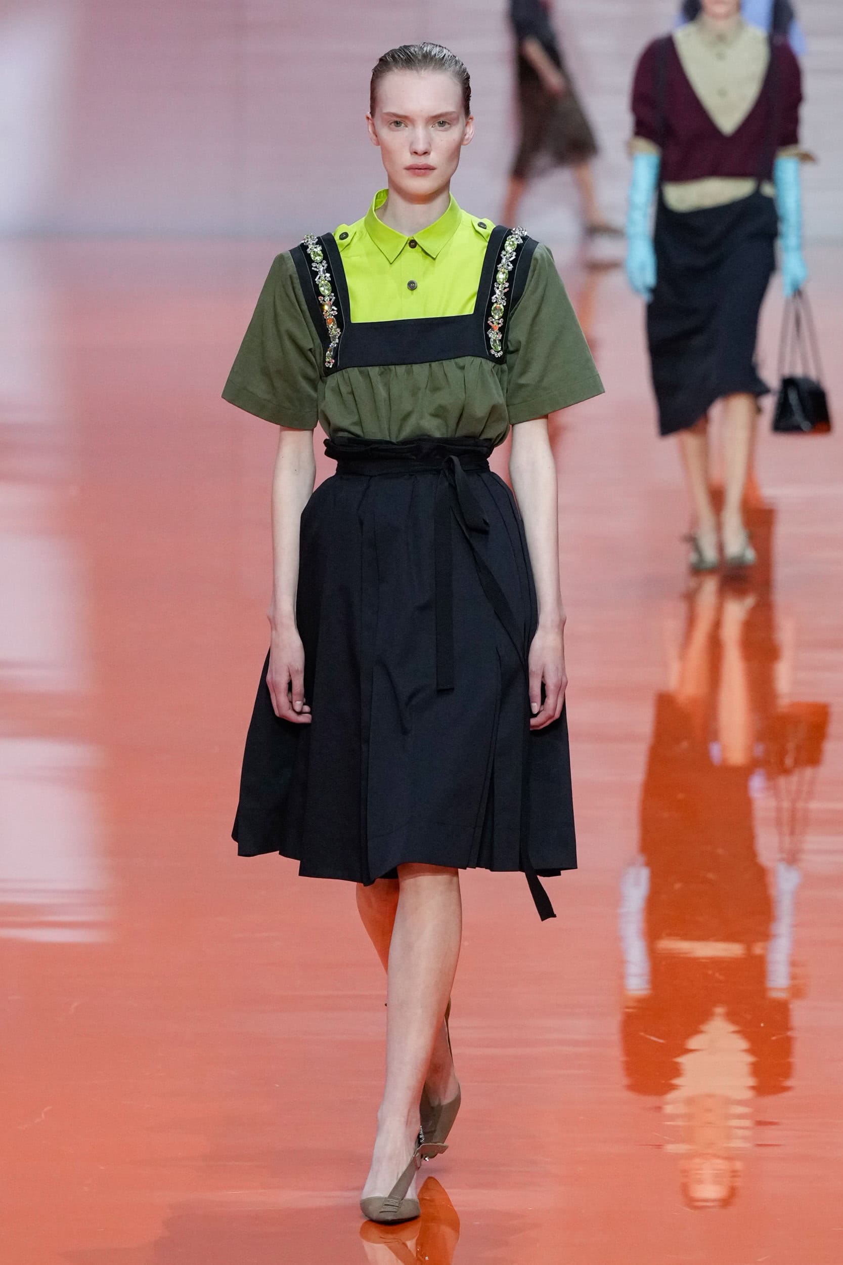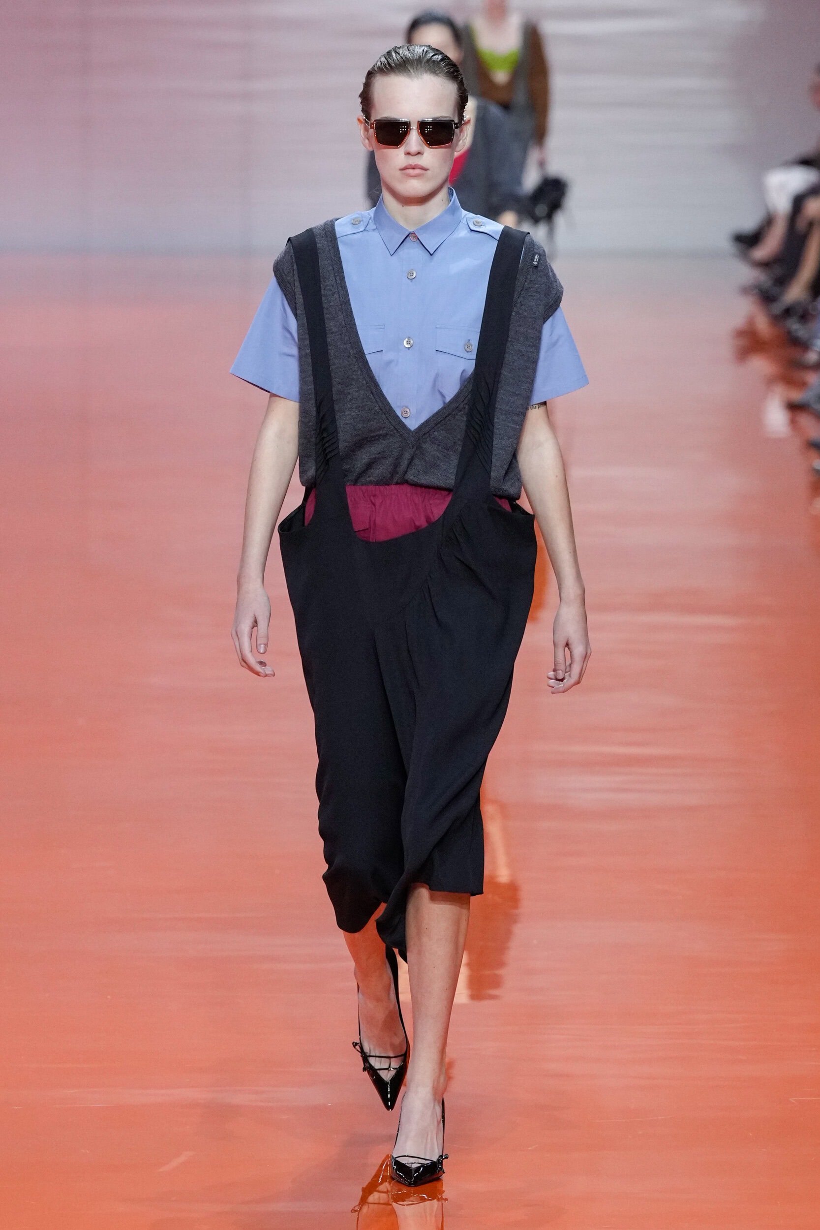 本季系列还强调了「软实力」的概念,赋予服装一种既能适应变化又能展示个性的力量。从颜色到剪裁,再到不拘一格的搭配,PRADA 希望通过这一季的设计鼓励女性通过时尚表达自我,享受身体与心态上的自由。这一系列不仅是对传统时尚规则的挑战,更是对当下社会混乱与压力的回应,提倡通过服装释放内在的力量与乐观。