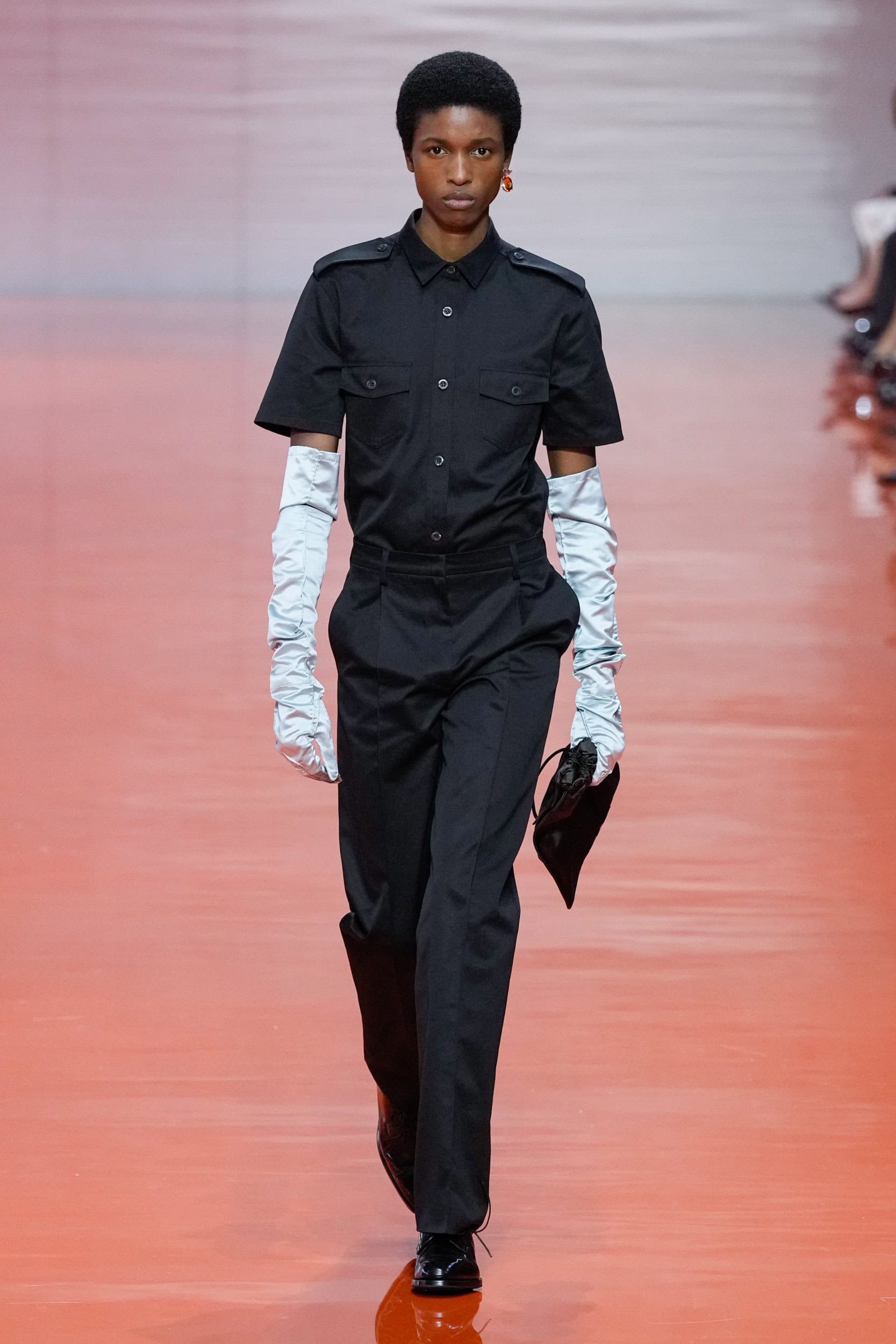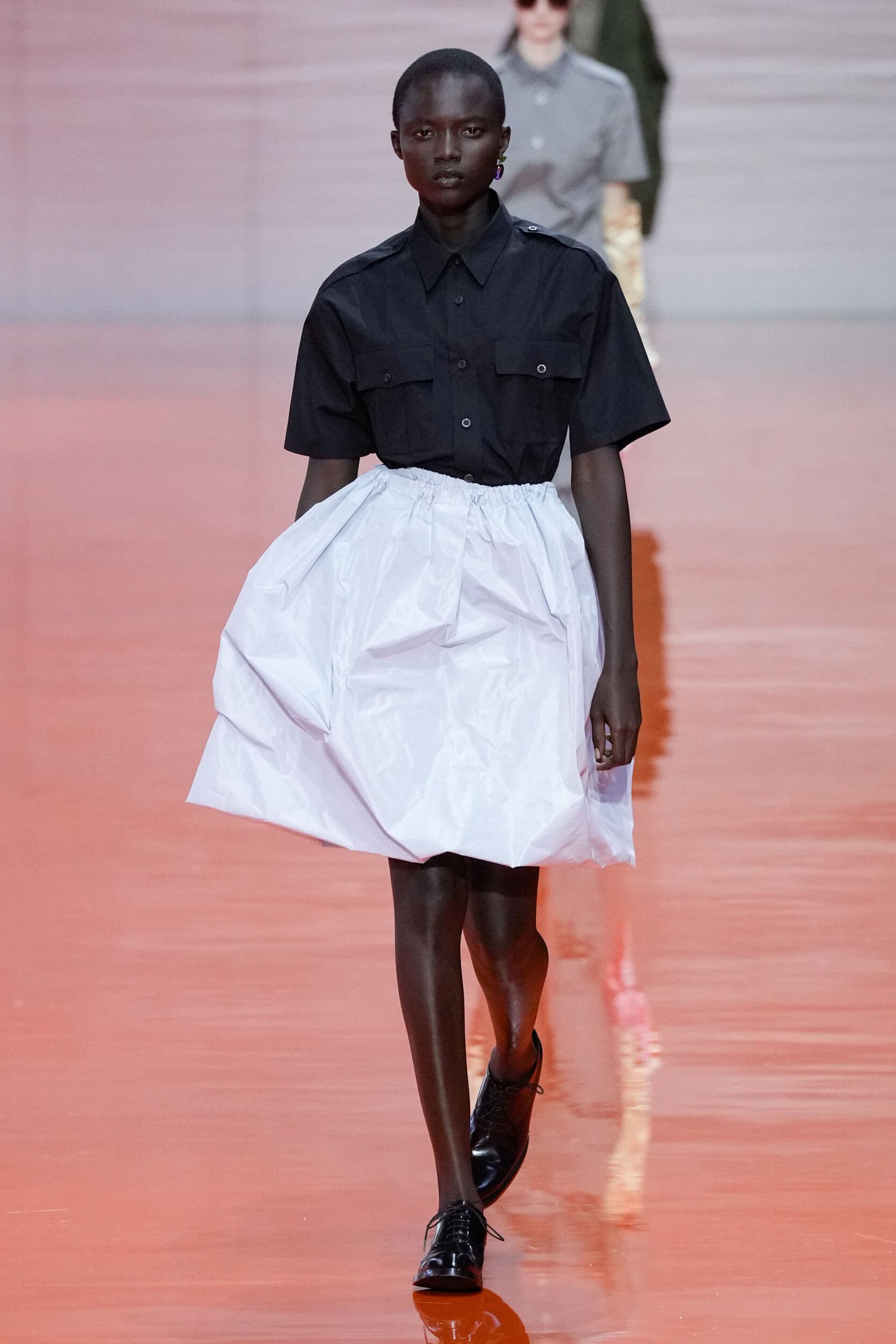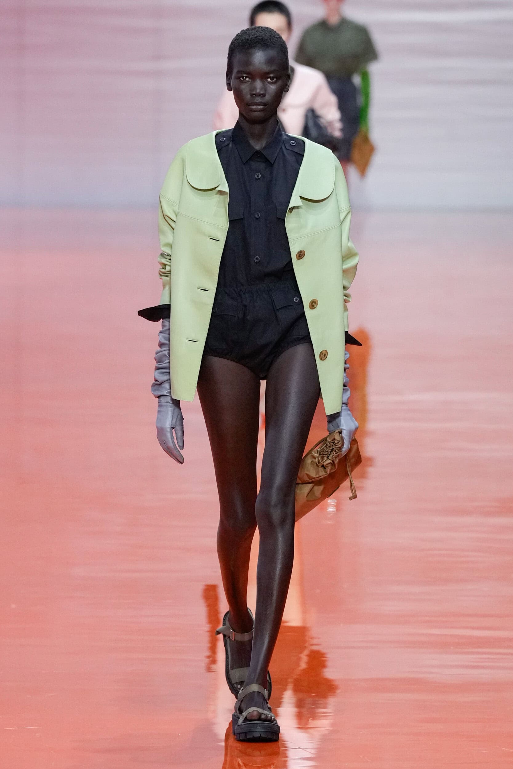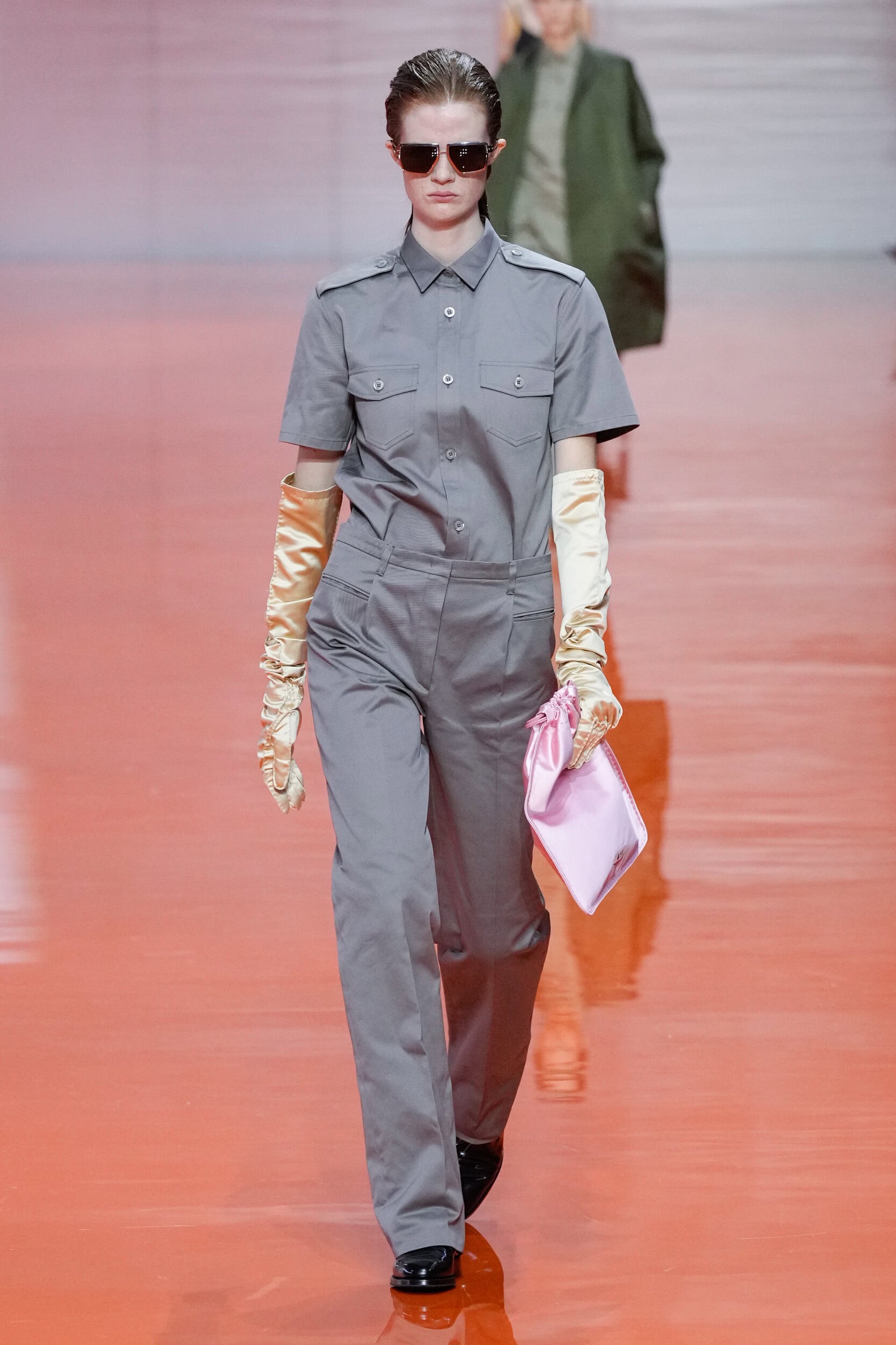 本季系列还强调了「软实力」的概念,赋予服装一种既能适应变化又能展示个性的力量。从颜色到剪裁,再到不拘一格的搭配,PRADA 希望通过这一季的设计鼓励女性通过时尚表达自我,享受身体与心态上的自由。这一系列不仅是对传统时尚规则的挑战,更是对当下社会混乱与压力的回应,提倡通过服装释放内在的力量与乐观。