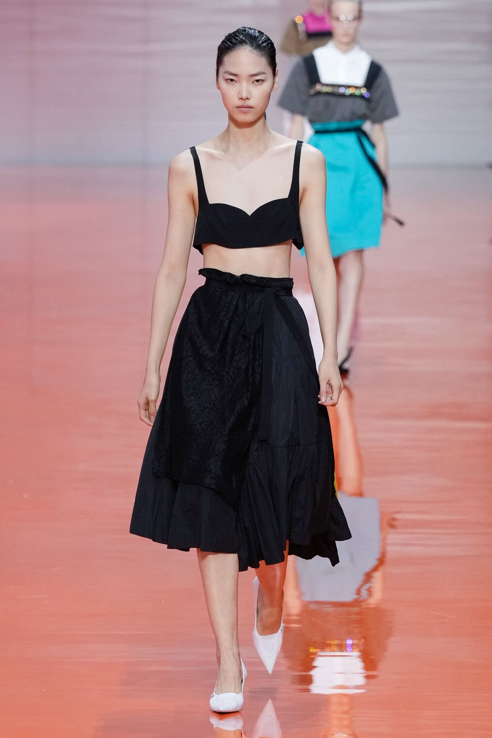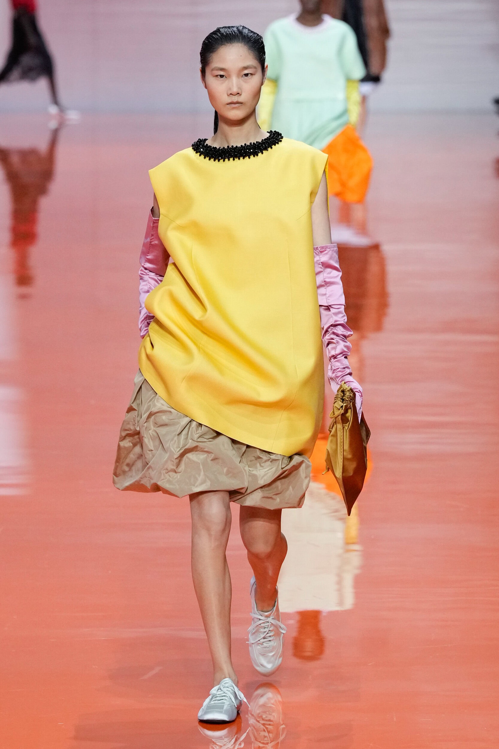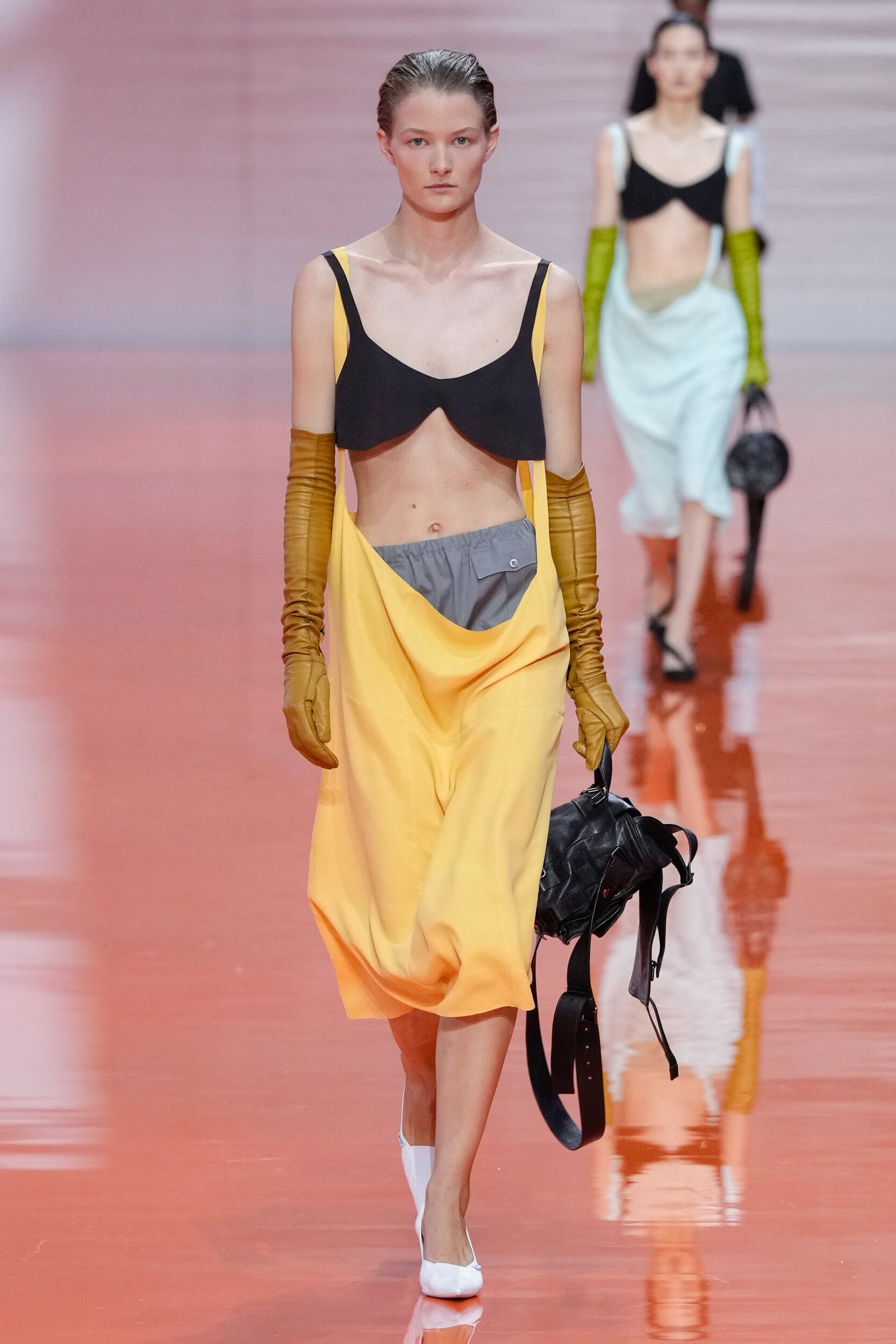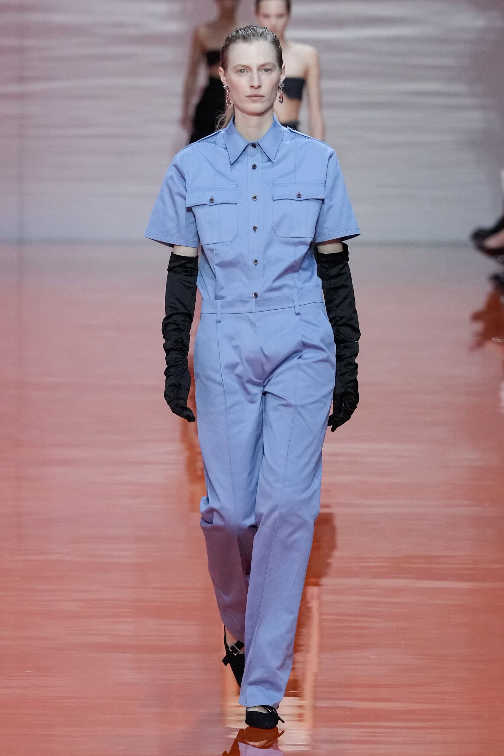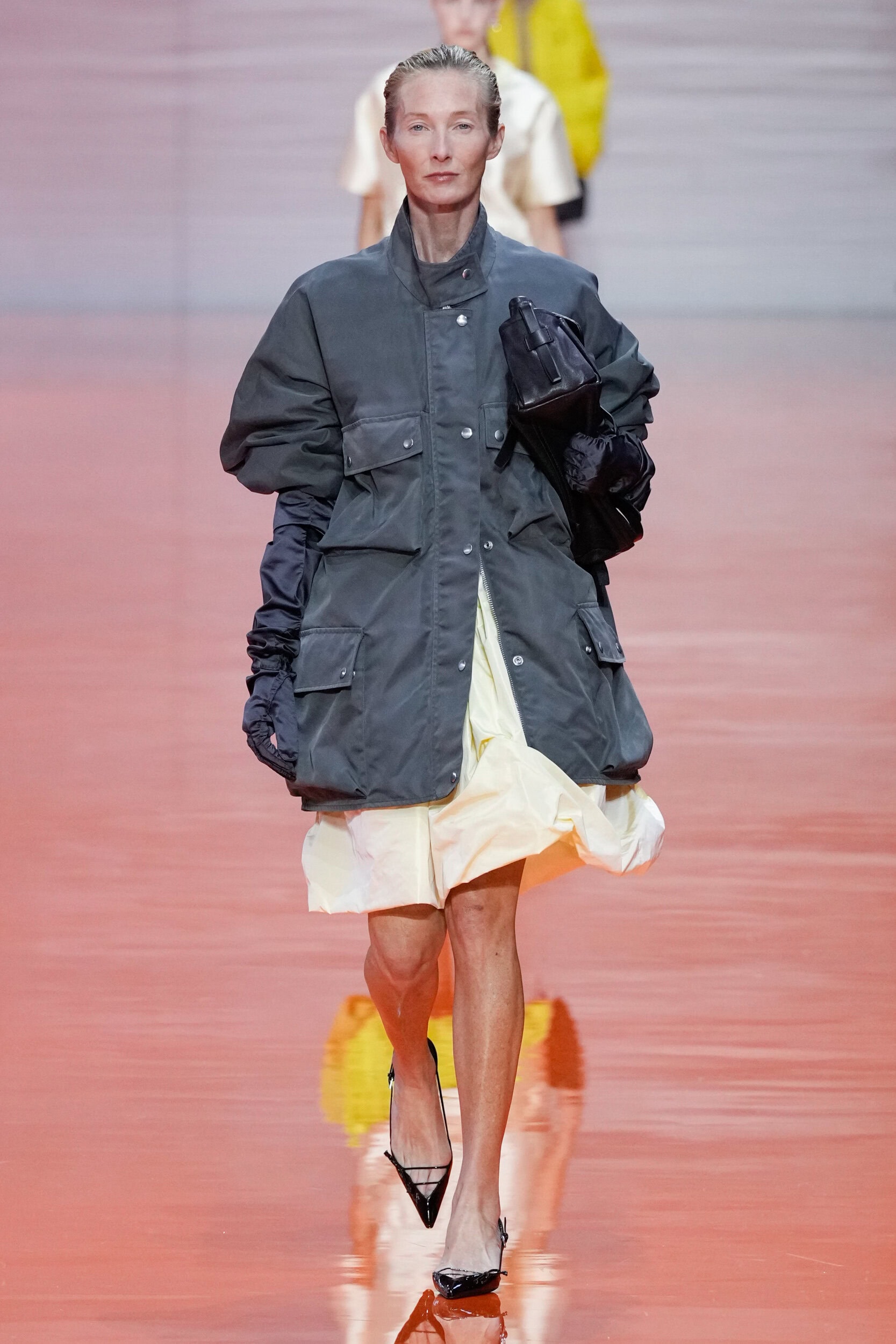 本季系列还强调了「软实力」的概念,赋予服装一种既能适应变化又能展示个性的力量。从颜色到剪裁,再到不拘一格的搭配,PRADA 希望通过这一季的设计鼓励女性通过时尚表达自我,享受身体与心态上的自由。这一系列不仅是对传统时尚规则的挑战,更是对当下社会混乱与压力的回应,提倡通过服装释放内在的力量与乐观。