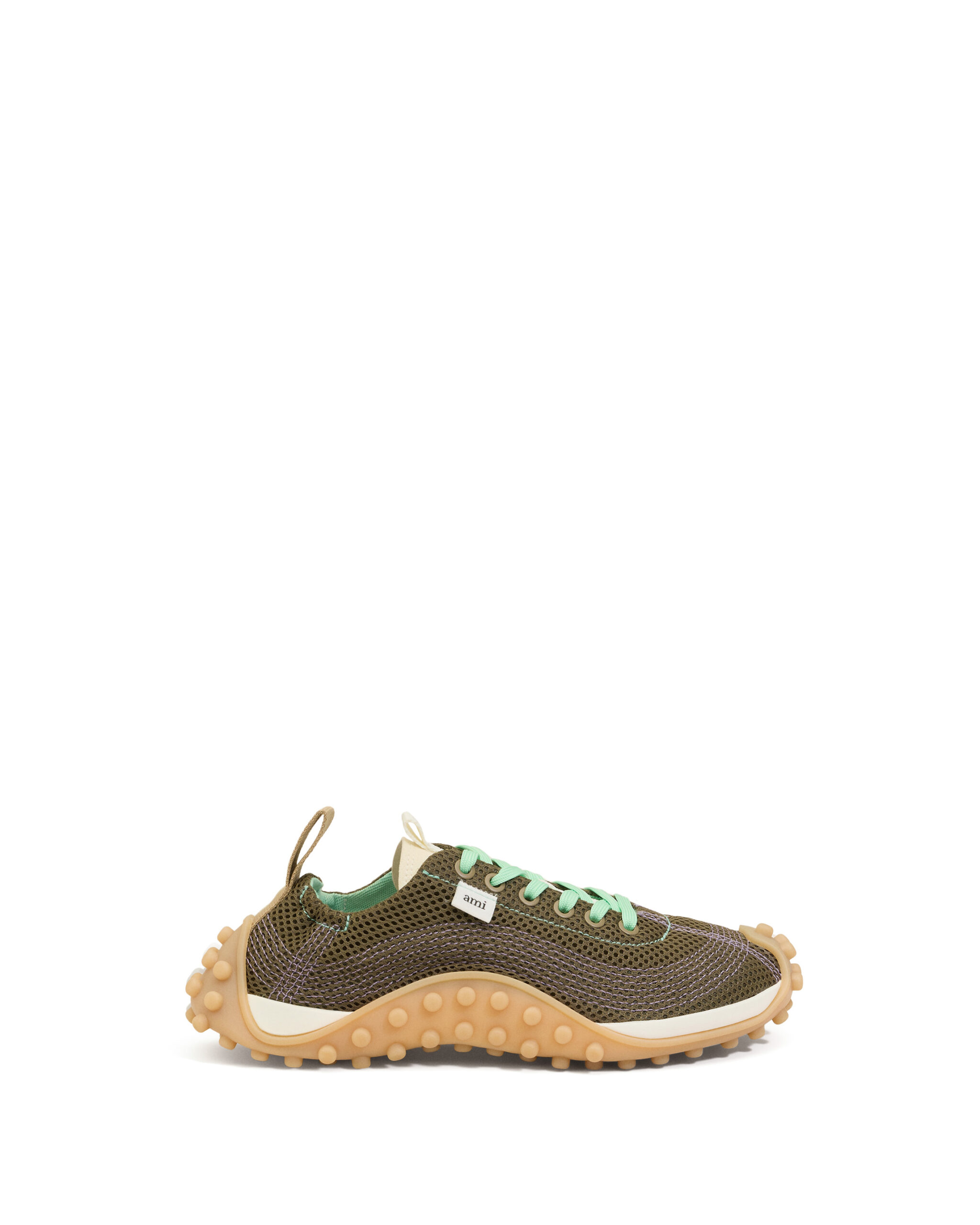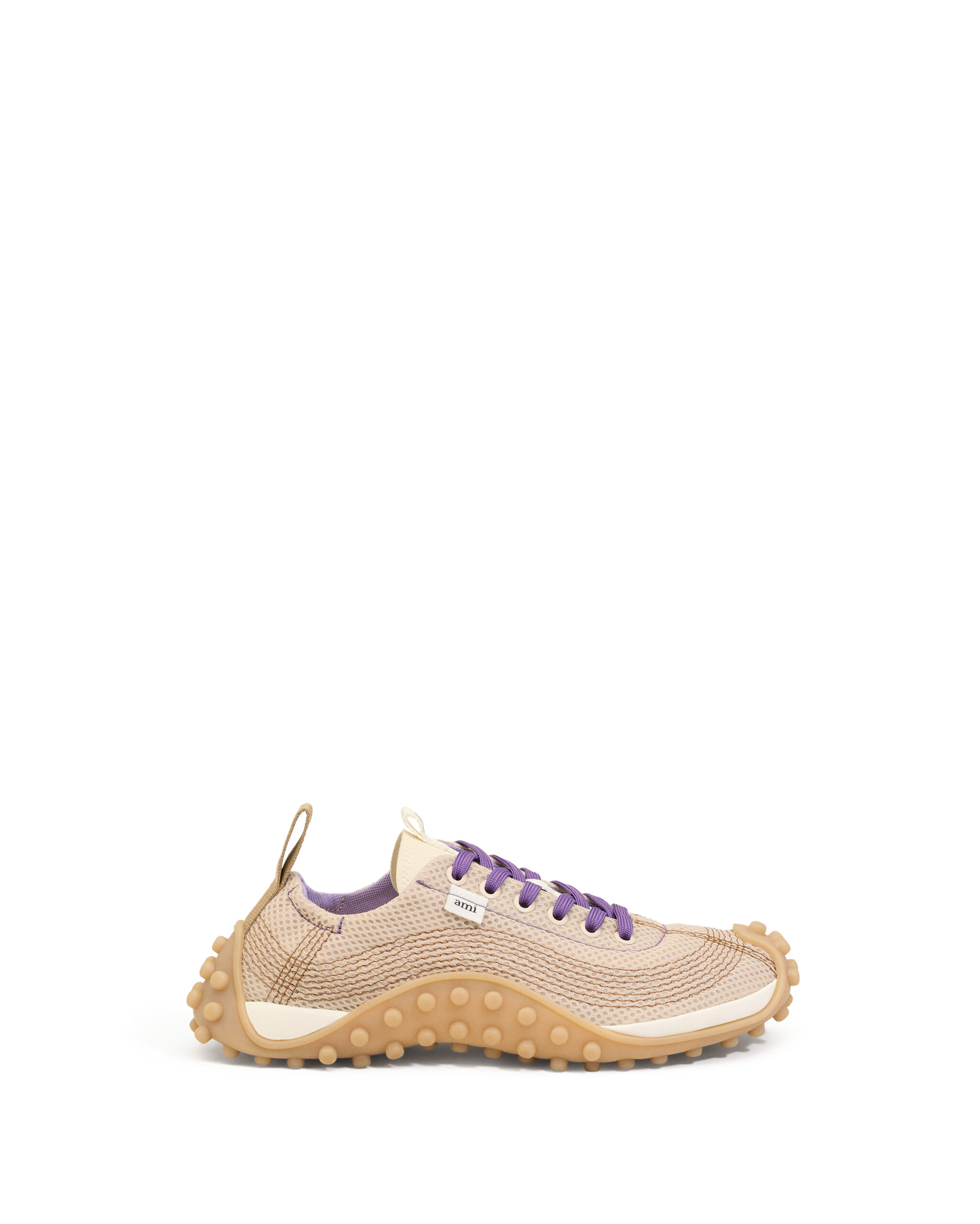 兼顾街头风格与全地形性能,Mirage 运动鞋将大胆美学与技术创新完美结合。智能材质打造符合人体工学的超软鞋面,鞋头、后跟及侧面包裹的钉状橡胶纹理与之相得益彰。标志性橡胶细节包括鞋舌上的 Ami de Cœur(心形皇冠字母 A)与后跟提带处的 Ami Paris logo。