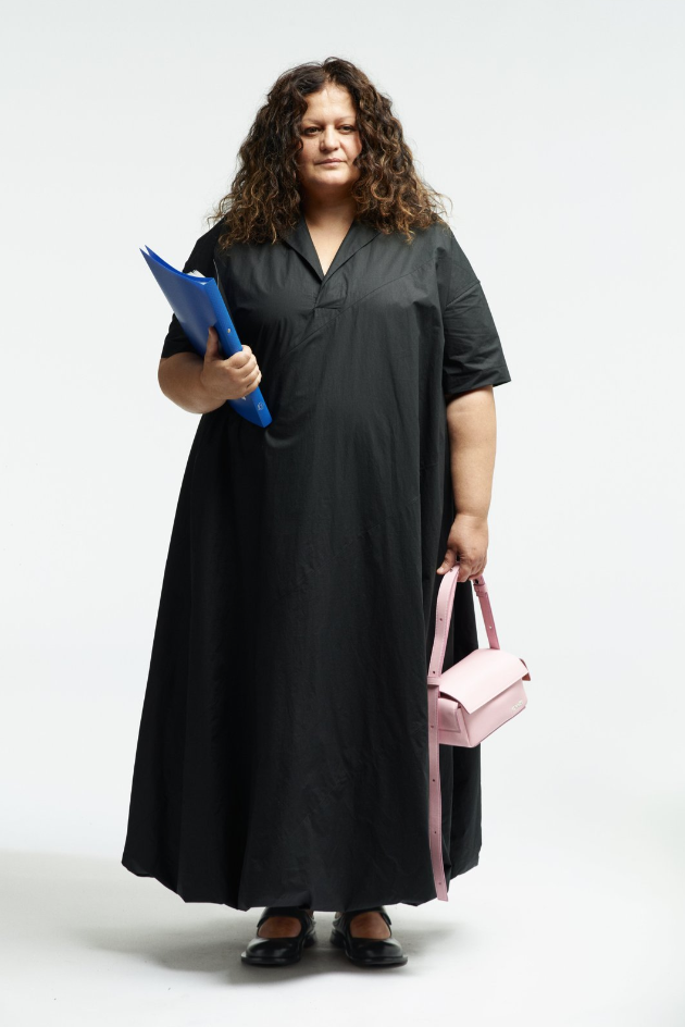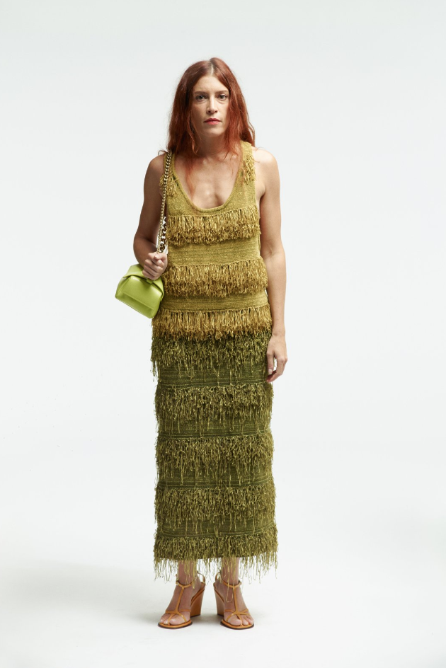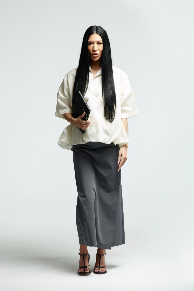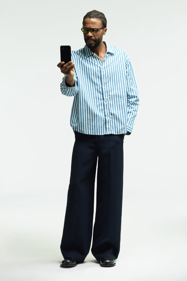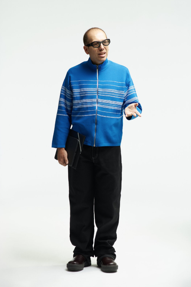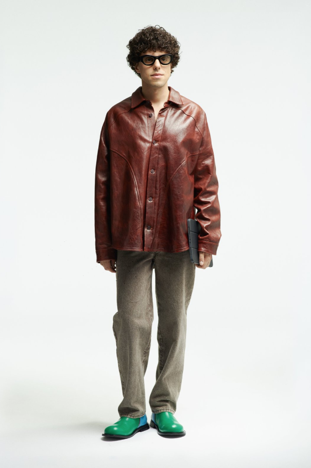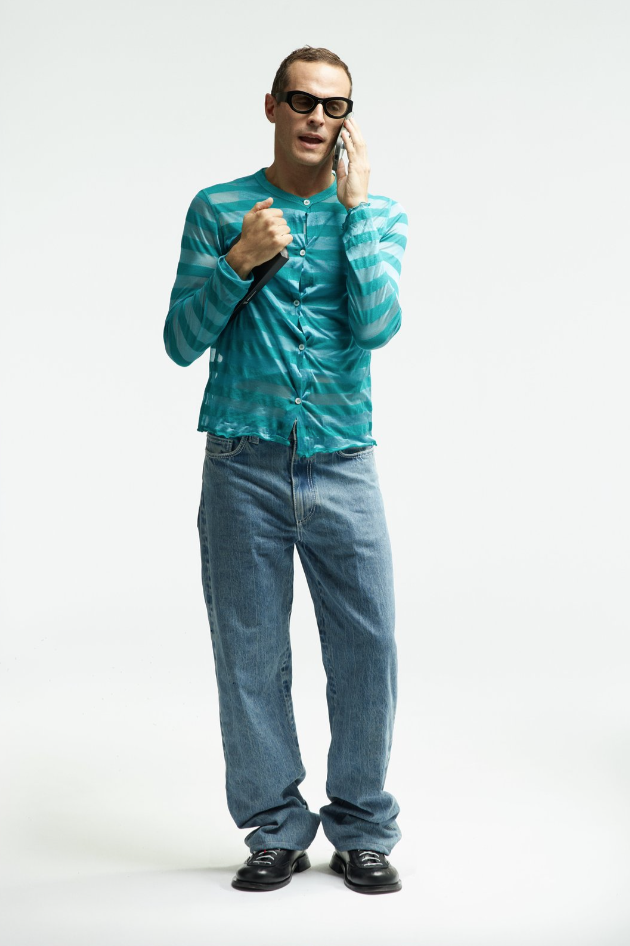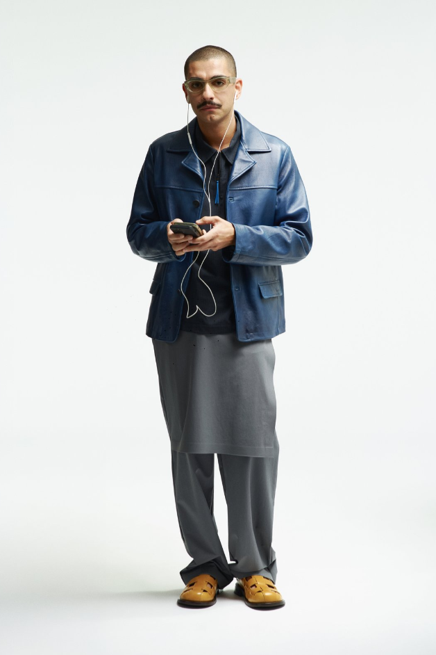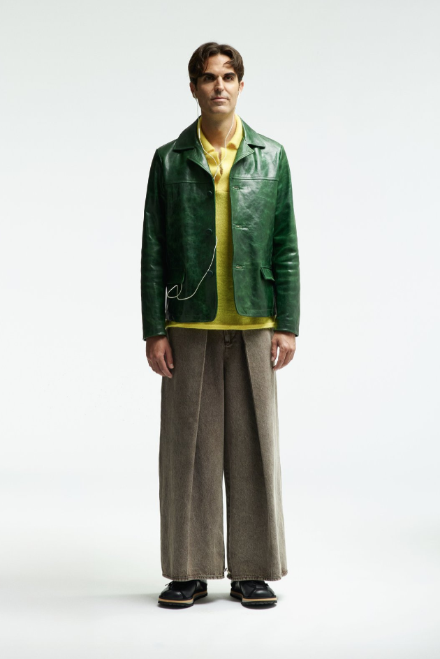第一件拍品是一个巨大的 SUNNEI 标志,它以惊人的 1.11 亿「斐济元」成交。第二批拍品是 SUNNEI 的创始人——他们被装在一个木箱里,像稀有收藏品一样被推进来,最终以 9500 万「斐济元」的价格成交。房间里 Cosplay 成电话接线员的 SUNNEI 团队成员们身着最新系列,现场就像往常一样欢笑雀跃。2026 春夏系列并非担任主角,而是作为演出的一部分存在,每位角色都以自身的独特身份诠释着该系列。SUNNEI 自成立以来的社区成员——佳士得意大利董事总经理 Cristiano De Lorenzo 也一同登台表演。