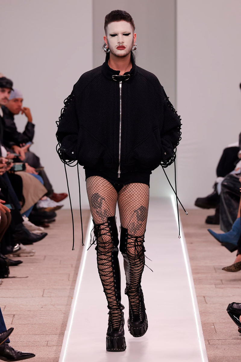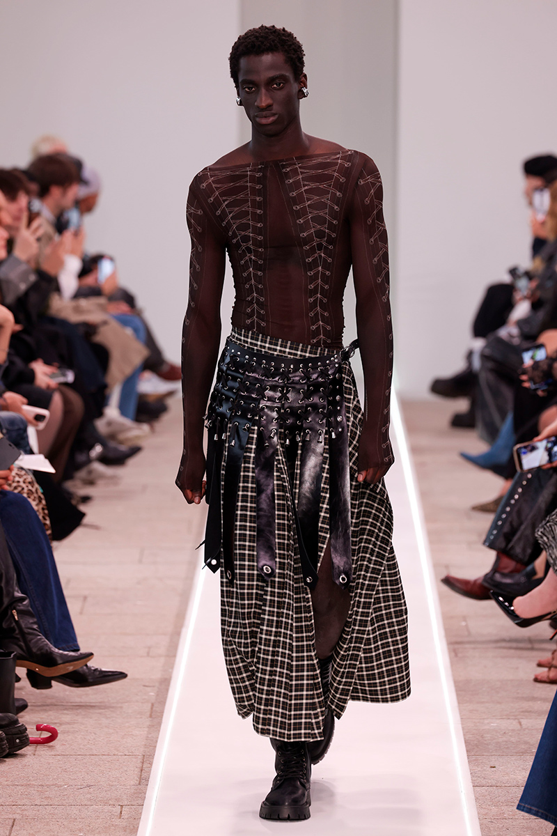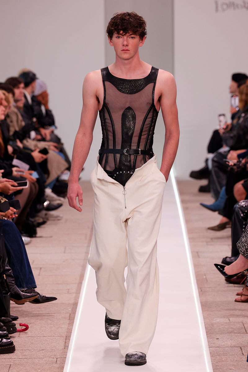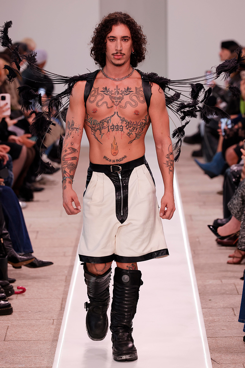 Lorenzo Seghezzi 2026 春夏系列「Interlude」取材于米兰的夜店世界——一个流动、动荡的酷儿空间塑造了这位设计师。在 Toilet、Plastic 和 La Boum 等知名 LGBT 夜店,他找到了爱、友谊和一种美学。正是在这里,他发现了变装和滑稽戏的力量,这些艺术颠覆了常规,将个人挣扎转化为舞台上的表演。
