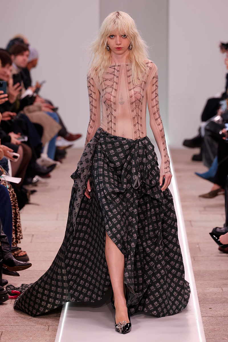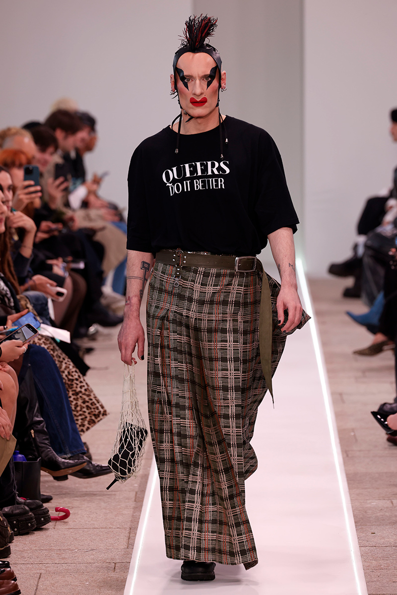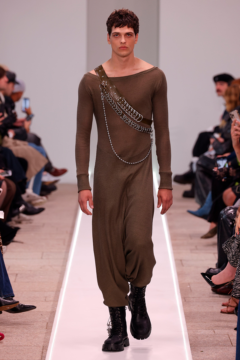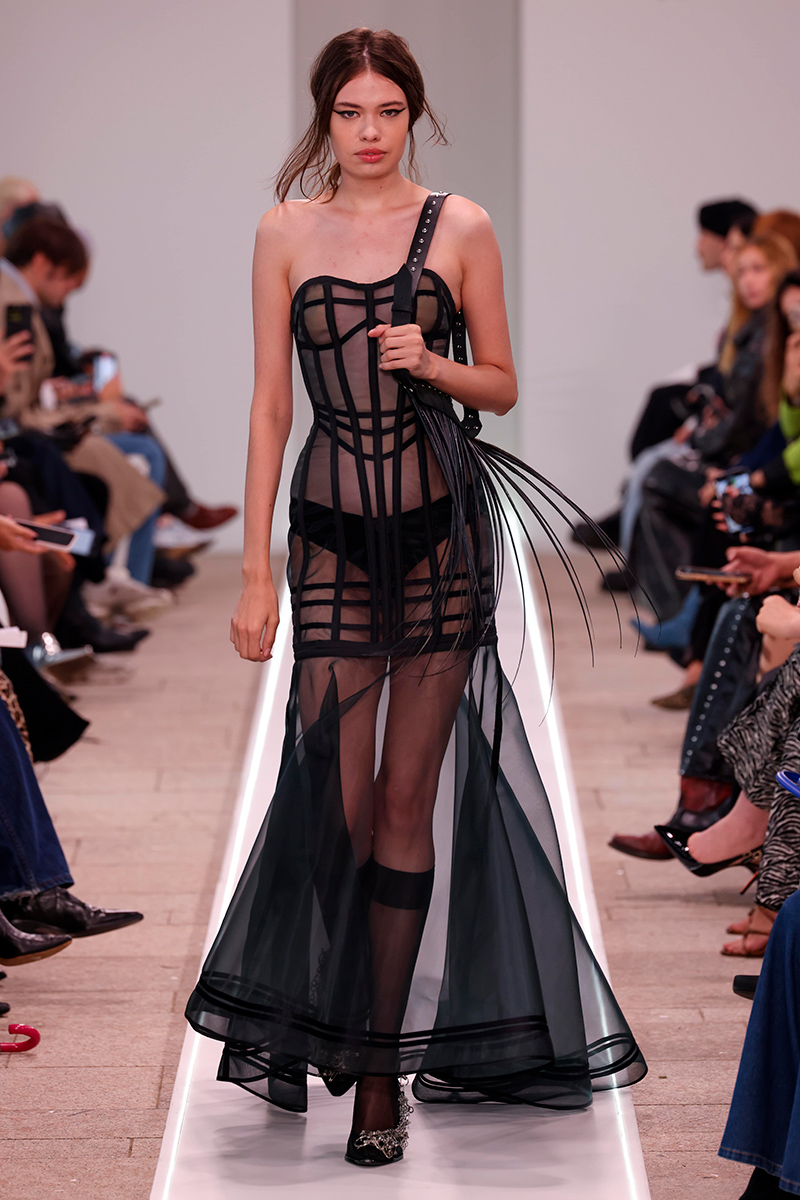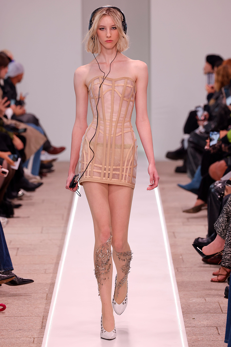 Lorenzo Seghezzi 2026 春夏系列「Interlude」取材于米兰的夜店世界——一个流动、动荡的酷儿空间塑造了这位设计师。在 Toilet、Plastic 和 La Boum 等知名 LGBT 夜店,他找到了爱、友谊和一种美学。正是在这里,他发现了变装和滑稽戏的力量,这些艺术颠覆了常规,将个人挣扎转化为舞台上的表演。