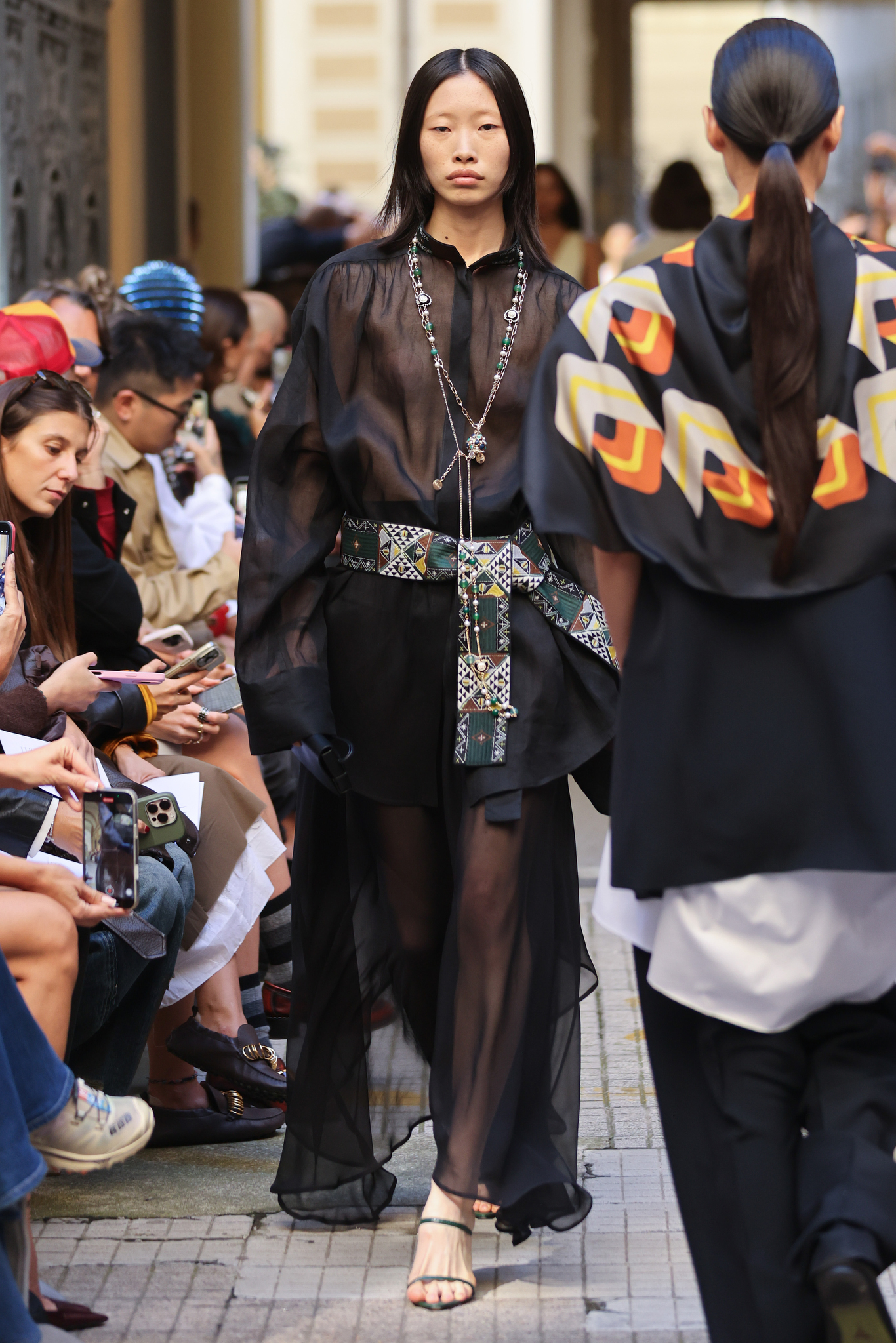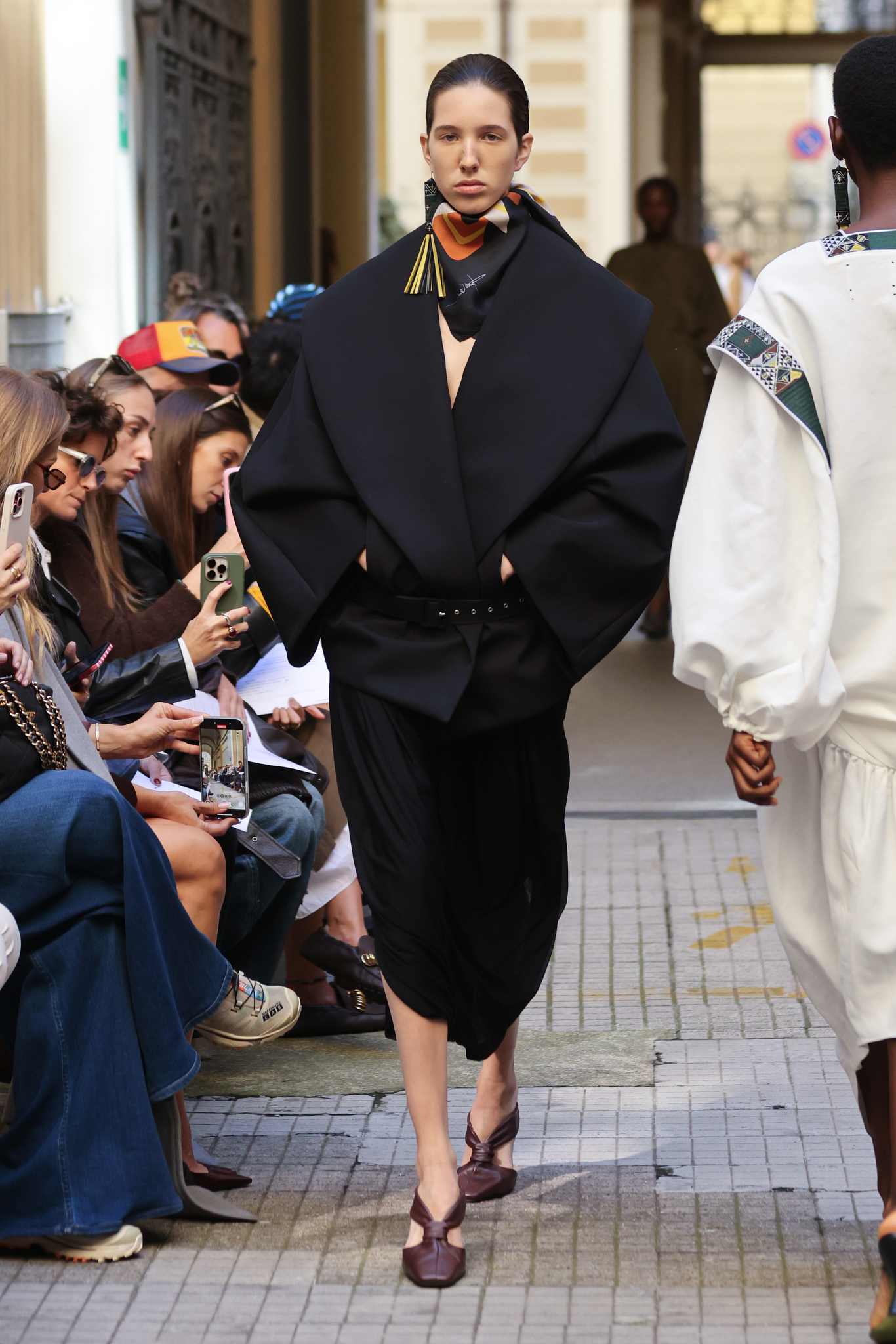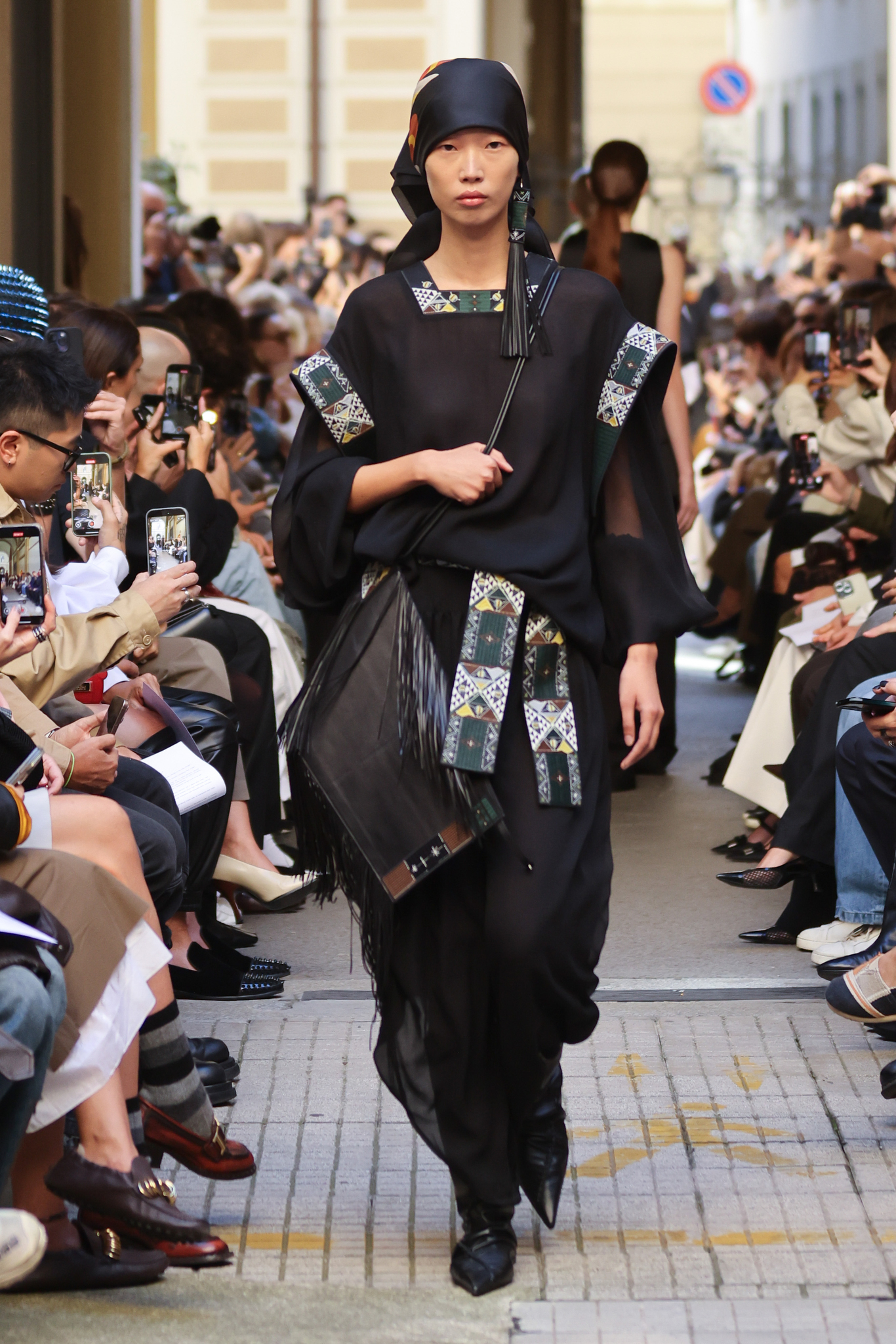 Calcaterra 2026 春季成衣系列呈现了一种对摩洛哥马拉喀什之行的深刻回应。设计师 Daniele Calcaterra 以亲身经历为灵感,将来自阿马齐(Amazigh)或柏柏尔部落的文化符号、骆驼和沙漠的景象与情感转化为一场充满优雅的视觉盛宴。