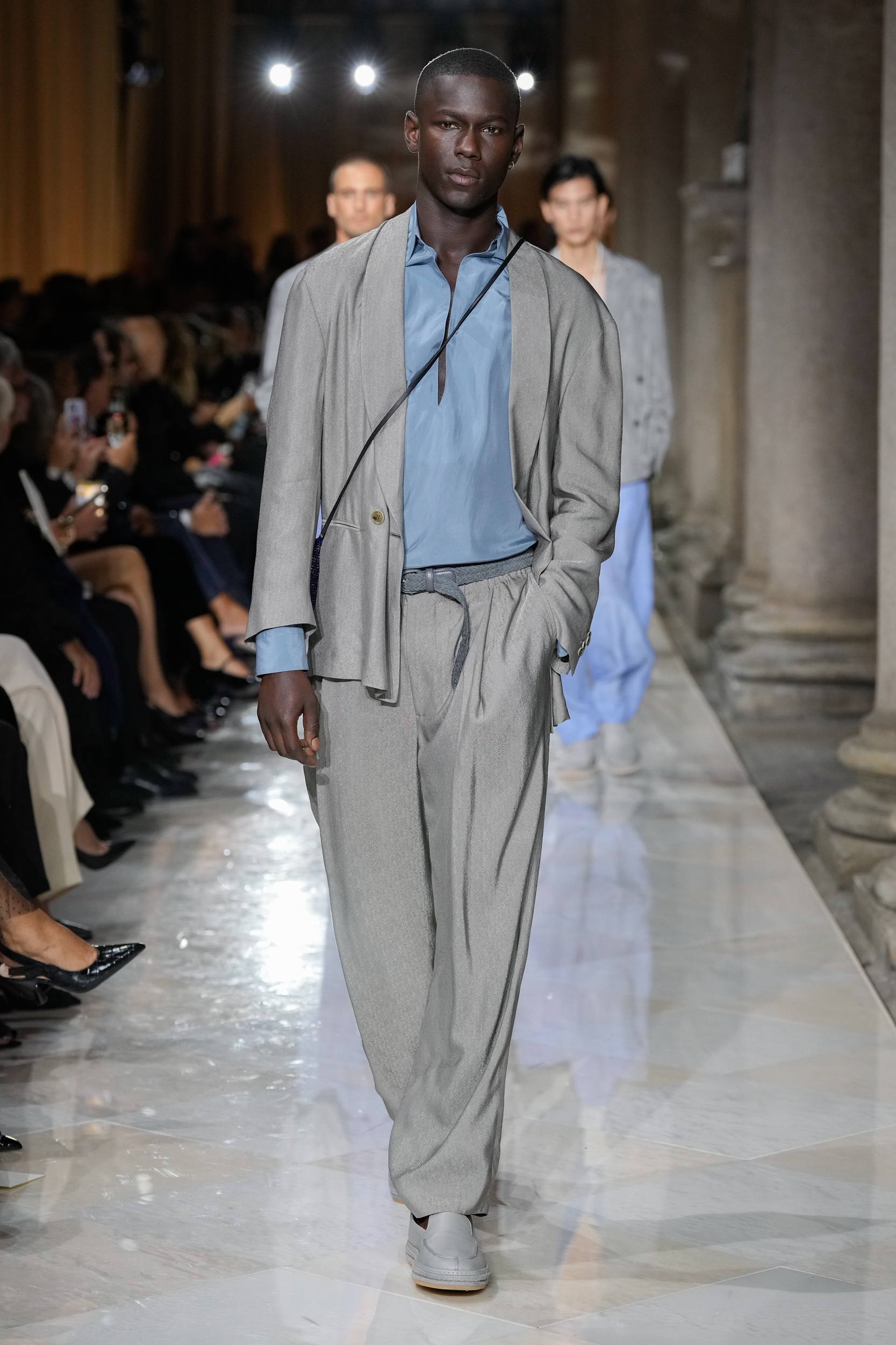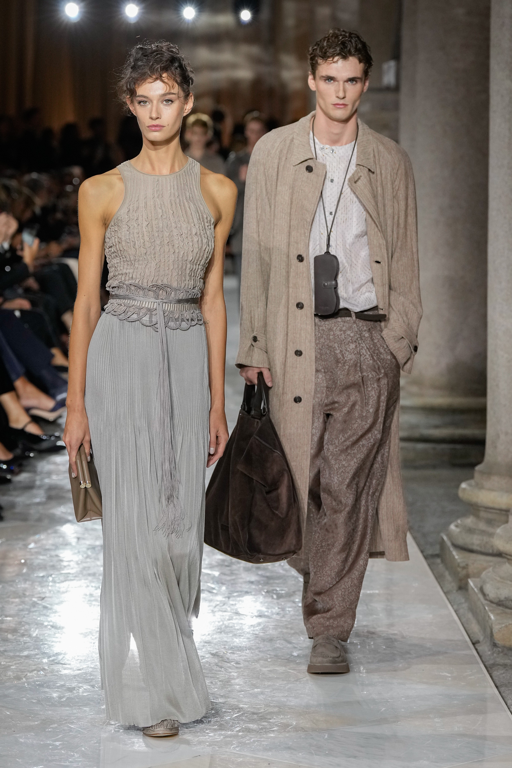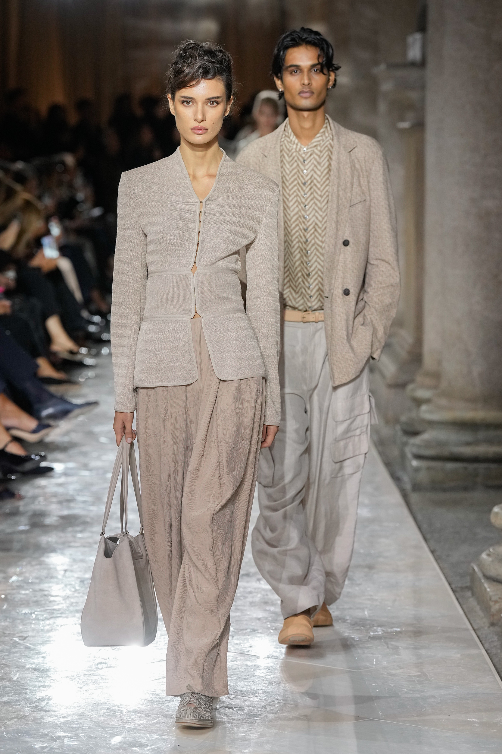 在 Giorgio Armani 的世界里,有两座意义非凡的城市:米兰,这座象征现代与实践之都;以及潘泰莱里亚岛——这座位于欧非边界的地中海岛屿,满是异域风情与自然野趣。此次系列是 Giorgio Armani 先生生前亲自操刀的收官之作,从某种意义上而言,它是其风格理念的诠释,亦是一个时代的落幕与崭新篇章的开启。