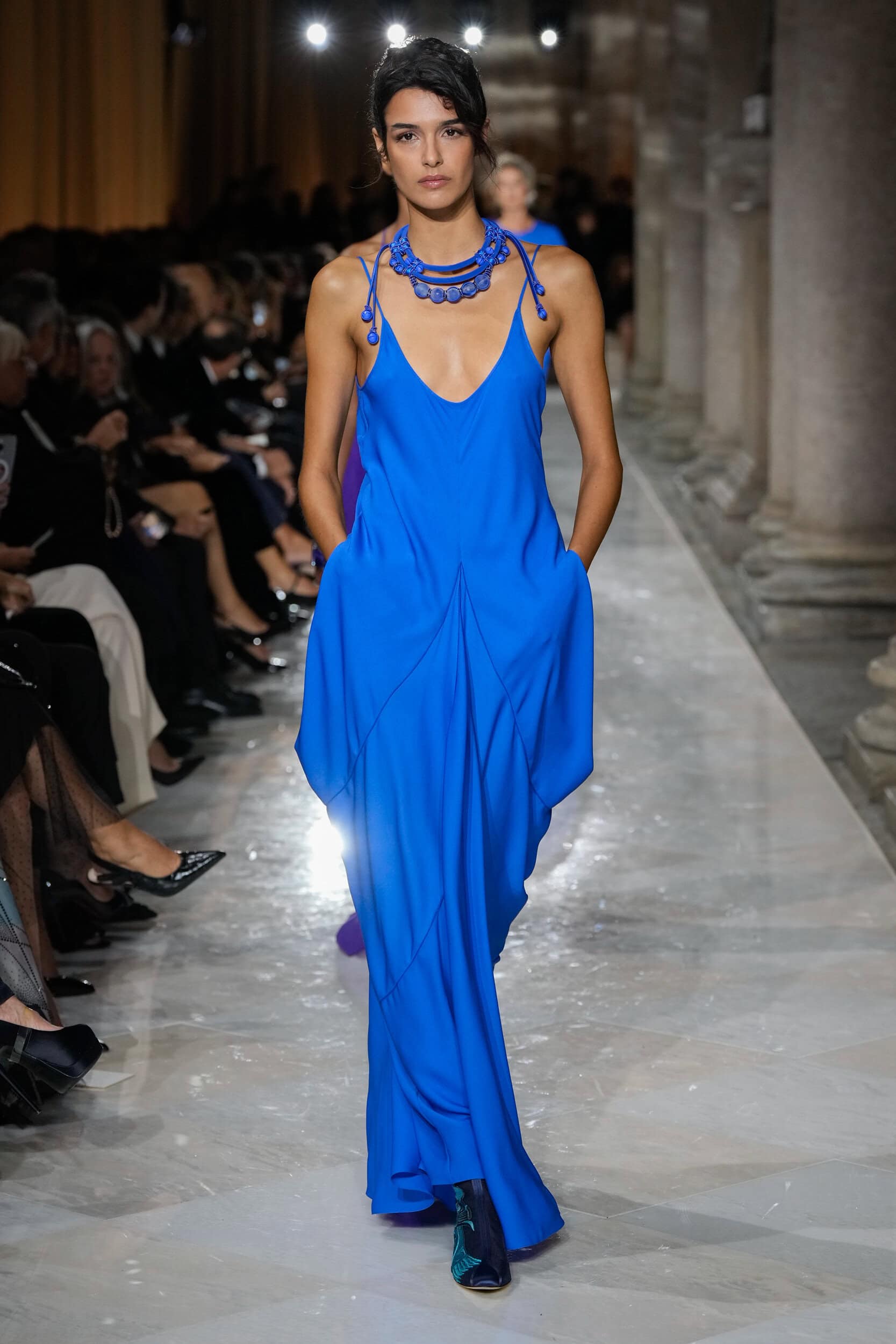 系列选址于布雷拉画廊发布,这片始终承载着其生活与创作的热土,同时又将视野延伸至潘泰莱里亚岛—那片火山岩与深色田野交错、被无垠蔚蓝环抱的秘境。每一处设计都仿佛被赋予了流动的韵律与轻盈的质感,宛若随时准备与岛上的微风共舞;每一处细节都在诠释着 Armani 先生的设计美学,描绘服装与人和谐共生。无论服装剪裁利落,还是精致柔美,面料流淌着优雅,廓形延伸着诗意。光、大地与海洋的故事通过色彩的变化娓娓道来,从自然中性色调到深邃夜幕蓝调,再到流光溢彩的稀有色调,激发强烈的感染力。