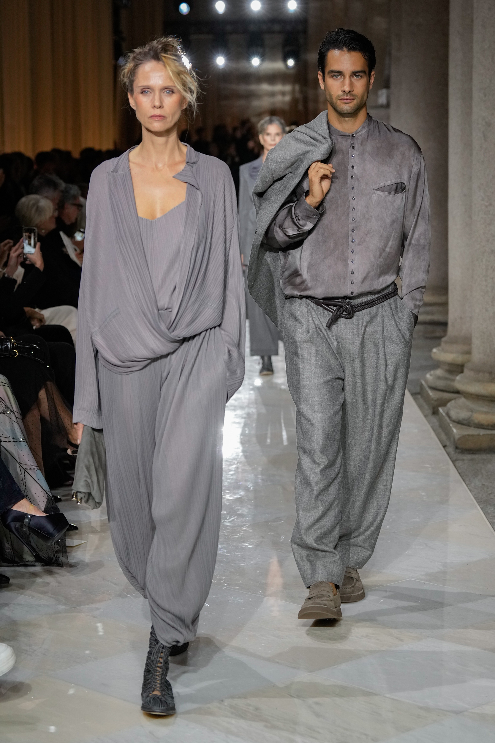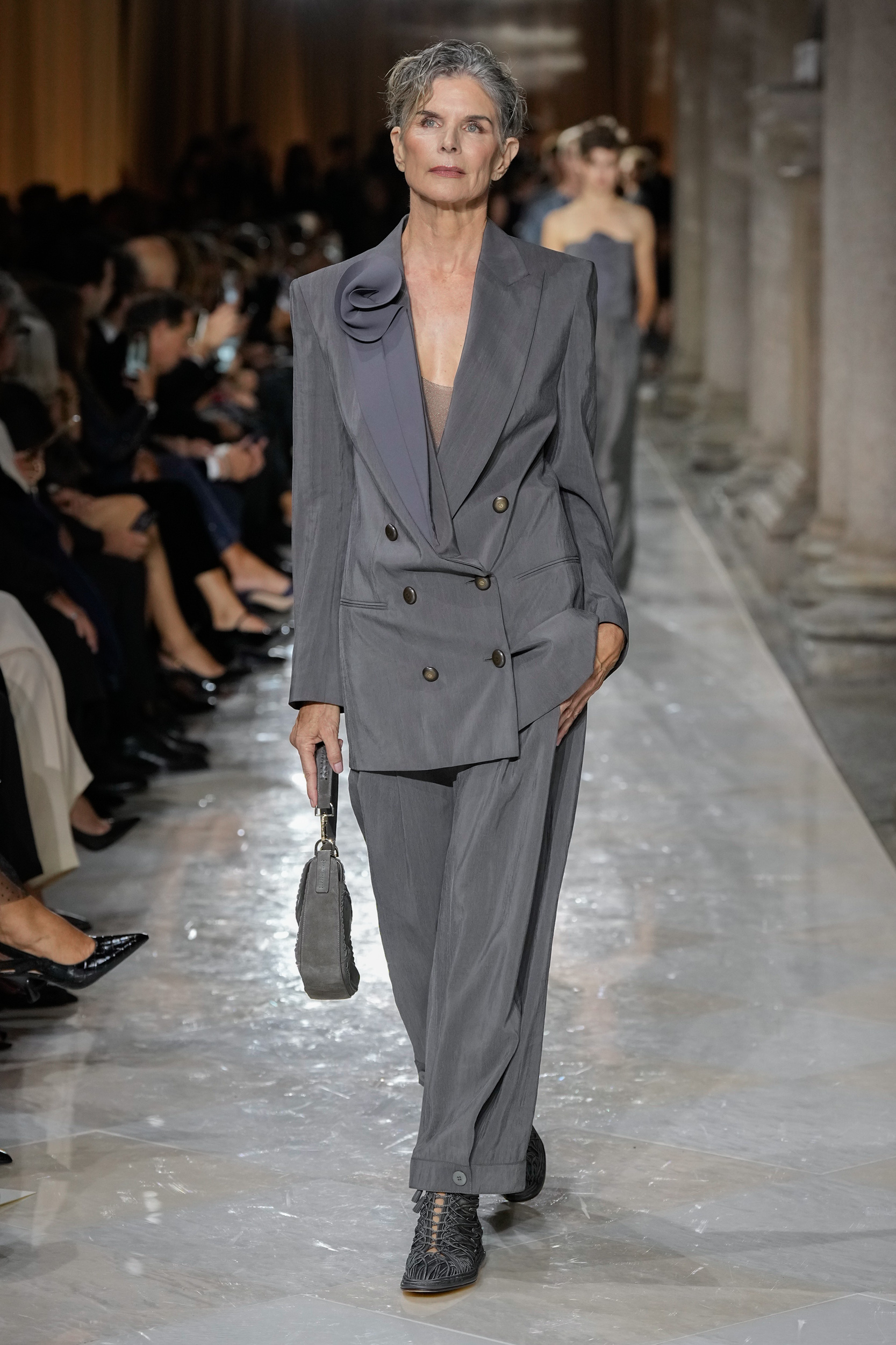 为致敬其独树一帜的创作生涯与令人铭记的美学风格,本次秀场亦特邀与 Giorgio Armani 历史渊源深厚的多位传奇模特同台亮相,她们即其心中女性形象精髓的完美诠释。
