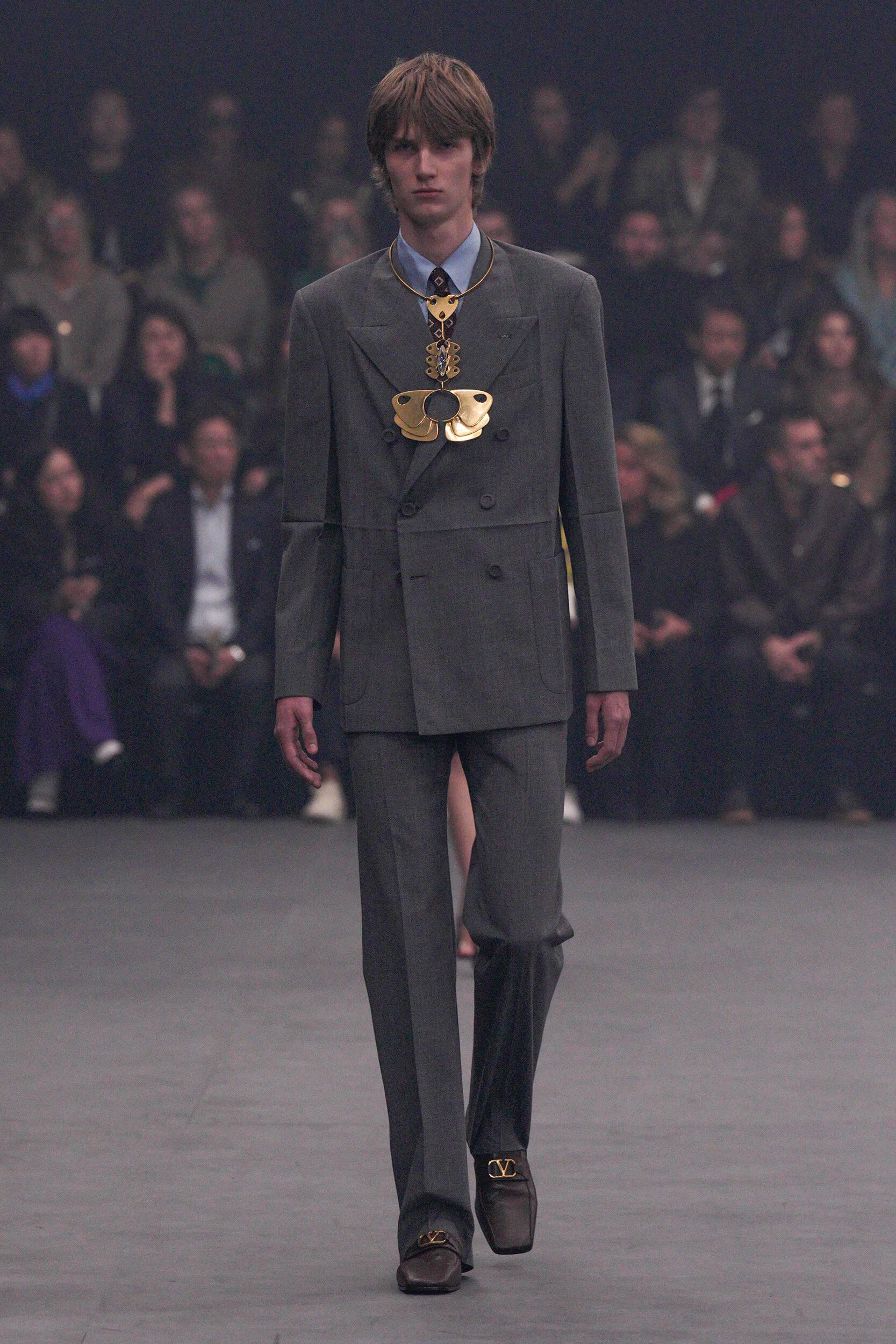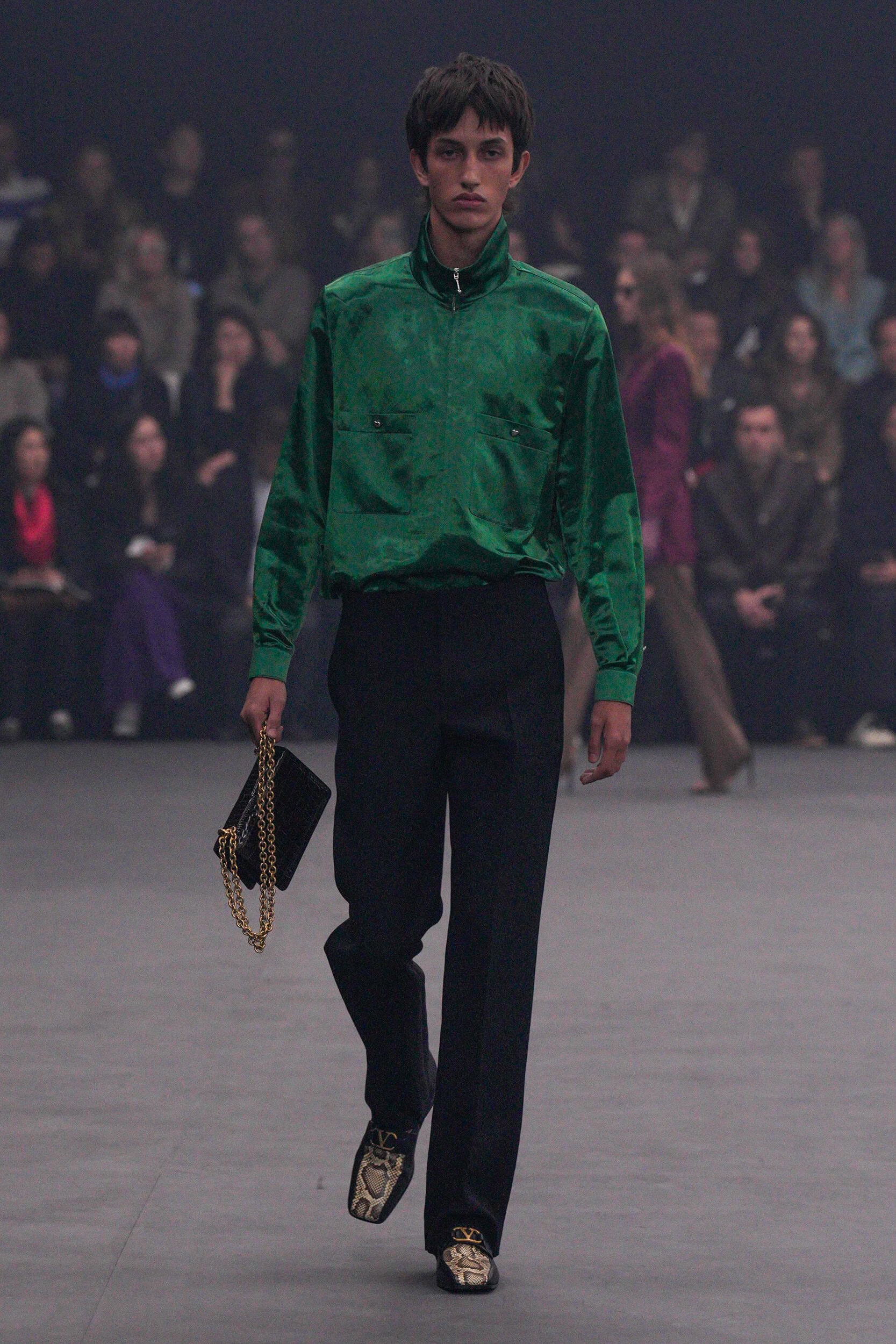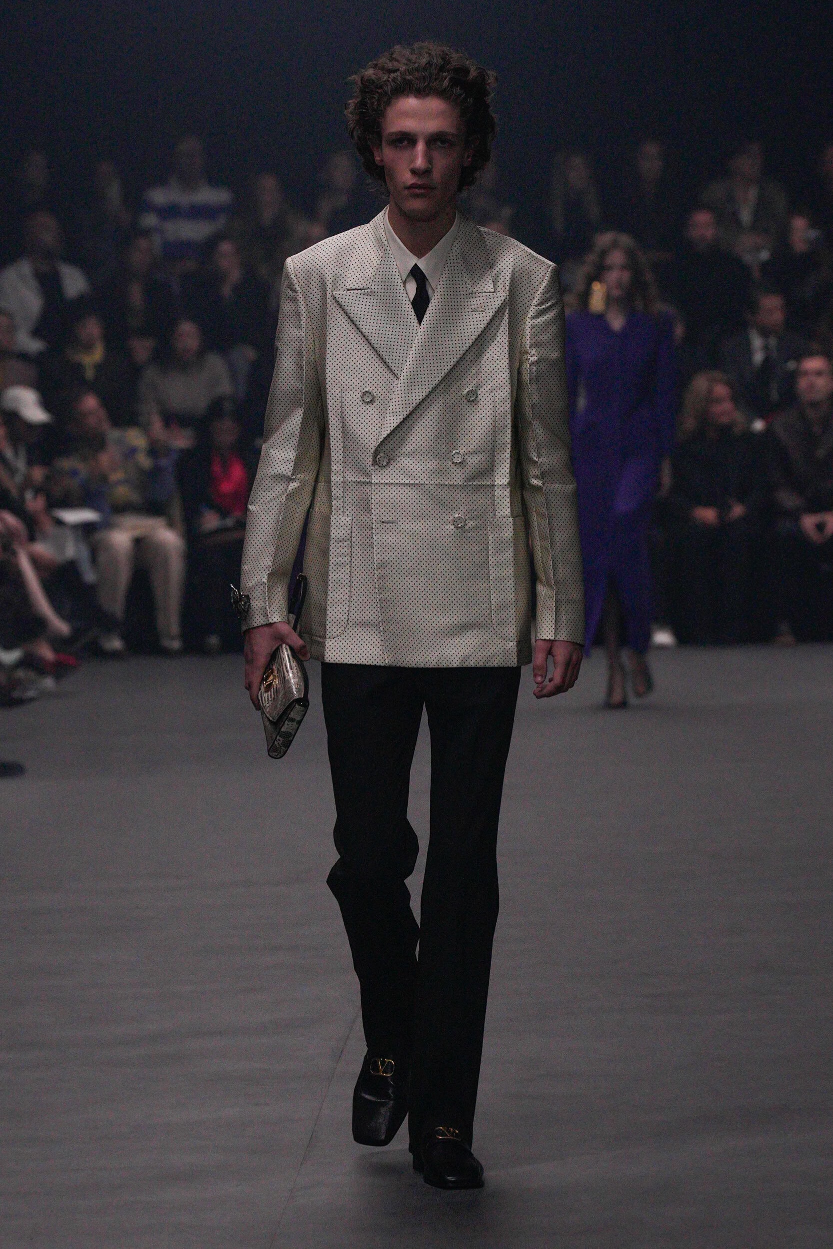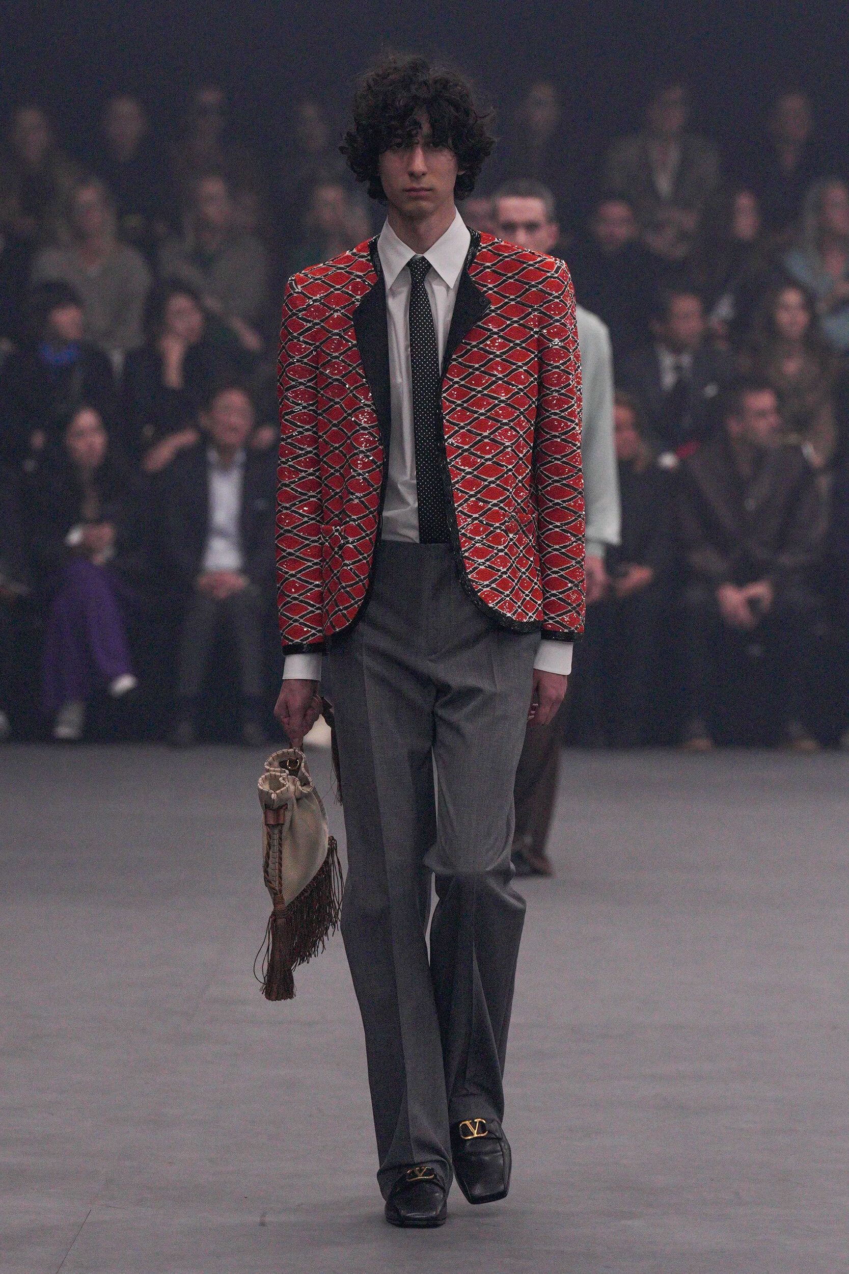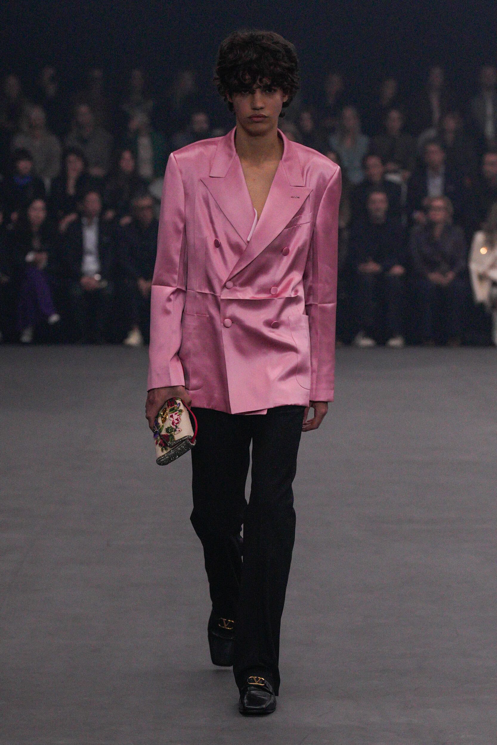 两季之后,Alessandro Michele 的 VALENTINO 已不再只是一场美学实验,而是演变为一种哲学对话。继首次华丽且探索性的发布后,本季的作品带来了更加内敛的坚定信念,表明 Alessandro Michele 已意识到「重复」会招致怀疑。于是,他选择走向更为清晰的方向,保持其独特风格的同时,传达出更加成熟的信息:尊重胜过浪漫,构成胜过拼贴。