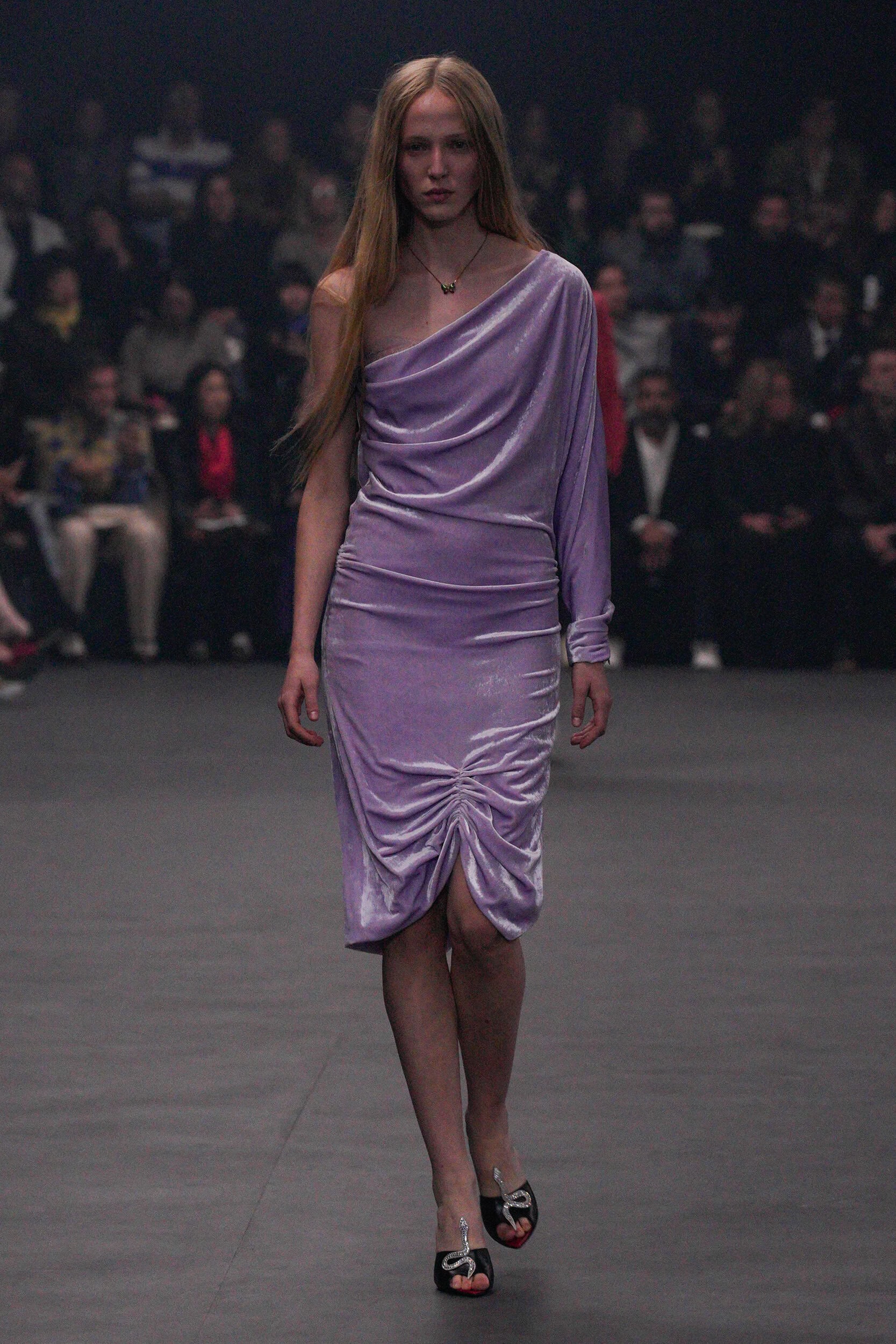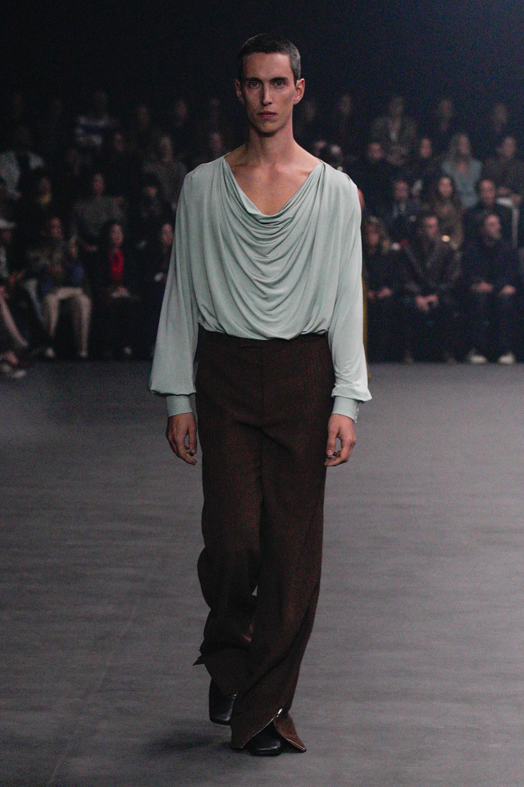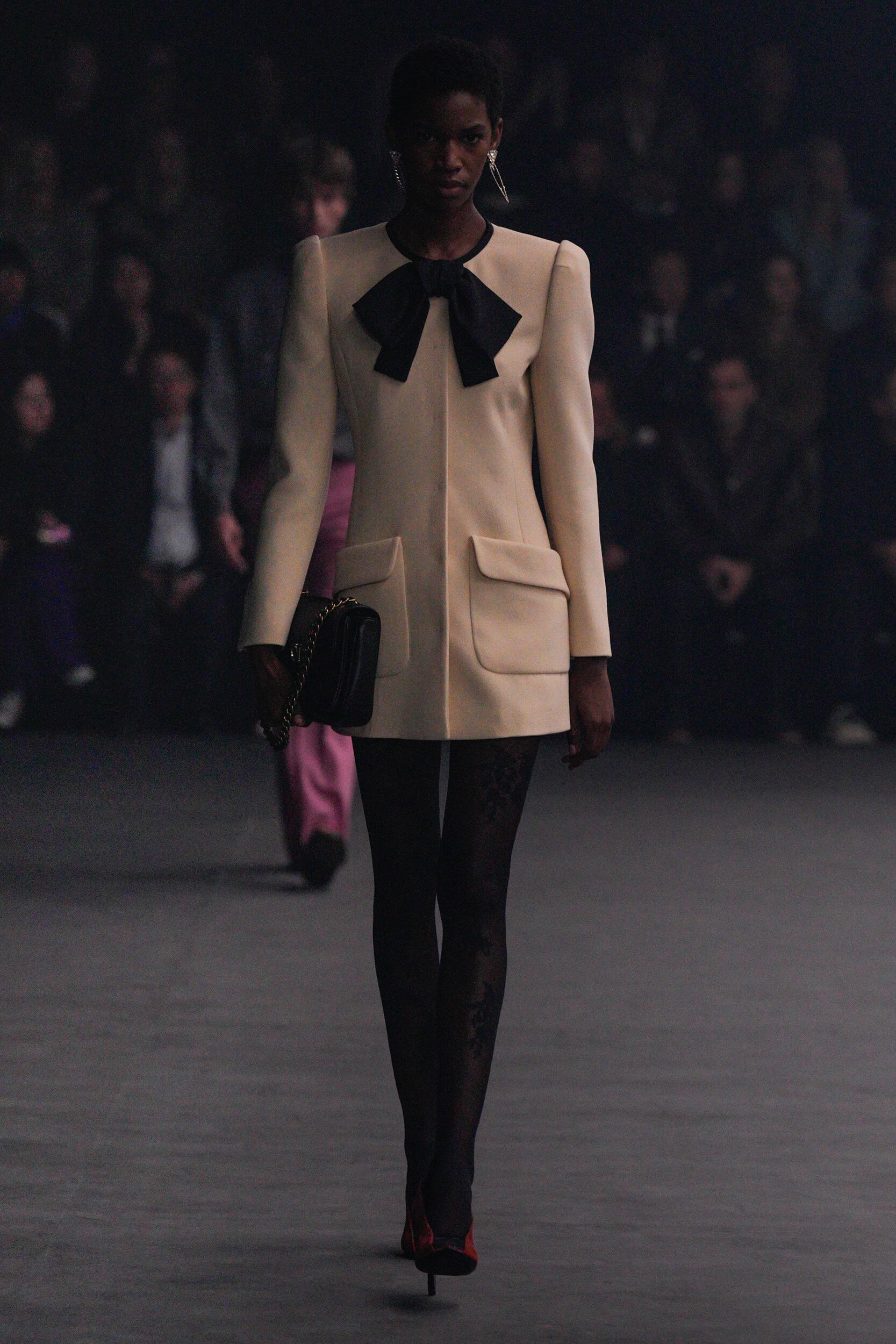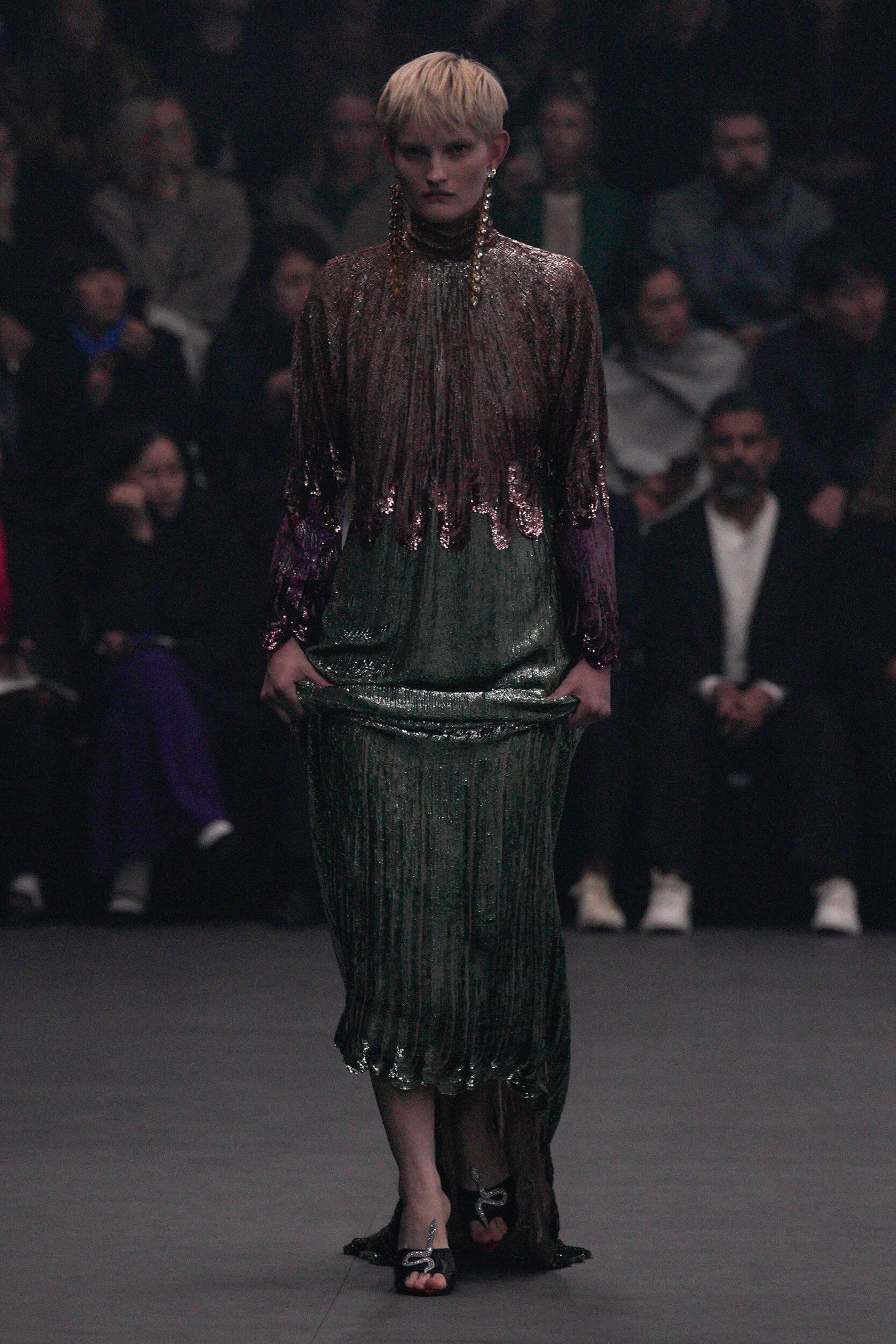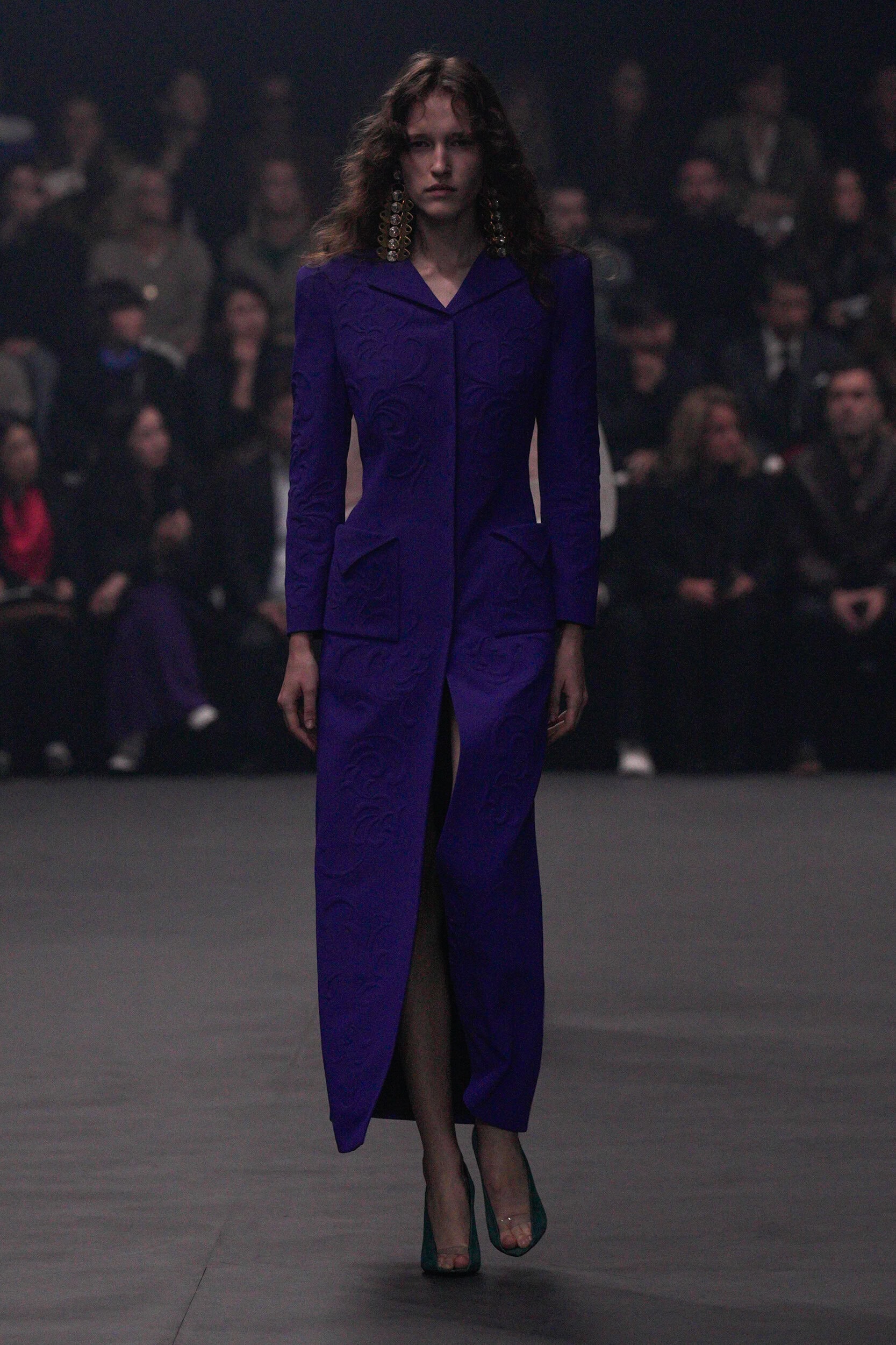两季之后,Alessandro Michele 的 VALENTINO 已不再只是一场美学实验,而是演变为一种哲学对话。继首次华丽且探索性的发布后,本季的作品带来了更加内敛的坚定信念,表明 Alessandro Michele 已意识到「重复」会招致怀疑。于是,他选择走向更为清晰的方向,保持其独特风格的同时,传达出更加成熟的信息:尊重胜过浪漫,构成胜过拼贴。