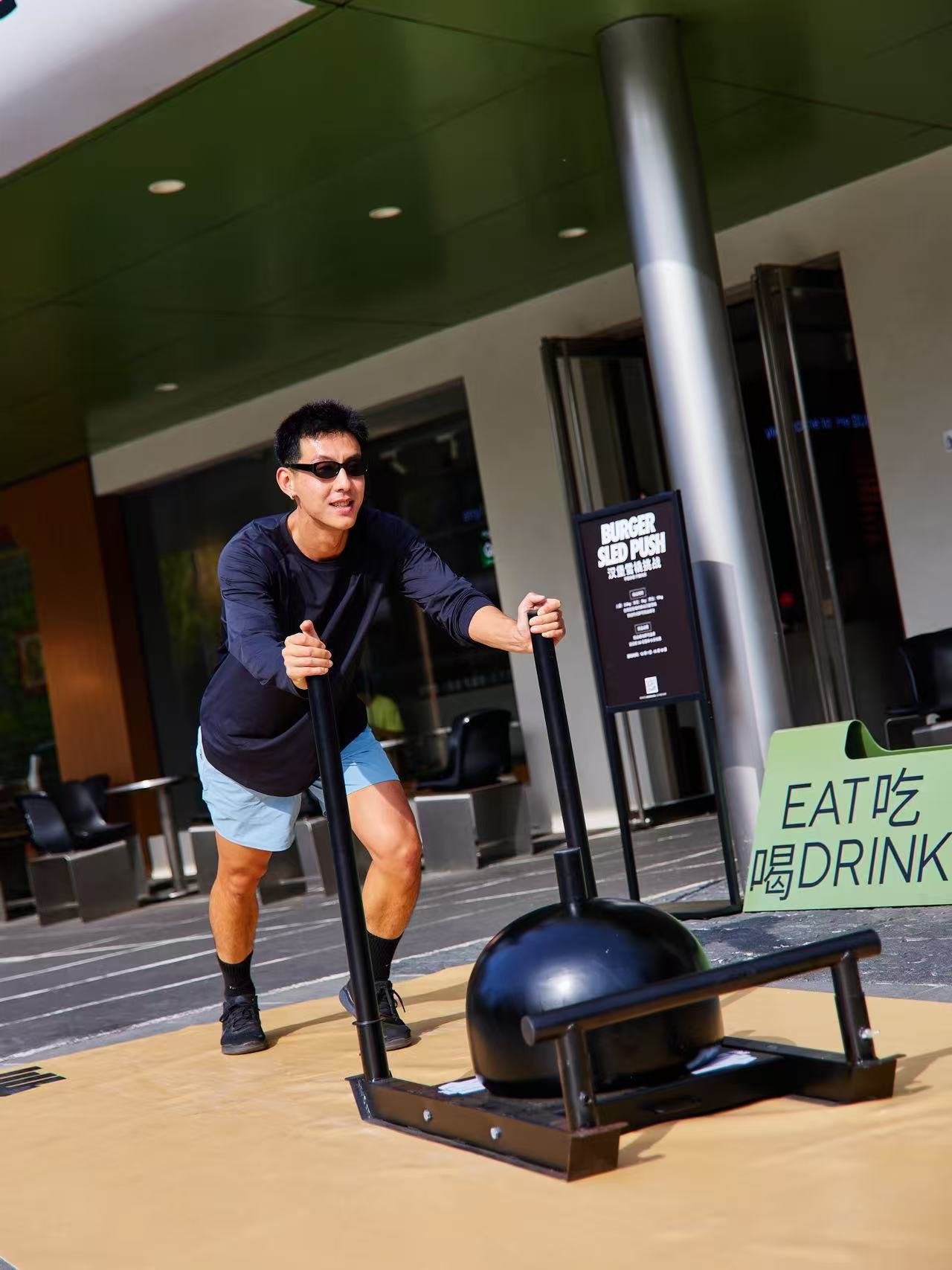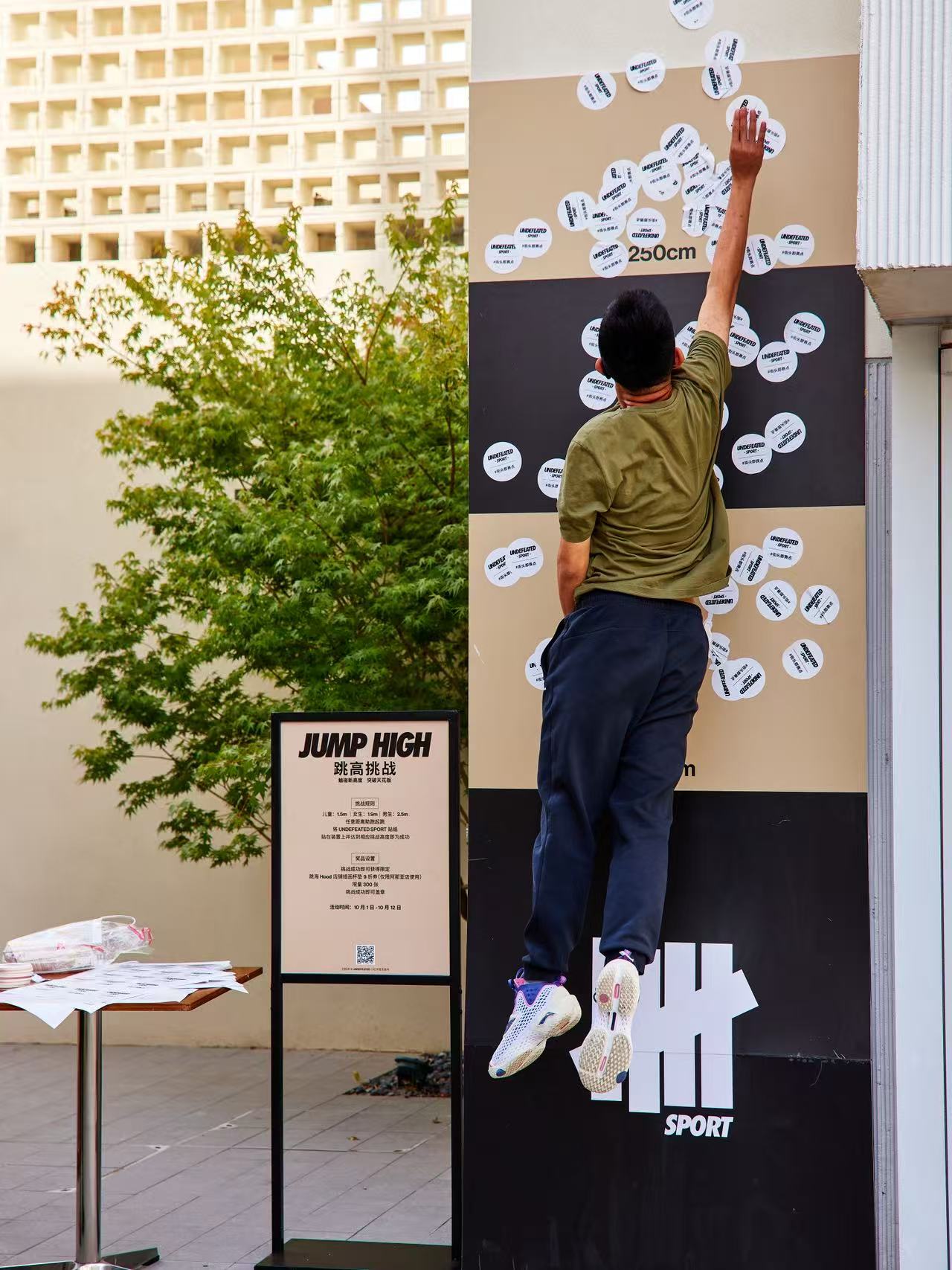 在 10 月 1 日至 12 日期间,UNDEFEATED SPORT 于雀跃镇五处打卡地标设置了趣味运动挑战,将 UNDEFEATED SPORTS CENTER、UNDEFEATED STORE、BAKE NO TITLE、跳海 HOOD 与 HE BURGER 等空间串联,形成了一条「街头即赛点」的运动路线,参与者在每一站分别解锁「飞跃斑马线」、「单杠挑战」、「拿铁还是拿铁」、「跳⾼挑战」、「汉堡雪橇挑战」在内的不同项目。挑战成功的参与者不仅能解锁不同的专属优惠券,集齐五枚印章还可以获得品牌限定礼品。在这一系列街头运动体验中,这些地标都成为了运动的「赛点」,让运动的乐趣自然渗透进街头场景之中。