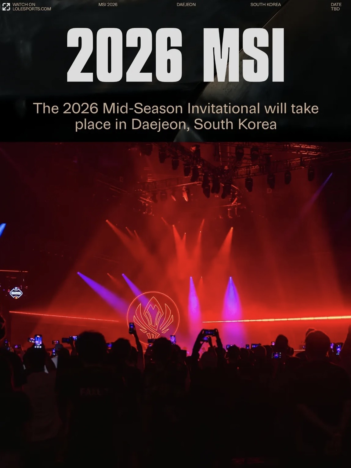 MSI 季中赛将落地韩国大田。作为每年 Worlds 前的重要国际赛,MSI 通常被视为观察各赛区实力走向的风向标。目前官方尚未公布具体日期。