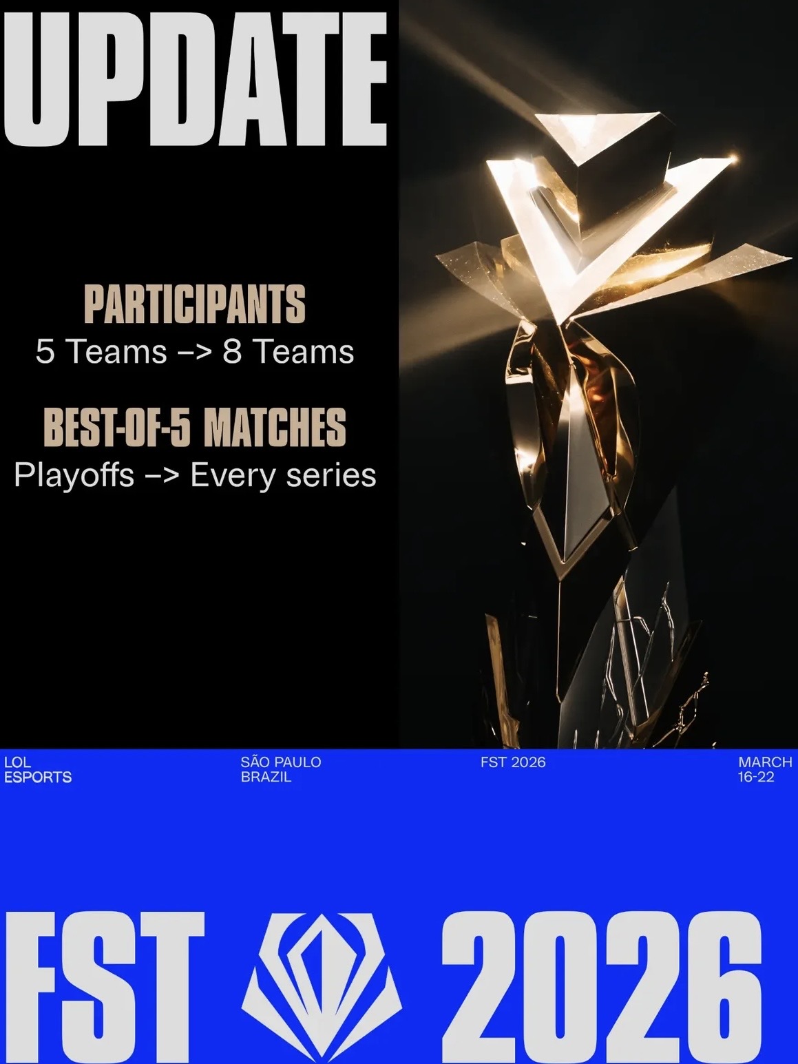 首先登场的是赛季首个国际赛事「First Stand 2026」,将于 3 月 16 日至 22 日在巴西圣保罗举行,共有八支队伍参赛,整个赛事阶段将进行多场五局三胜制(Bo5)对决。这也是继 2017 年 MSI 后,《英雄联盟》国际赛事再度回到巴西。