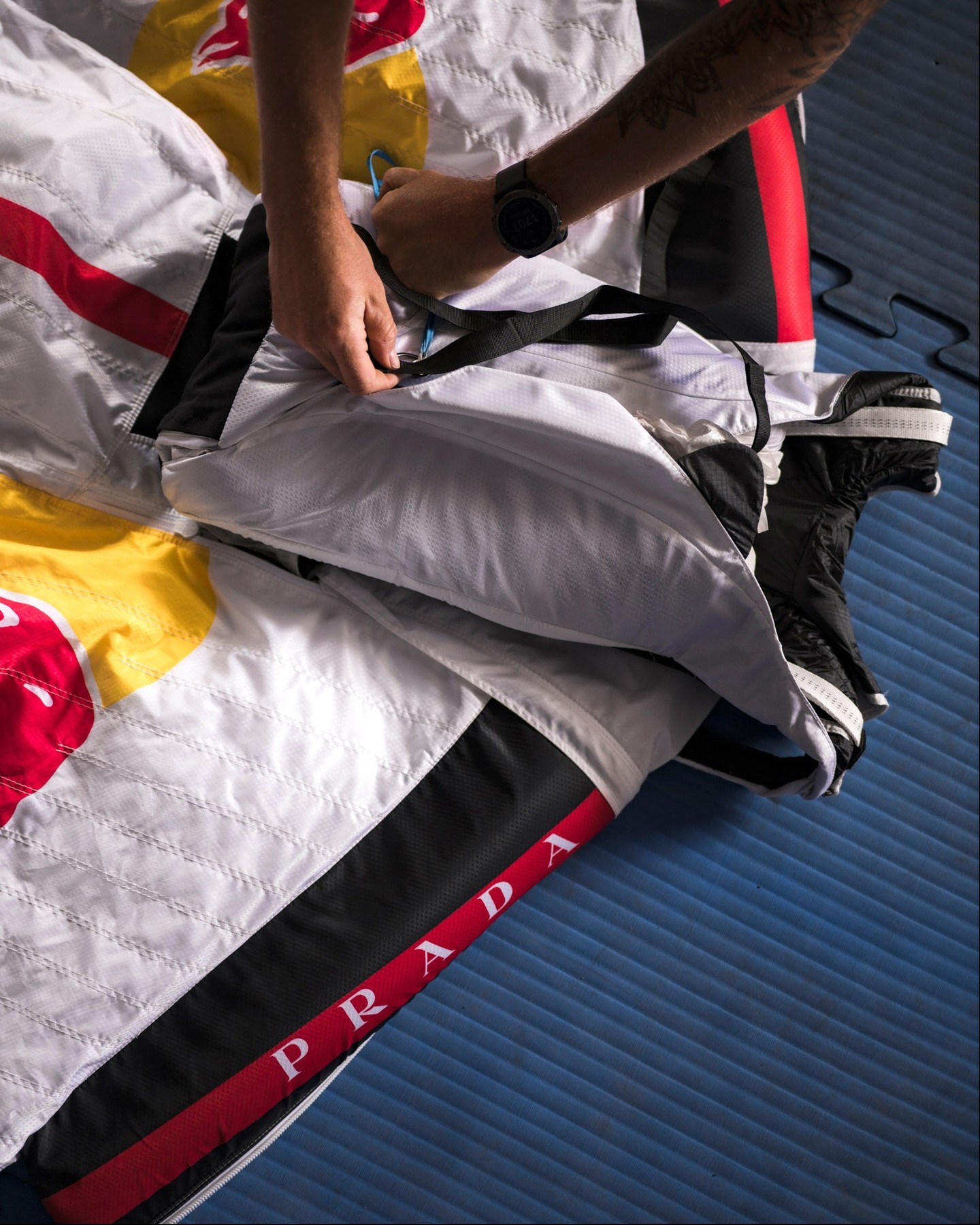 PRADA 与 Red Bull 的长期合作迎来了全新里程碑。奥地利翼装飞行员 Peter Salzmann 与 PRADA Linea Rossa 和 Red Bull 合作,在耶罗岛上空完成了一次突破性的滑翔飞行——他披上了特别设计的「箔翼飞行装」在一次山脊线的过程中,成功逆势攀升了 67 米(22 层楼高),挑战在时速约 40 公里的中部风速下飞行。他成功在飞行中实现了水平移动与精确的急转弯控制,这是一次对运动、人类智慧和精湛科技的完美诠释。