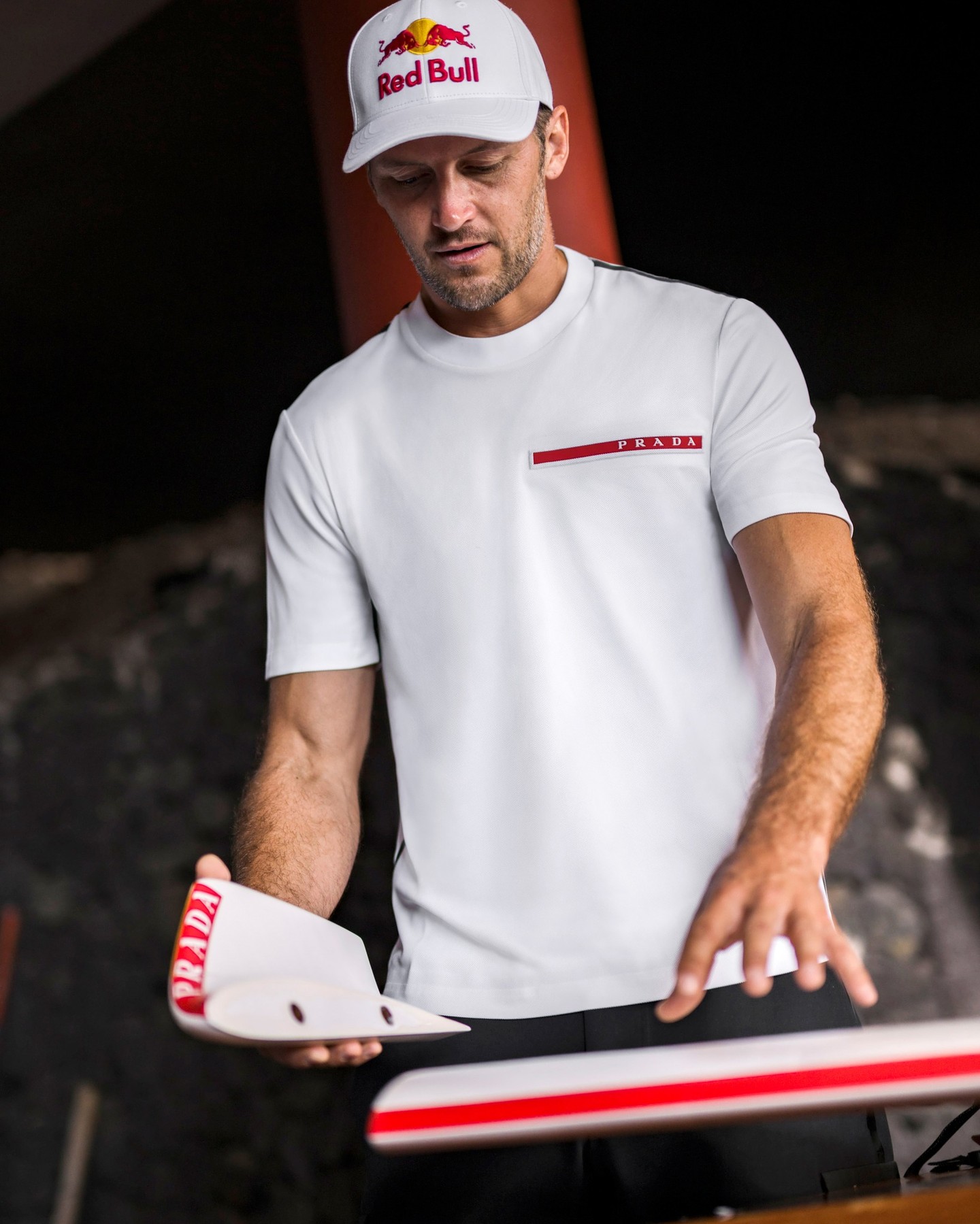 作为极限挑战的强力后盾,PRADA Linea Rossa 将其对人体工学的深入研究与先进的纺织技术结合,为 Salzmann 打造了专属的实用配件,确保他在这次高难度挑战中拥有最佳的机能支持。