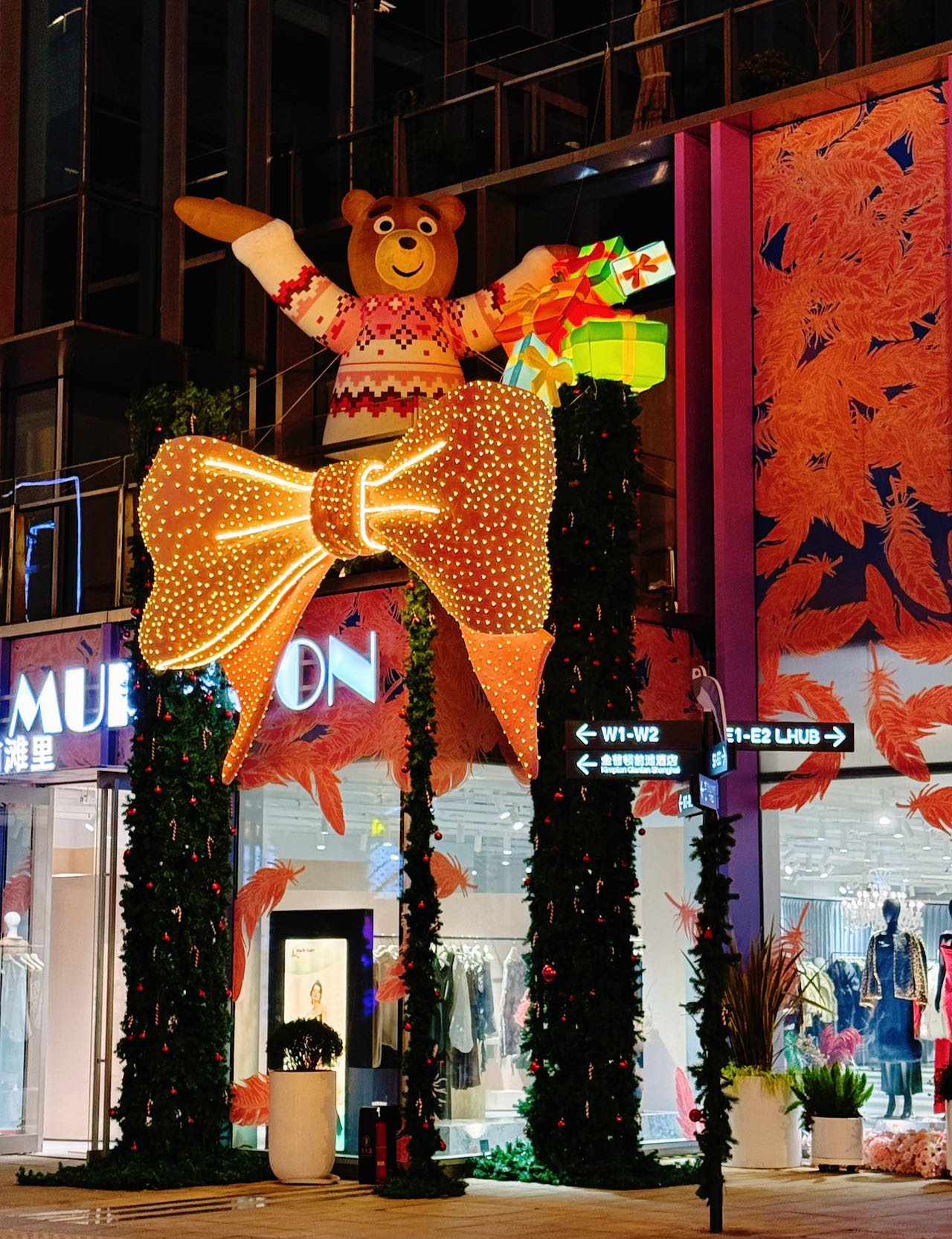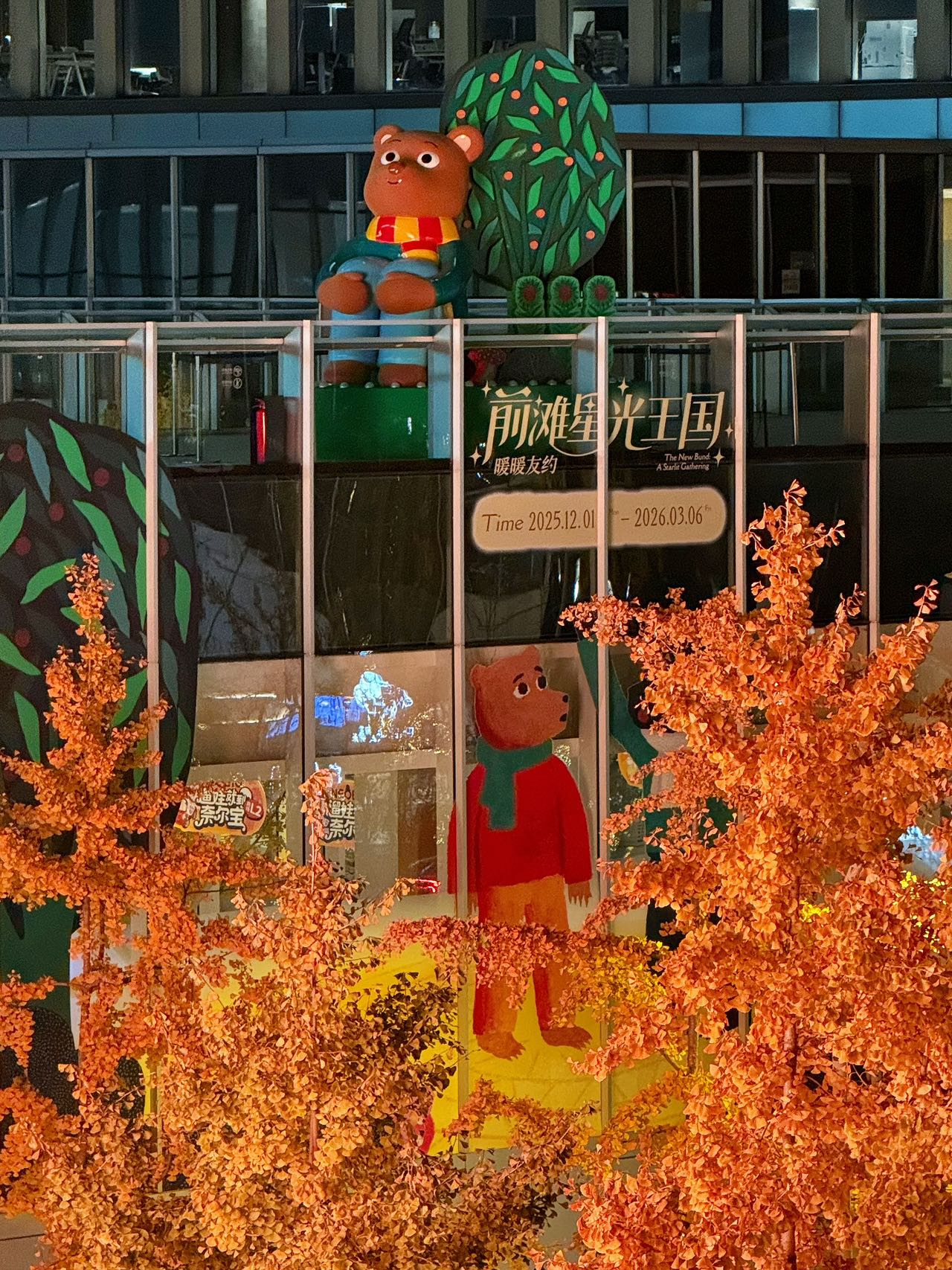 前滩冬日季「前滩星光王国·暖暖友约」大型公共艺术展温暖降临,以法国艺术家 Jean Mallard 的绘本创作为灵感源泉,将 26 组沉浸式装置艺术编织成步移景异的前滩王国。晶耀前滩东区中庭近 8 米高的熊小宝,展开梦境平行的对话,以「友情与勇⽓」为主题,踏上探索童话巷的冒险之路——屋顶送别、森林⻋站、幸福之⻔、巨型蝴蝶结礼物……穿梭前滩公园巷,进入治愈而温暖的想象之境,为大家带来⼀场可共享的情感冒险,⼀次城市⼼灵的治愈共振。12 月 6 日,星光「篝火」派对拉开节庆狂欢序幕,携手荣威上海儿童艺术剧场带来「暖暖有约」系列活动,还将有街头马路 disco、杂耍互动等升温节日氛围。