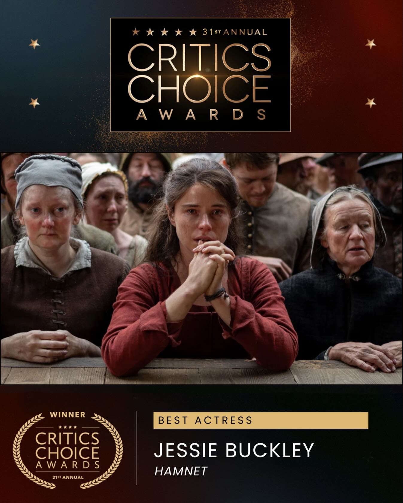 被誉为「奥斯卡前哨战」的第 31 届 Critics Choice Awards(评论家选择奖)于今日落下帷幕!由「甜茶」Timothée Chalamet 凭借《Marty Supreme》中的精湛表现,击败《One Battle After Another》的男主角 Leonardo DiCaprio 夺下影帝,但《One Battle After Another》获得最佳影片;影后则由 Jessie Buckley 凭《Hamnet》成功抱走。图片为本次颁奖典礼的获奖人员和作品。