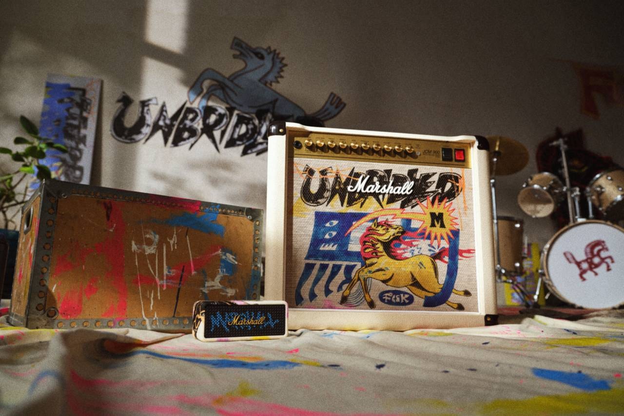 该系列特别邀请艺术家 FCCK1991 操刀设计,其专属图案被大胆印制于 Marshall 标志性音响产品之上,包括 Studio 900 Combo 以及 Emberton III 蓝牙音箱。粗犷而充满能量的艺术表达,与 Marshall 一贯的摇滚基因相互呼应,呈现出兼具收藏价值与视觉冲击力的限定之作。