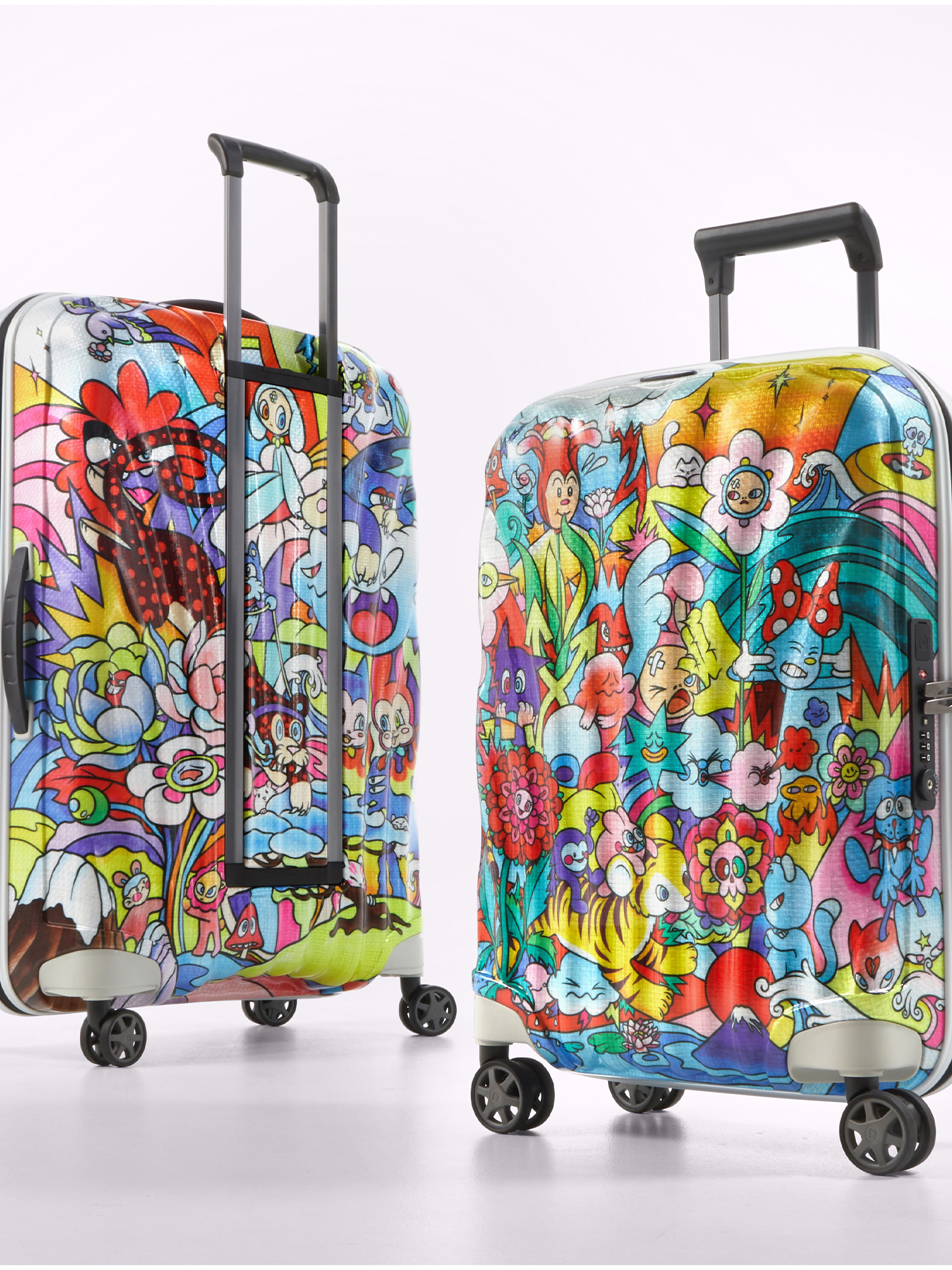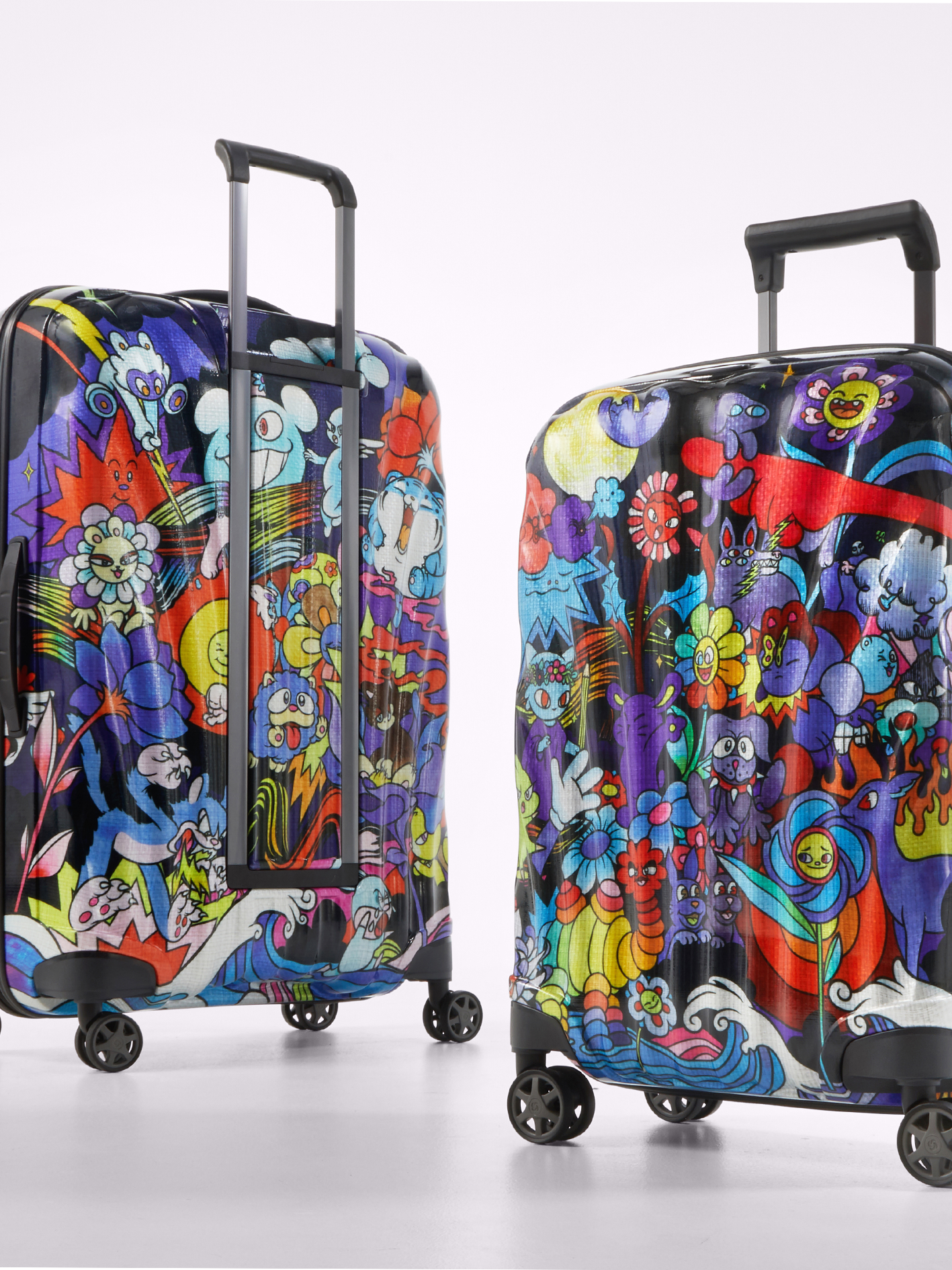 C-LITE 艺术家联名系列该系列以「日与夜」为主题,推出白底「日光」与黑底「夜幕」两款设计,外观如贝壳般坚韧且富有绮丽光泽,搭配 Vexx 标志性的梦幻活力涂鸦,为年轻消费群体打造富有艺术气息的旅行装备。箱体材质选用轻量耐用的 Curv® 材料,内衬延续同款半透明图案设计,体现贯穿内外的完整创意理念。
