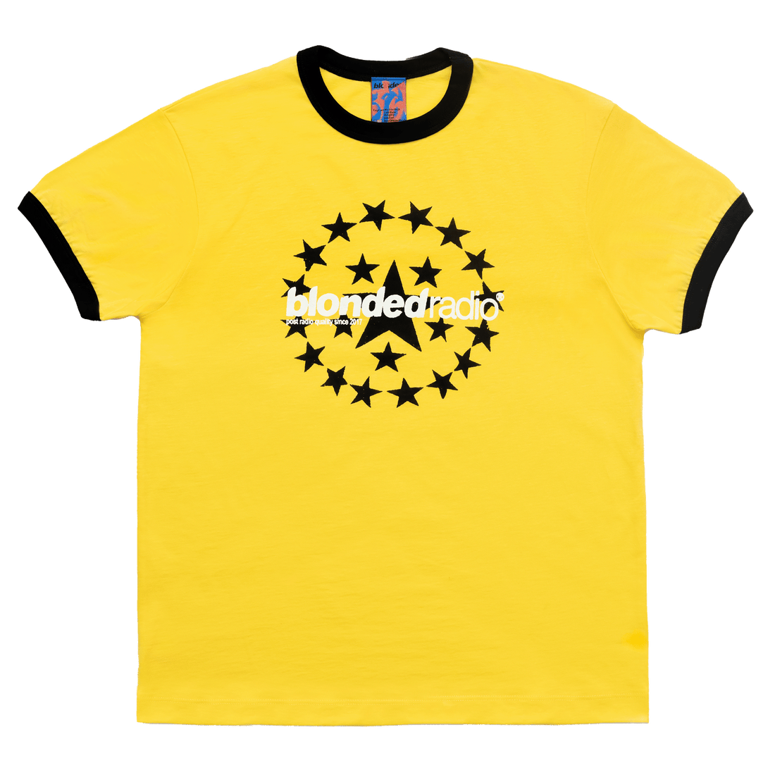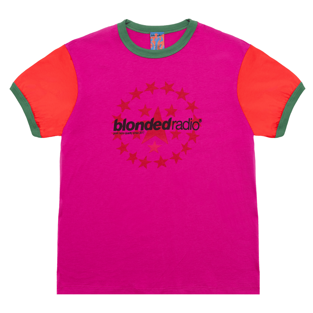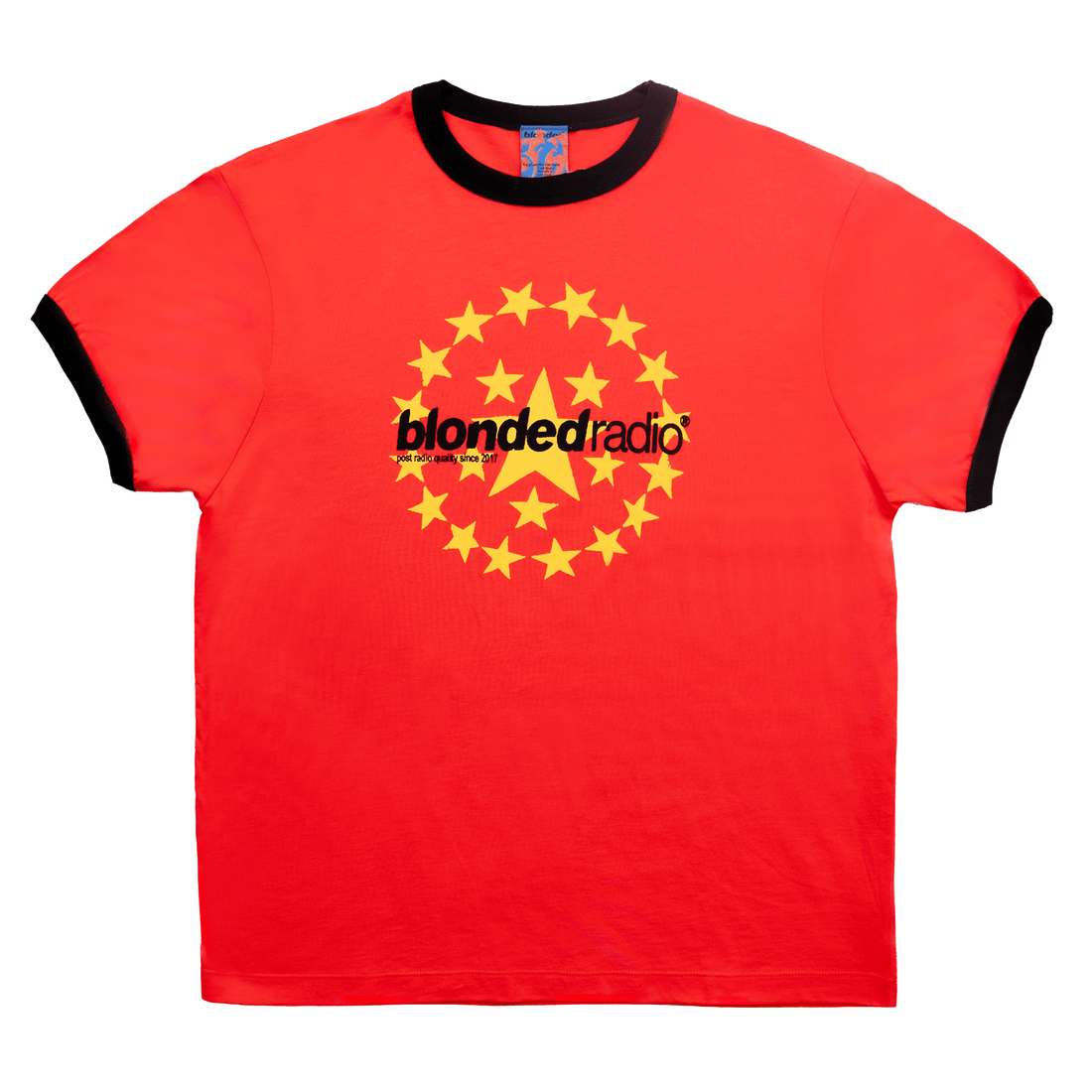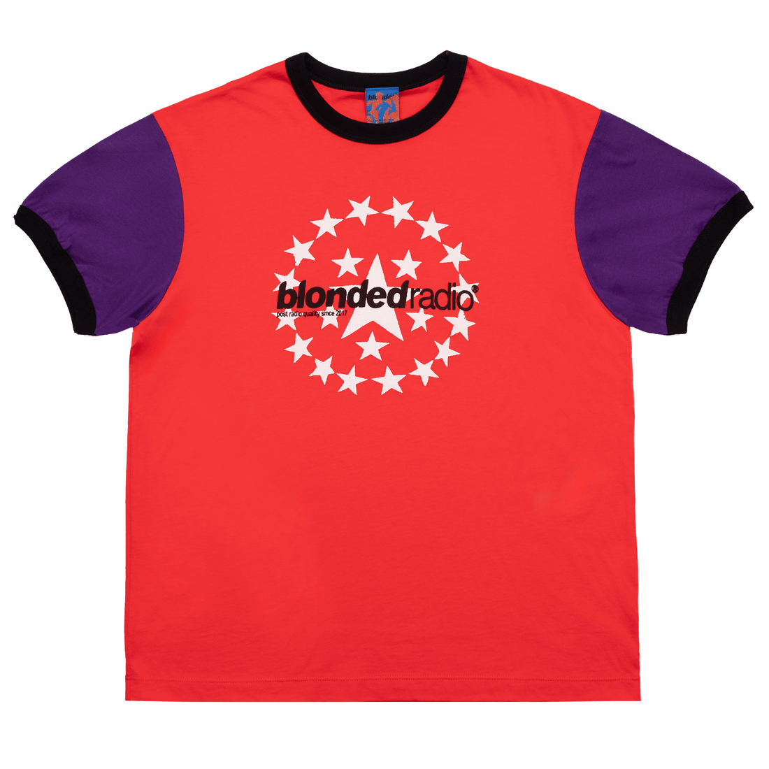 这次推出的三款 T 恤提供多种配色,每一件都以 Blonded Radio 为主题,呼应了 Frank Ocean 在 2017 年于 Apple Music 推出的广播节目。其中一款设计在胸前印有扭曲的「radio」标志,提供黑色、红色和蓝色。另一款设计以星星环绕「blonded radio」标志,有红/紫、紫/红、红/黄和黄/黑四种配色。最后一款 T 恤采用黑/白和白/黑配色,致敬 2019 年 10 月 19 日播出的 Blonded 008 节目,该期首播了单曲《DHL》。