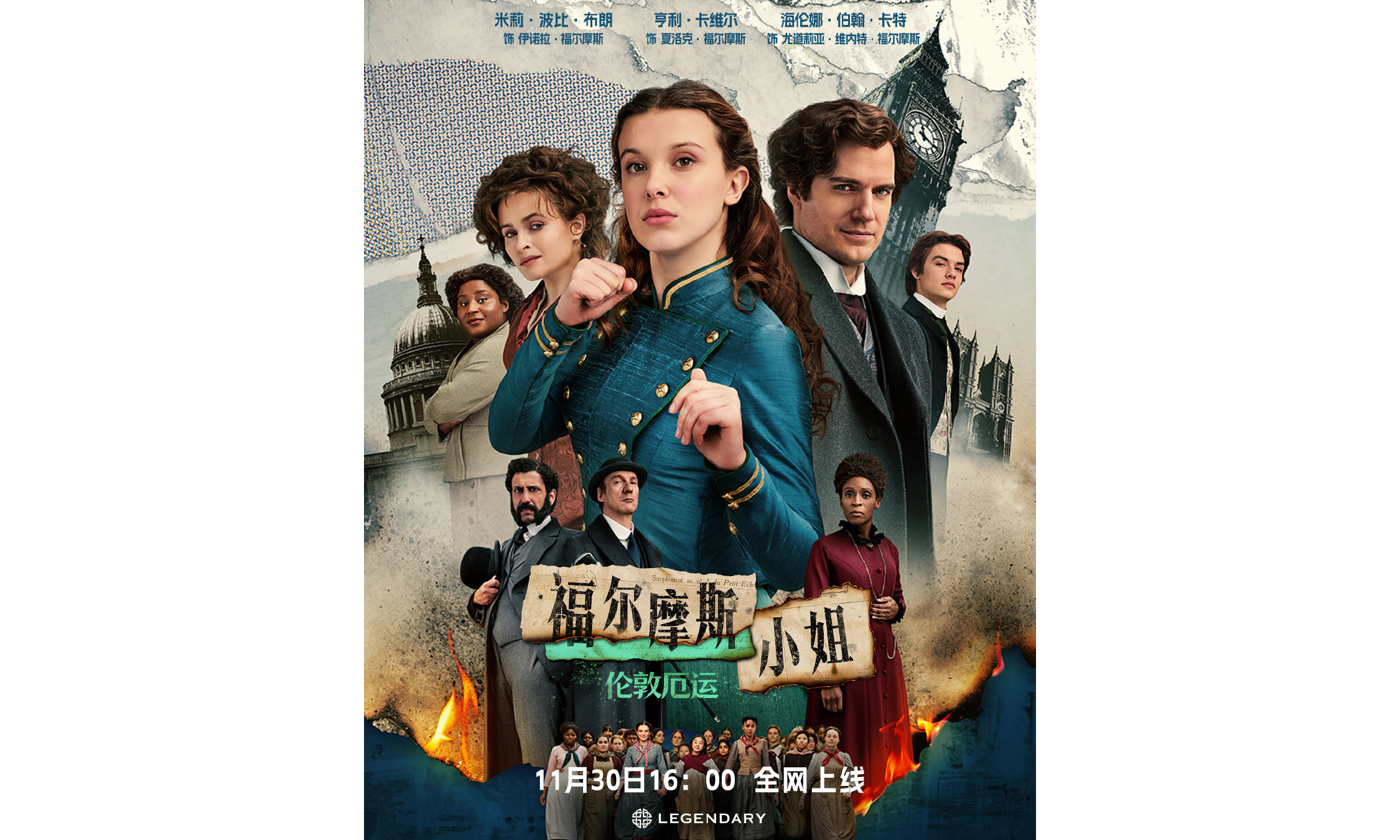 悬疑冒险喜剧片《福尔摩斯小姐:伦敦厄运》今天上线内地视频平台。该片由《怪奇物语》中的人气角色「小 11」扮演者 Millie Bobby Brown 主演福尔摩斯小姐,「超人」Henry Cavill 出演夏洛特,讲述福尔摩斯小姐受托为女孩寻回失散的姐妹时无意卷入一场阴谋。