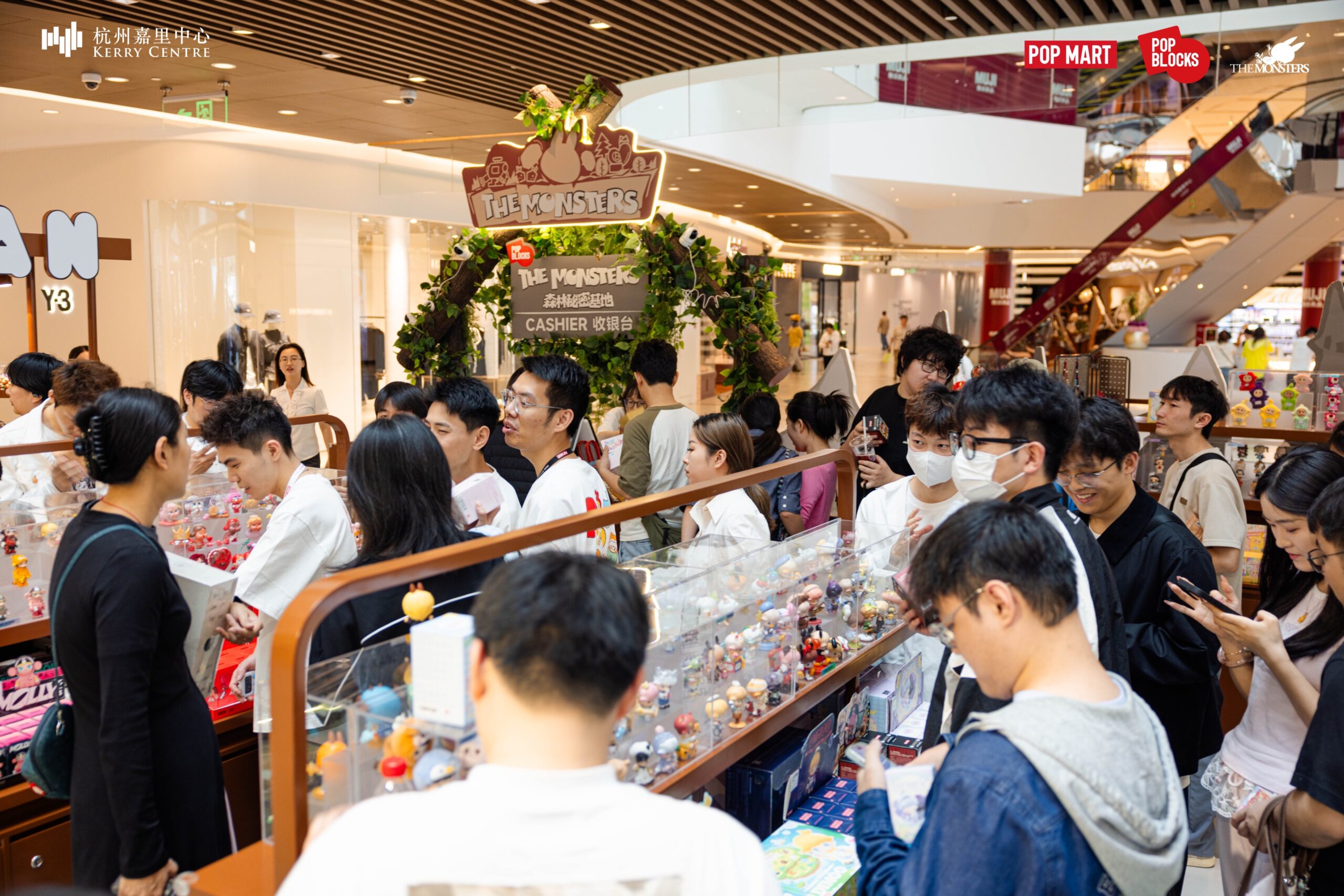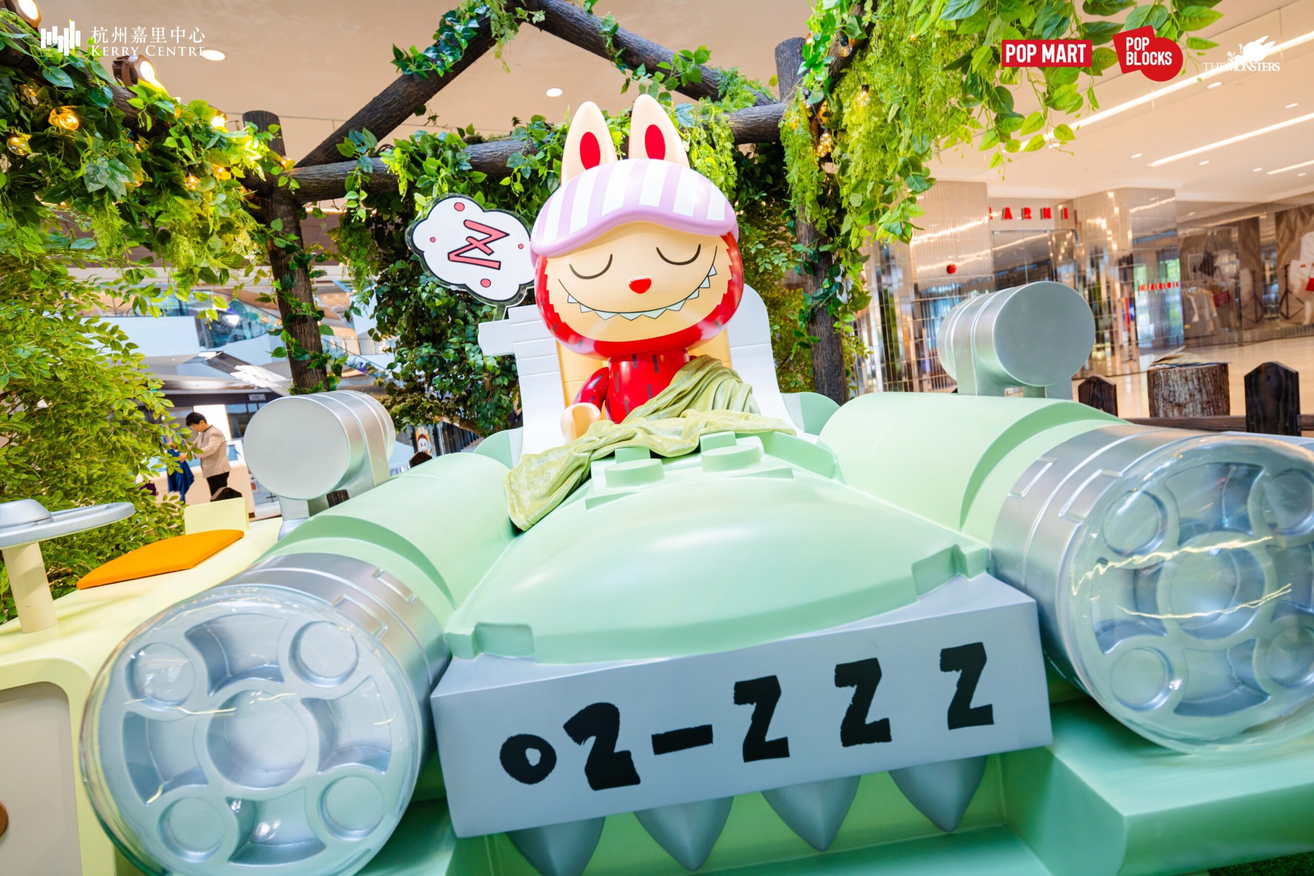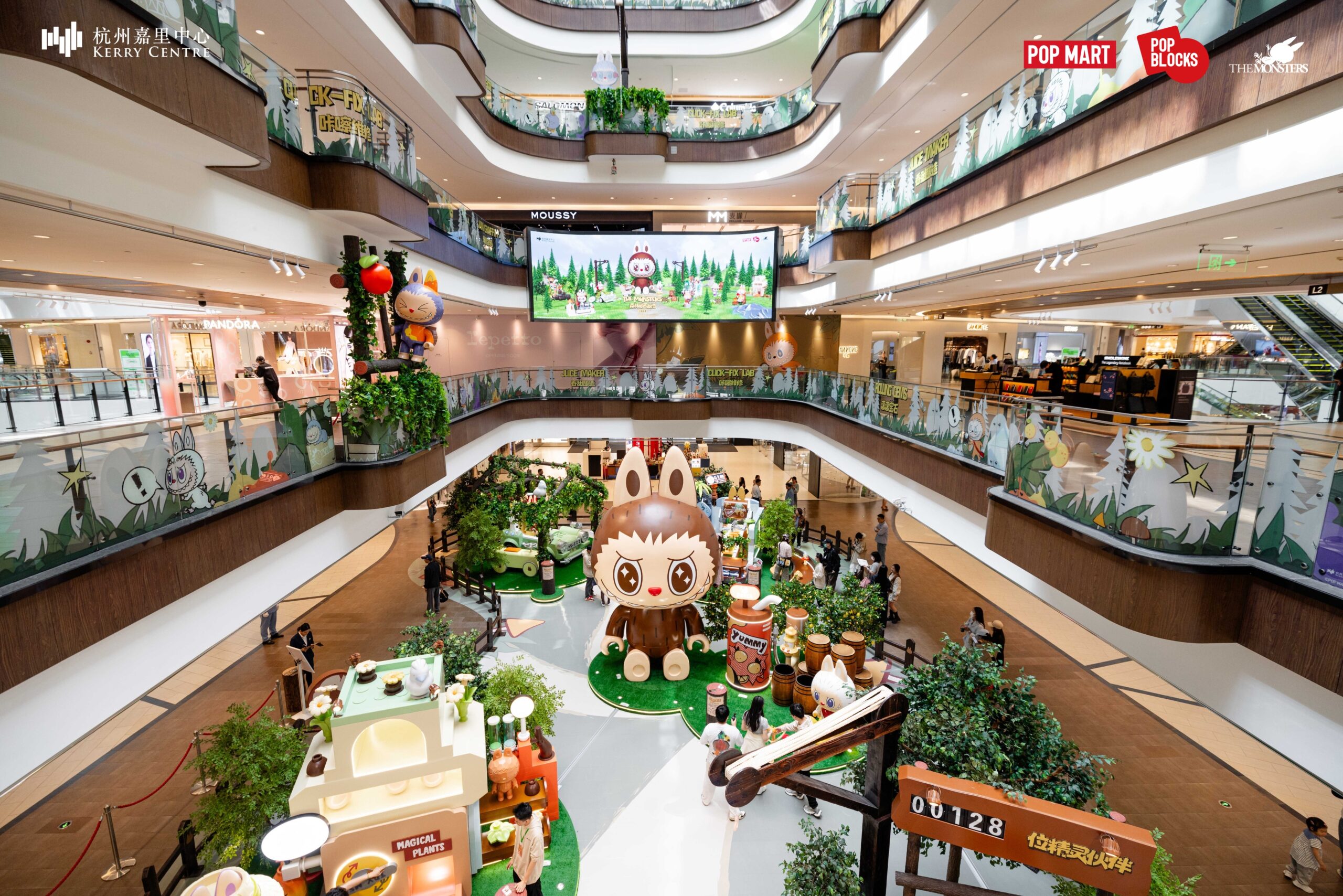 本次呈现的精灵世界来源于 POP MART 旗下积木品牌 POP BLOCKS 推出的首期产品——THE MONSTERS 森林秘密基地系列,以精巧的积木艺术讲述了一个关于 LABUBU 构筑森林秘密基地的奇趣故事。项目巧妙运用商场户外南院街区的庭院空间和室内 5 层中庭垂直挑高的结构特点,打造了 5 米高巨型 LABUBU 装置,配合 7 大主题互动游乐场景以及 10 余个 LABUBU 形象装置,全方位立体呈现奇趣的精灵世界。穿梭杭州嘉里中心,LABUBU 的身影随处可见,每一处都留有它们的奇思妙想,等待着「精灵伙伴」一起探索这些快乐细节。森林秘密商店 POP-UP STORE 也同步开启,快闪店为「精灵伙伴」准备了一系列包括盲盒、萌粒等在内的限定产品发售。
