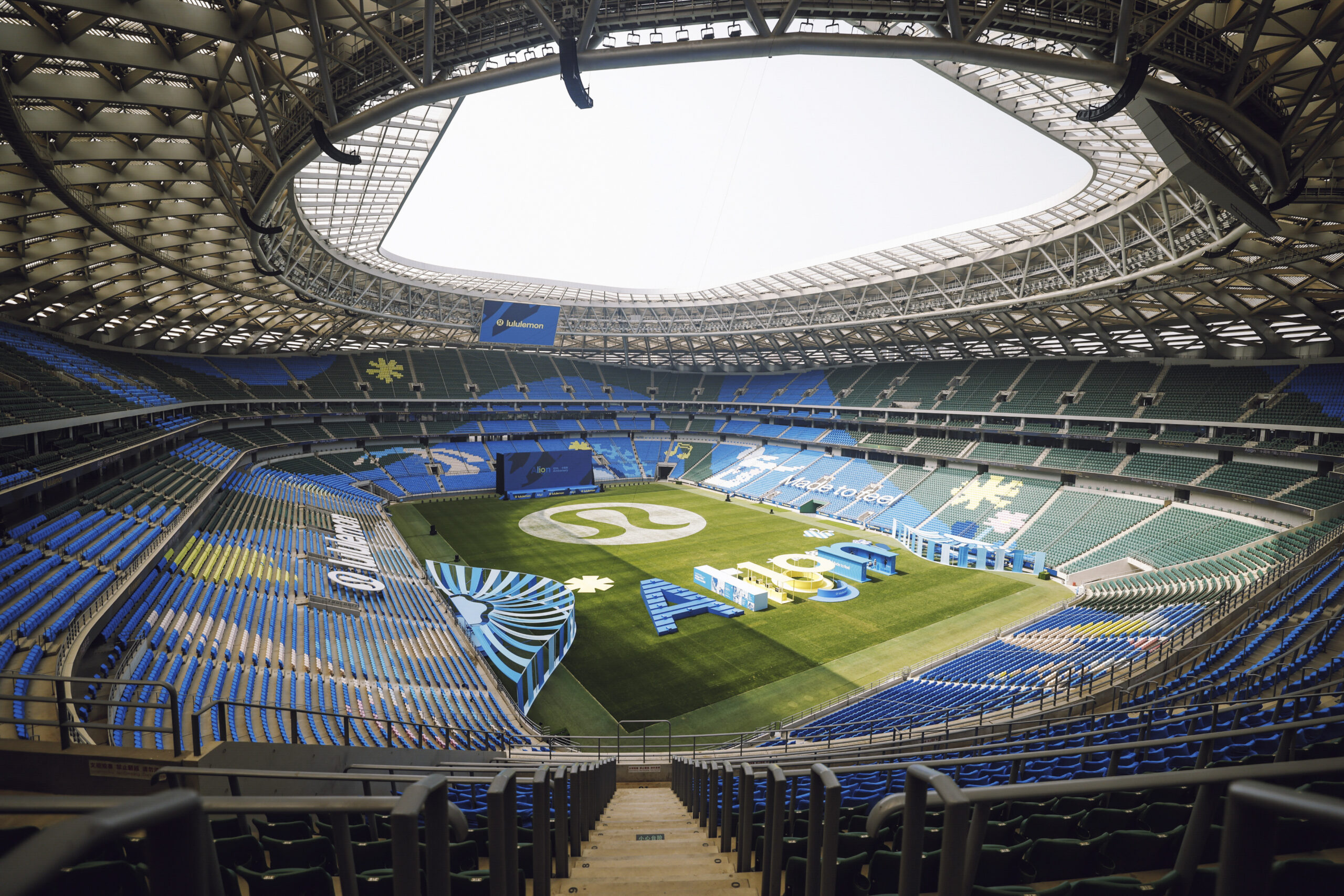 作为历史悠久的北京地标建筑,工人体育场无疑承载了几代人对于大型文化和体育赛事的记忆。lululemon 此次特别选址在此,将数万个座椅重构为巨幅画布,呈现独立插画师与动画师 Inkee Wang 王颖琦为活动特别创作的作品,致敬鲜活的 lululemon 瑜伽社区。活动现场,以 Align™ 为灵感的体验区设有丰富的互动环节,让运动的乐趣贯穿每一刻。