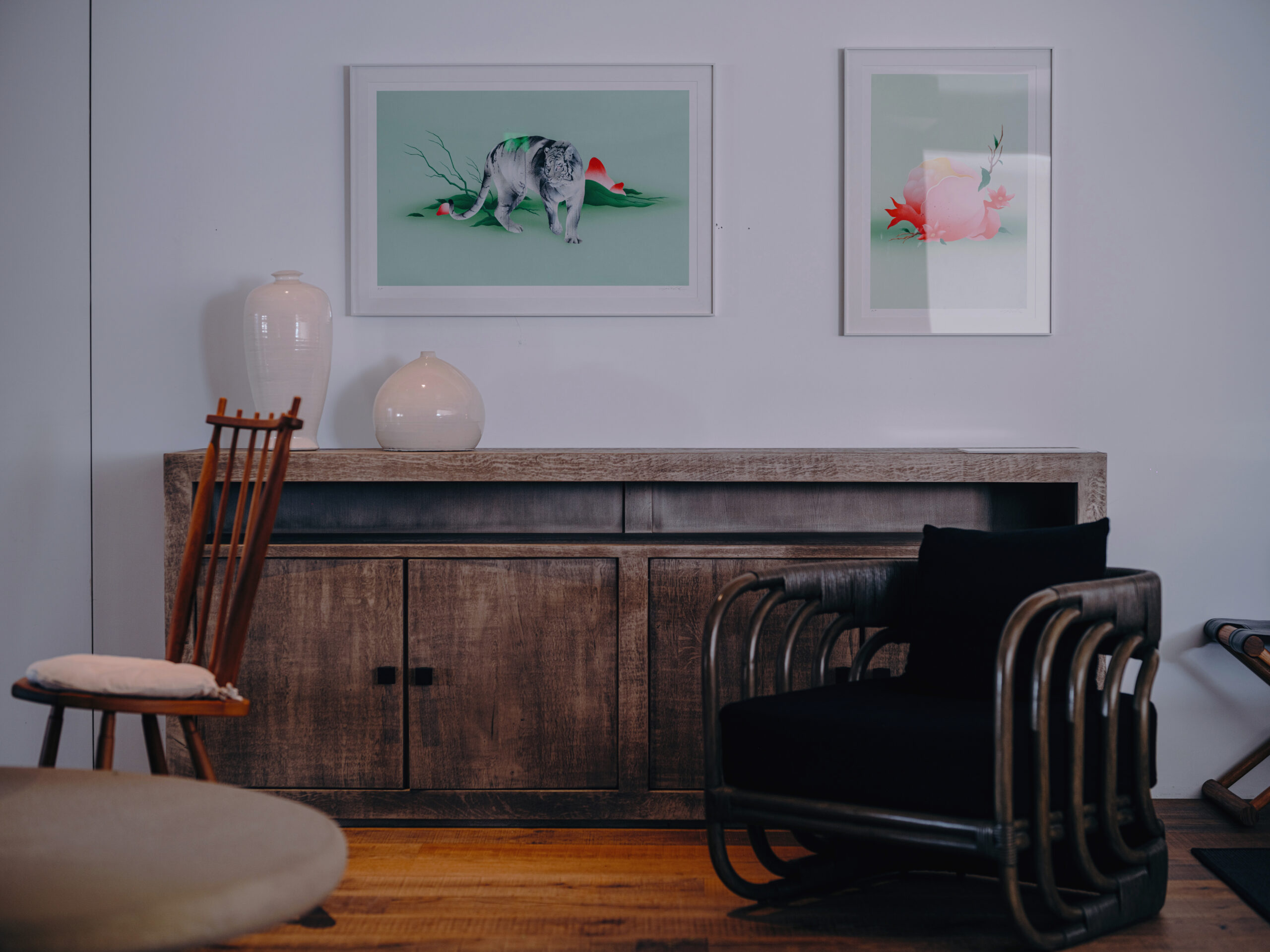 从街头到画布,从民俗符号到当代语汇,林子楠的创作始终遵循着双重逻辑:既是对本土文化根系的深度勘探,也是对艺术表达边界的持续拓展。在「旵寓」的荧光里,我们看到的不仅是一个艺术家的创作年谱,更是当代文化语境中,传统精神基因在全球化浪潮里的自在生长。这种生长,不依赖于符号的简单拼贴,而在于以东方美学的「韵律法则」为魂,以当代技术为骨,最终织就属于这个时代的精神图谱。