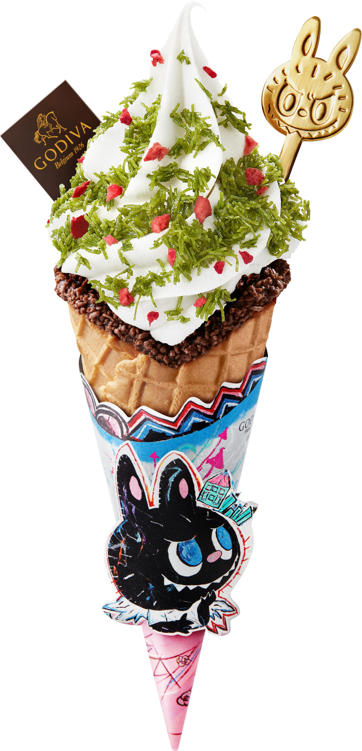 今夏,GODIVA x LABUBU 联名冰品率先释出首波限定产品,涵盖三款软冰淇淋和两款奶昔。歌帝梵巧克力大师将 LABUBU 的活泼形象与生机盎然的绿意森林作为设计灵感,创意融合至 GODIVA 歌帝梵经典巧克力口味之中,以清醇可可激发多元层次风味。LABUBU 的俏皮配色,搭配莓果红与坚果绿,缤纷醒目的色彩组合下,将夏日的鲜活意趣凝于冰品之上。缀满软冰淇淋与奶昔表层的冻干莓果,将树莓、蔓越莓、蓝莓与草莓中鲜明的酸甜滋味与巧克力味碰撞,达成清新与浓醇的巧妙平衡;灵感来自画稿中的开心果面包丝酱,作为迪拜巧克力中的特色风味,入口酥脆,伴随浓郁坚果香,尽享齿间多重享受;特别打造的冰淇淋勺以 GODIVA 品牌色为主调,金色光泽下的 LABUBU 形象精致,勾连曼妙遐想,同步提升奢享体验;同时,联名系列亦发布限定款包装,以艺术家龙家升的经典画作为灵感进行设计,可翻动的立体结构,令艺术家画作跃然指尖,让每次品尝皆充满探索乐趣。