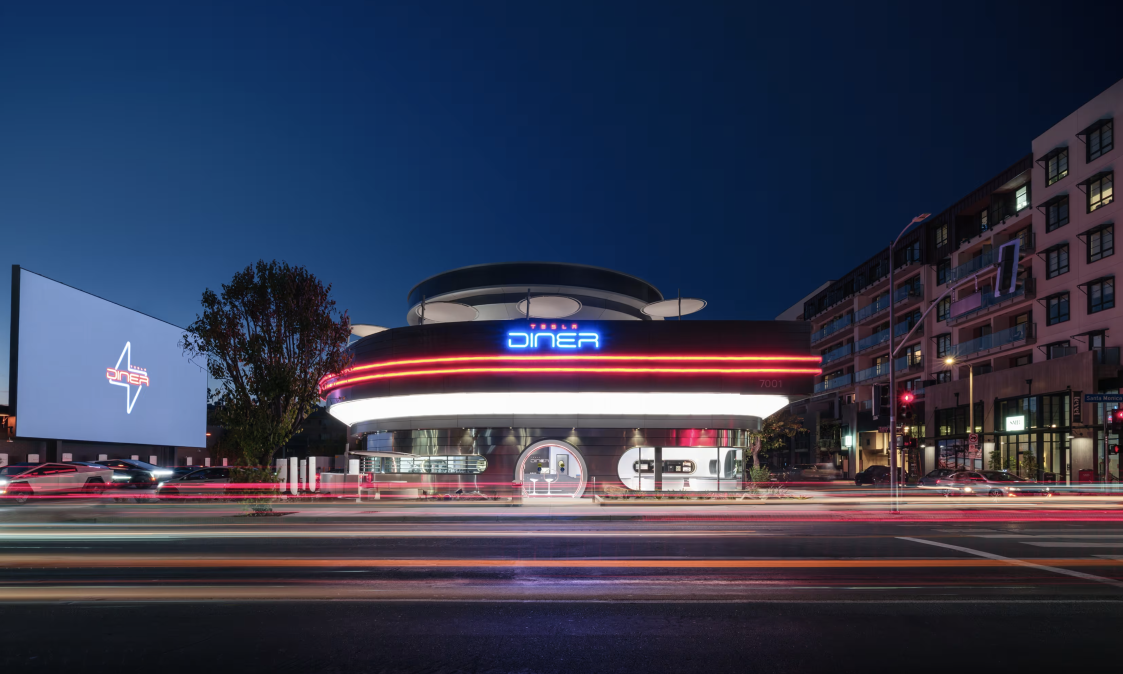 日前,特斯拉餐厅 Tesla Diner 正式迎来开业,其位于美国圣莫尼卡大道上,7 x 24 小时全天候营业。从外表来看,特斯拉餐厅像一艘停在地球的太空船,拥有金属外墙、红色灯带、太空舱入口。在餐厅隔壁的超充站中,特斯拉配备了 80 个 V4 超充桩,还放置了两块 45 英尺的户外巨幕。
