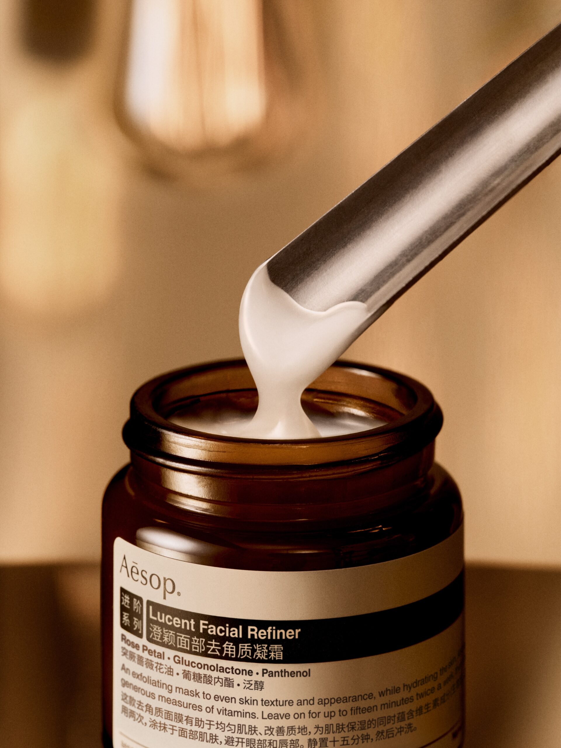 如同每一款盛装于 Aesop 伊索标志性琥珀瓶罐中的护肤配方,「澄颖面部去角质凝霜」亦诞生自品牌墨尔本的内部实验室,历经六年不懈的悉心研制,体现了 Aesop 伊索一贯的创新精神与护肤哲学。这款全新推出的独特面膜配方,旨在为肌肤提供高效呵护及实质益处。