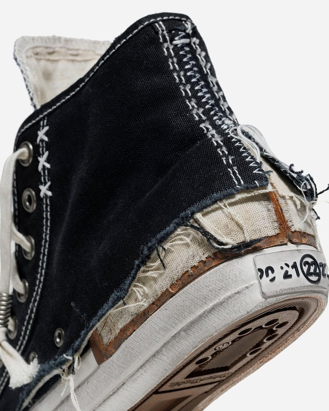 Maison Margiela 推出全新 Love to Death 运动鞋系列,以「穿出时间的痕迹」为主题,重新诠释了「旧」的美学概念。品牌并非单纯追求仿旧效果,而是希望通过持续穿着所留下的「情感痕迹」,展现人与物之间的深层连接。在设计上,鞋身采用未裁切的多层帆布结构,并以外露缝线作为独特视觉语言,象征经年累月的磨合与陪伴。鞋底与鞋头的磨损细节并非真实损坏,而是刻意打造的设计元素,用以呈现被珍视、被使用后的独特温度。