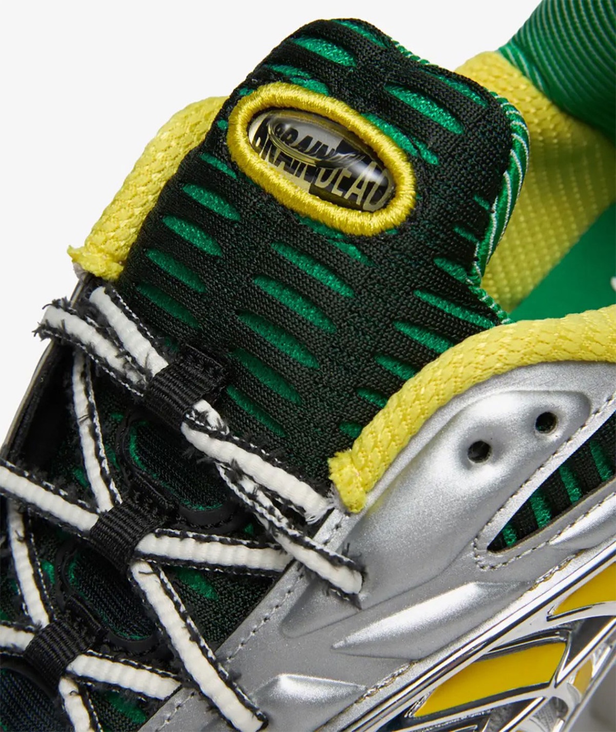 这已经是双方今年推出的第五个合作系列,Brain Dead 这次选择了 Climacool 2 和 Taekwondo 鞋型。前者是在 2003 年推出的鞋型曾在 2017 和 2020 年复刻过,Brain Dead 此番将其打造得更为吸睛,银色鞋面框架、绿色网眼面料和亮眼的黄色点缀形成鲜明对比。鞋面采用透气孔设计和外露缝线,赋予鞋款动感十足、活力四射的能量,充满力量感。