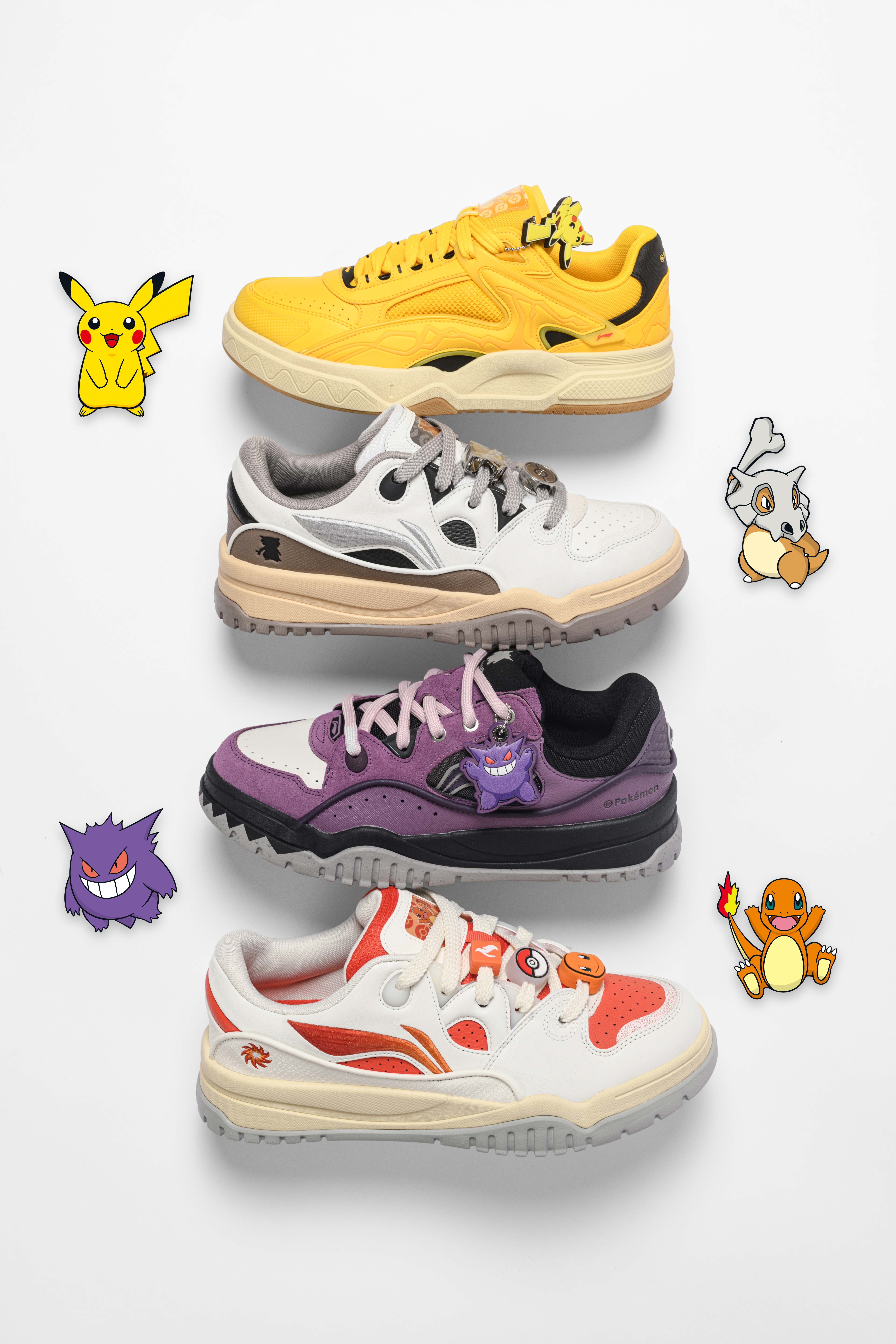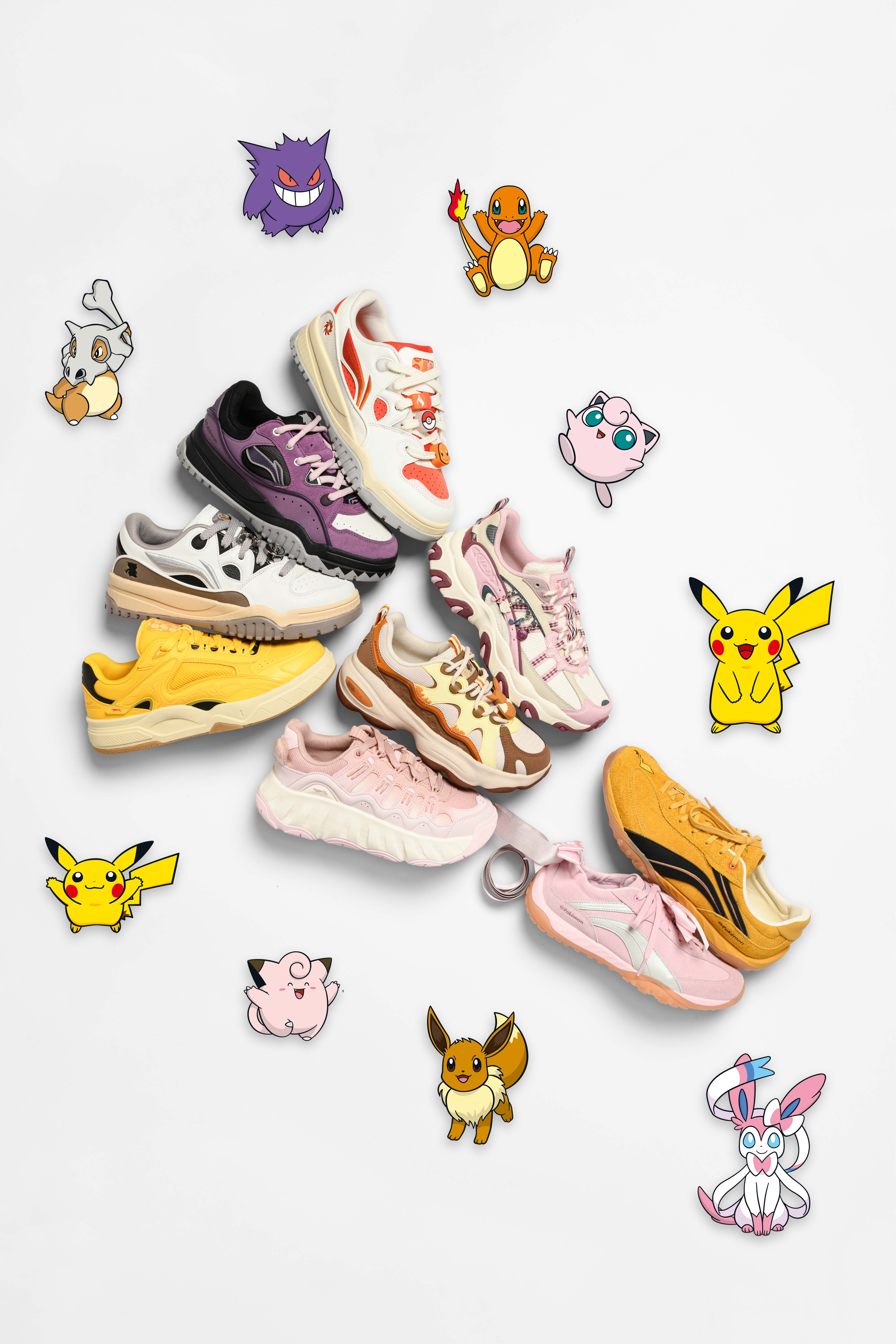 此次李宁品牌与宝可梦的跨界联动,以宝可梦经典角色为创意原点,通过解构与重构的创意手法,将「童年伙伴」「冒险精神」等情感符号转化为具象化的潮流鞋款设计元素,使鞋款被赋予充满童趣与情感的双重表达,让消费者得以在穿搭中重温纯真年代。本次李宁共推出九双联名鞋款,以宝可梦角色为核心,在李宁现代美学体系的演绎下,呈现兼具趣味与潮流属性的风格之选。