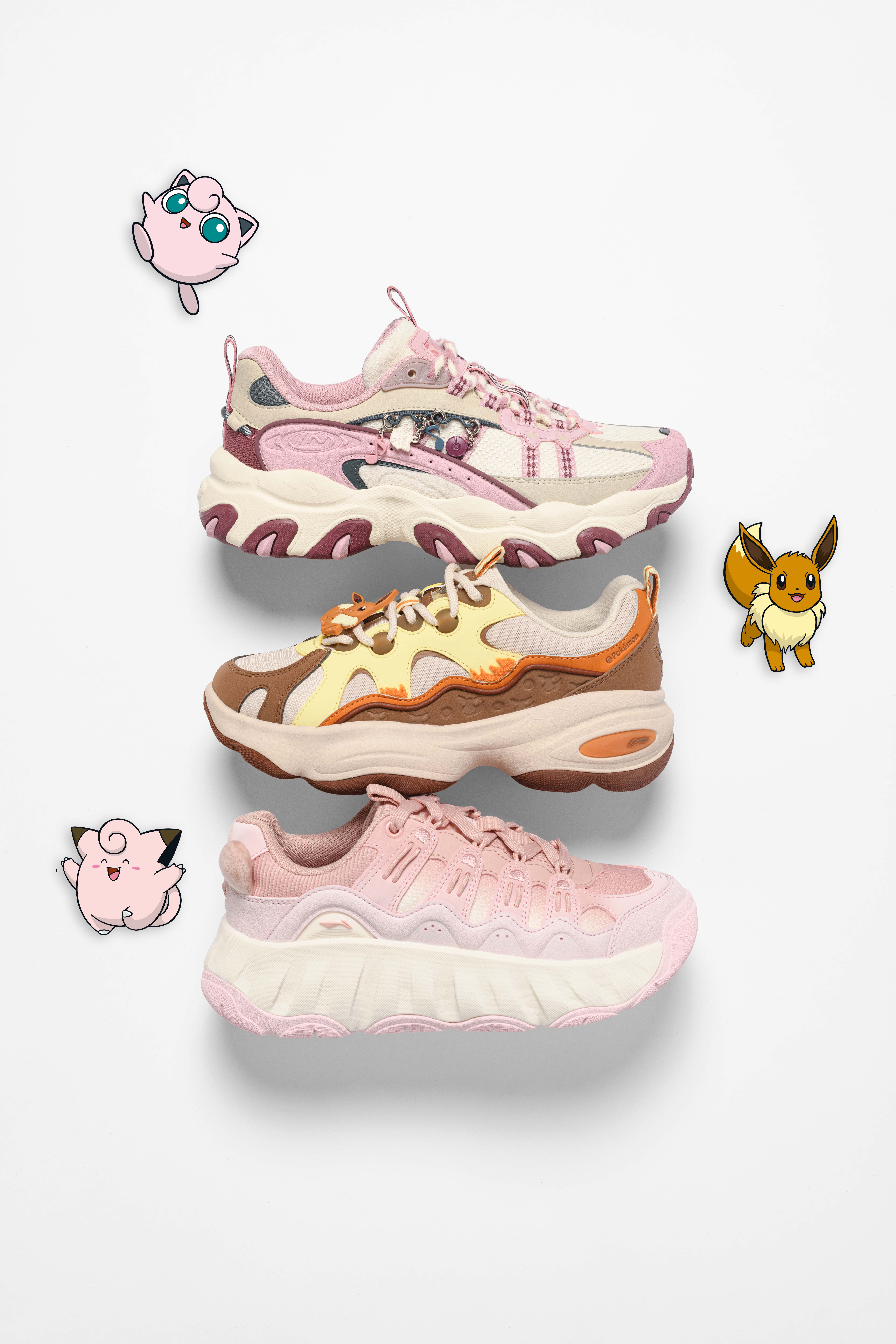 李宁与全球知名 IP 宝可梦展开跨界联名,以现代潮流设计语言对 6 款经典鞋型行创意重塑。此次合作精选皮卡丘、仙子伊布、小火龙等八大人气宝可梦角色,将其标志性元素巧妙融入李宁「心流复古薄底鞋」「潮跃面包板鞋」「猫爪 LITE 3 女子老爹鞋」等多款畅销鞋款之中,打造出兼具舒适脚感与时尚感的日常穿搭利器。当童年记忆中的萌趣形象邂逅潮流美学,李宁与宝可梦共同开启了一场跨越次元的潮流冒险之旅。