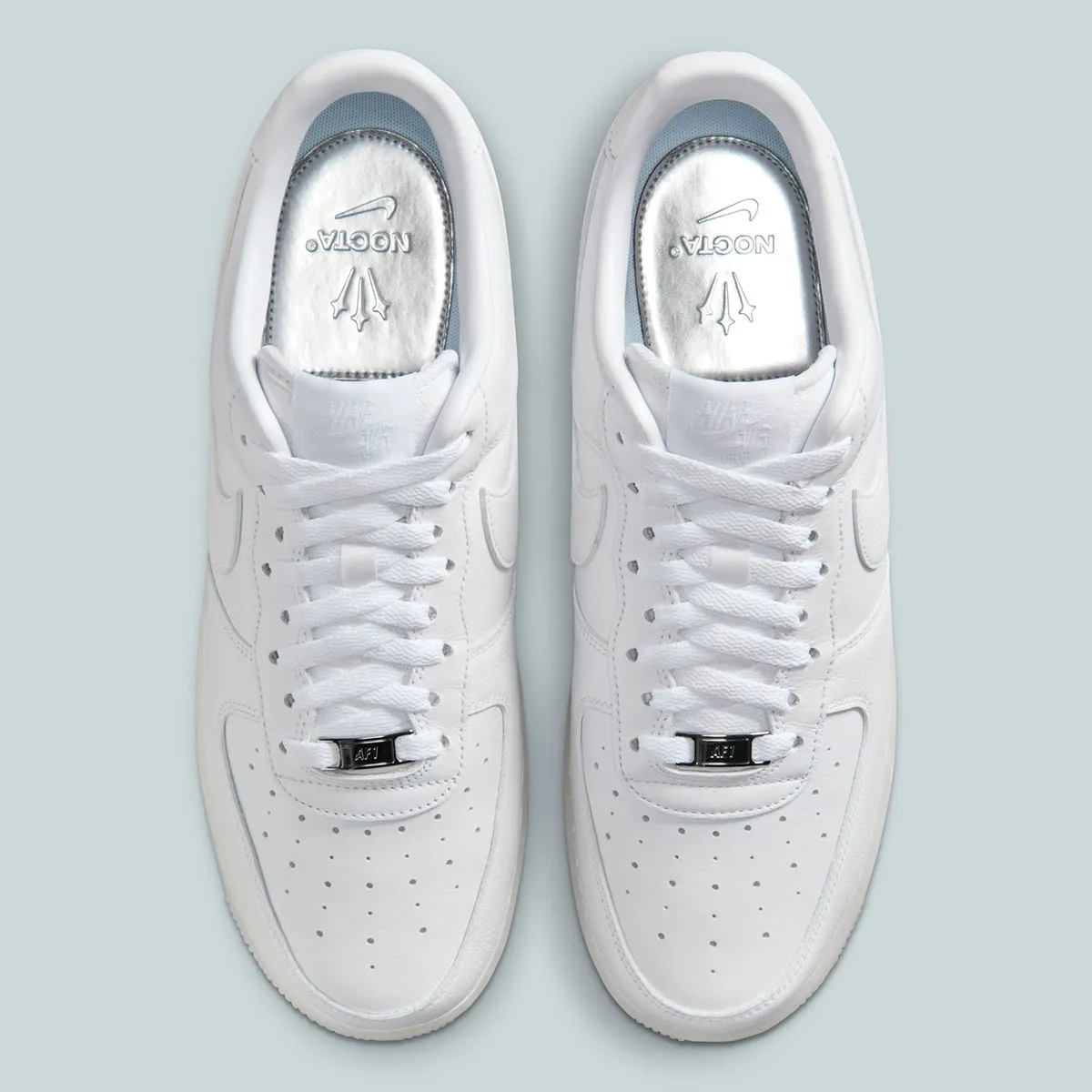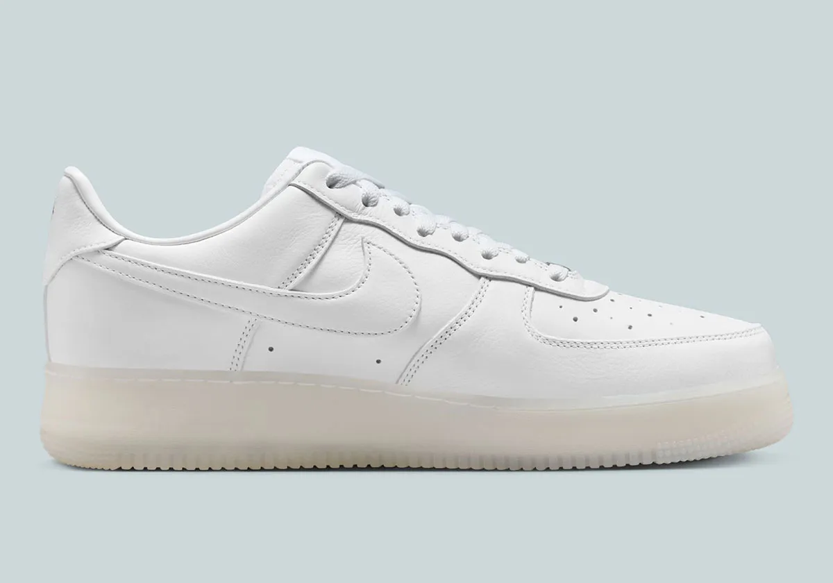 NOCTA x Nike Air Force 1 的简约设计再次亮相,鞋面采用白色,中底是略微泛黄的半透明材质,上面印有「Love You Forever」字样,鞋面左后跟处饰有 NOCTA 的北极星标志。钴蓝色鞋垫上还增添了金属银的鞋跟,并以压纹工艺印有品牌标识,进一步提升了整体设计感,加上定制鞋盒、两副鞋带以及一系列信箱挂饰等多个细节设计为该鞋款增添了亮点。NOCTA x Nike Air Force 1 预计将在 2026 年 1 月 1 日在 NOCTA 的线上电商渠道以及 SNKRS 上发售,售价为 160 美元。