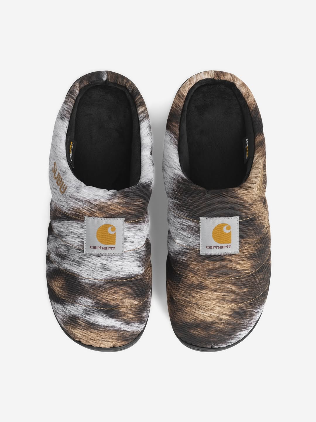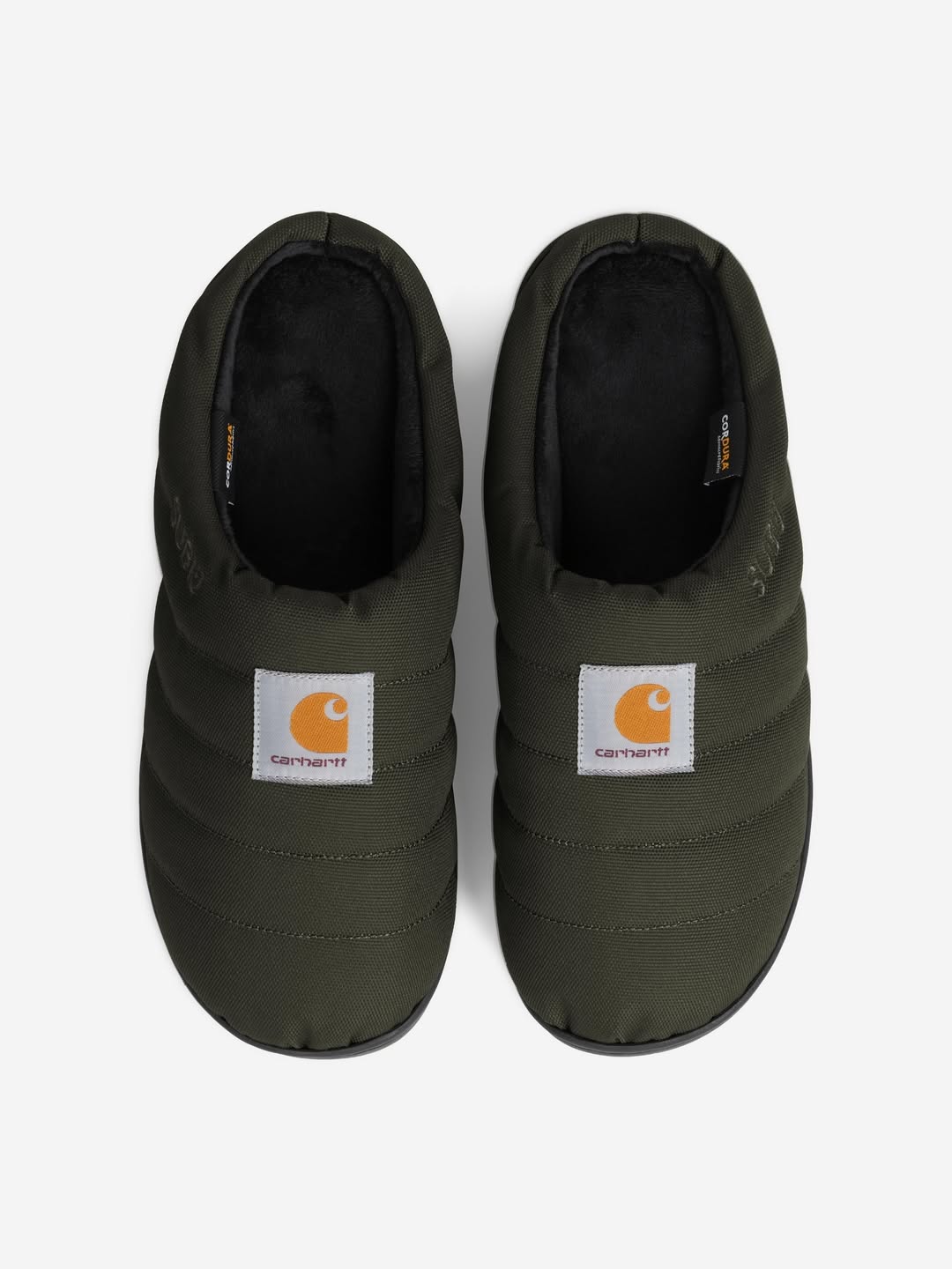 Carhartt WIP 携手 SUBU 带来全新的 Cordura Slipper 联名款,共推出 Wild Dog 与 Olive 两种配色。鞋款采用四层缓震结构并加入填充设计,打造更舒适、更保暖的穿着体验。联名版本以再生聚酯 Cordura 面料打造,并配有品牌标志性的方形织标。鞋面经过阻燃处理,同时随鞋附赠一只同配色携行袋,可用于收纳拖鞋或随身小物,实用度拉满。目前联名系列已正式登陆 Carhartt WIP 门店,有兴趣的朋友不妨到店入手。